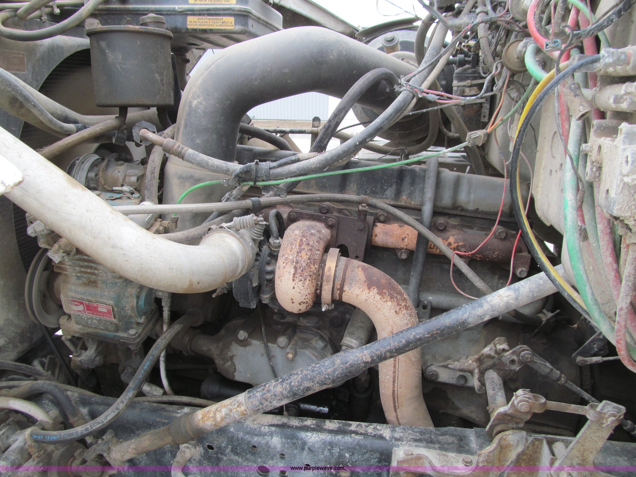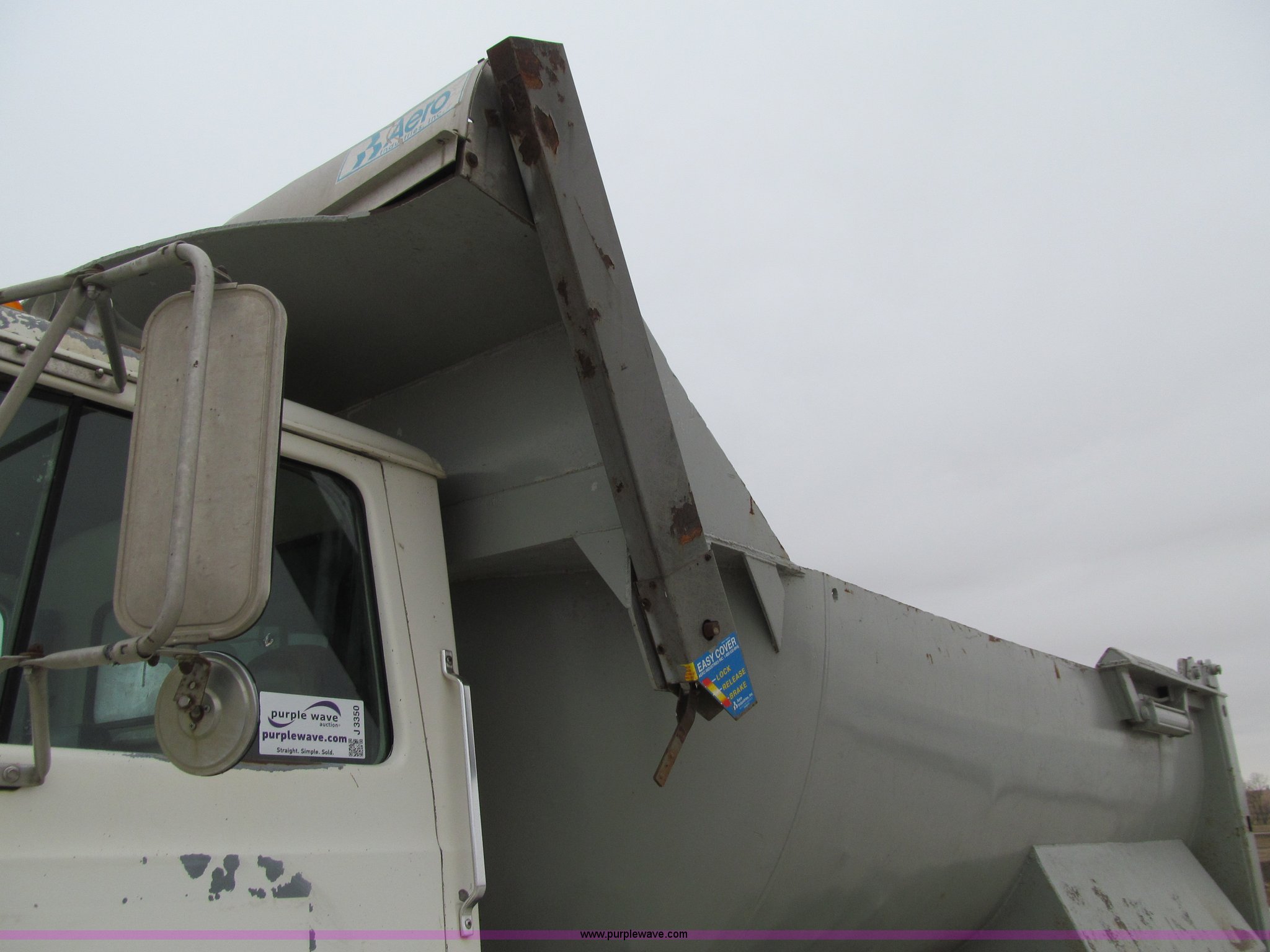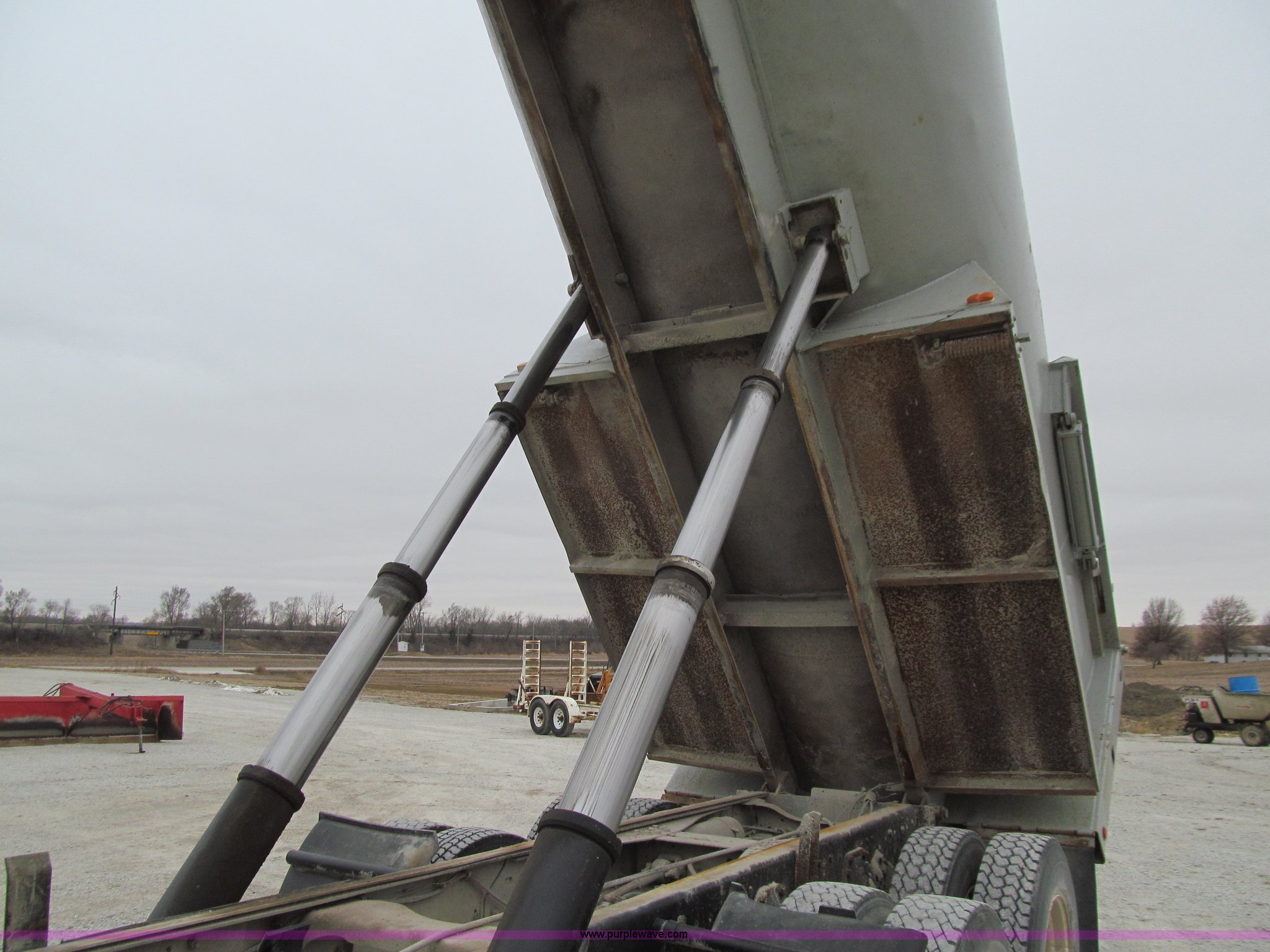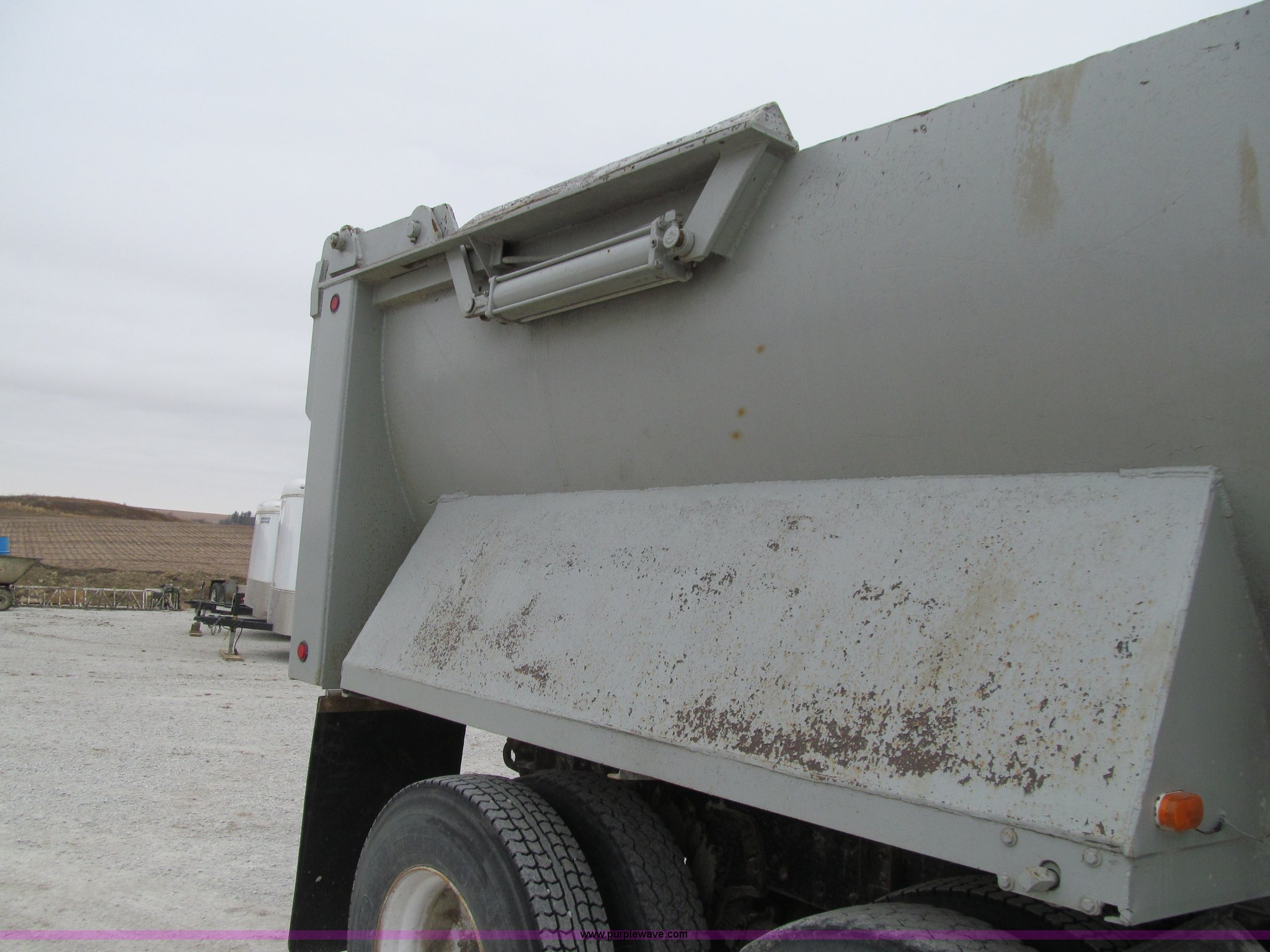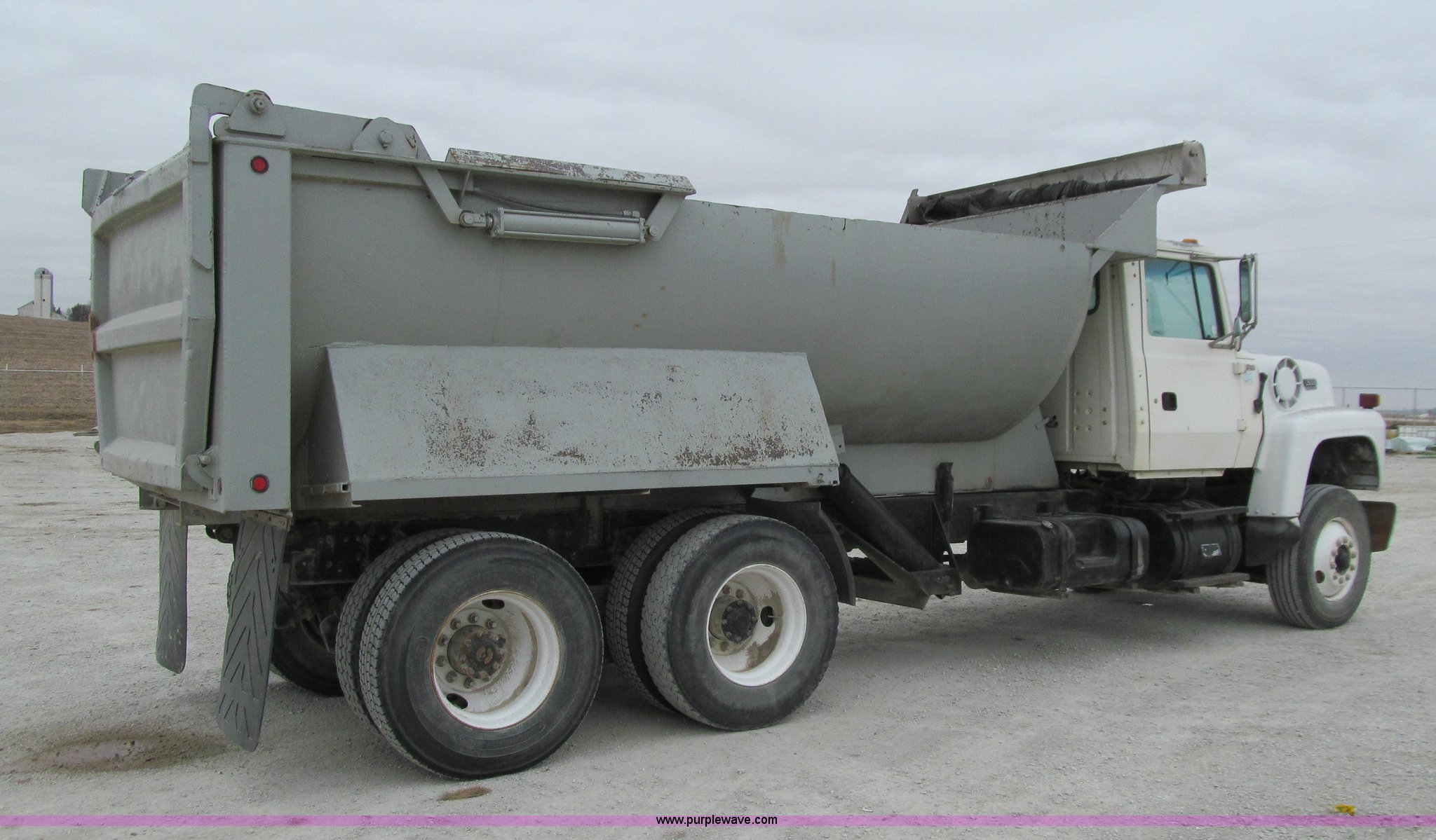 Purple Wave is selling a used Construction Dump Truck in Iowa. This item is a 1991 Ford LT8000 dump truck with the following: 488,285 miles on odometer, Ford 7.8L six cylinder turbo diesel engine, 240 HP, Eaton Fuller Road Ranger eight speed manual transmission, Heat, Air suspension seat, Barrel dump bed, 17.5'L, Dual ram four stage hoist, Air operated end gate, Roll-over tarp, Rear double frame rails, Dual 100 gallon fuel tanks, Hendrikson beam/spring suspension, Air brakes, 232" wheelbase, 11R22.5 tires, GVWR 62,000 lbs, Tarp worn, Engine oil leak, Hood damaged