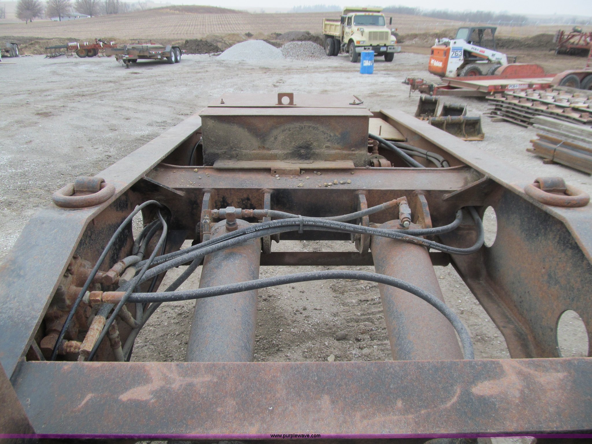 Purple Wave is selling a used Equip. Trailer in Iowa. This item is a 1996 Dynaweld lowboy trailer with the following: 22'L x 102"W clear deck, Outrigger brackets, D-ring tie downs, Hydraulic removable hitch, Honda GX gas engine, Flip-over third axle, Spring suspension, Air brakes, 255/70R2.5 tires, Lower frames show distortion/misalignment, Right front ramp missing