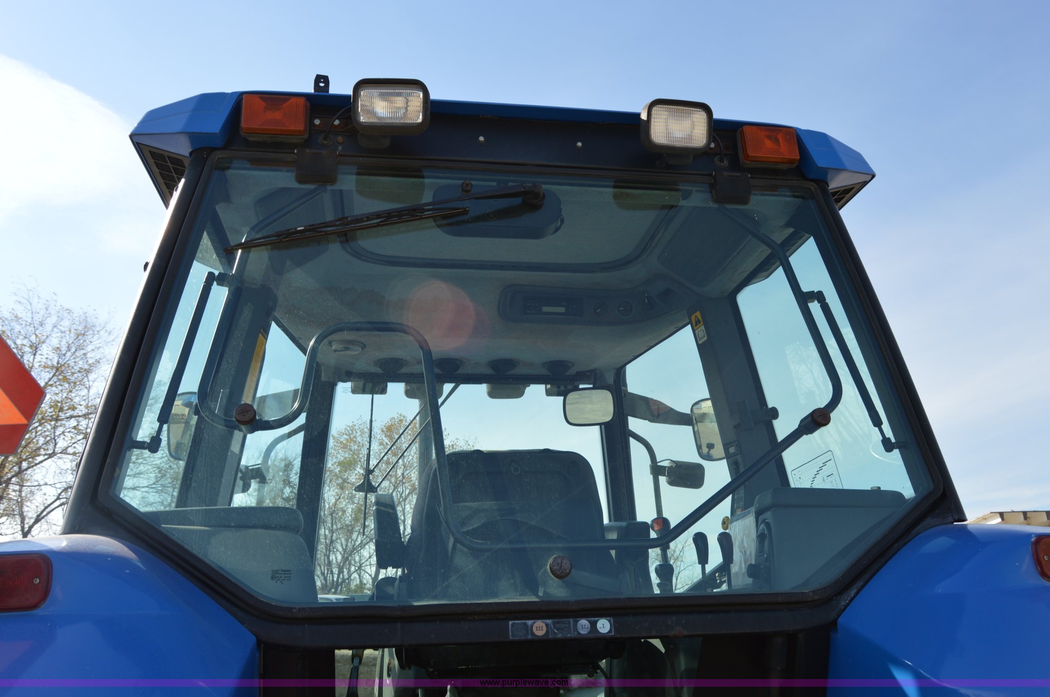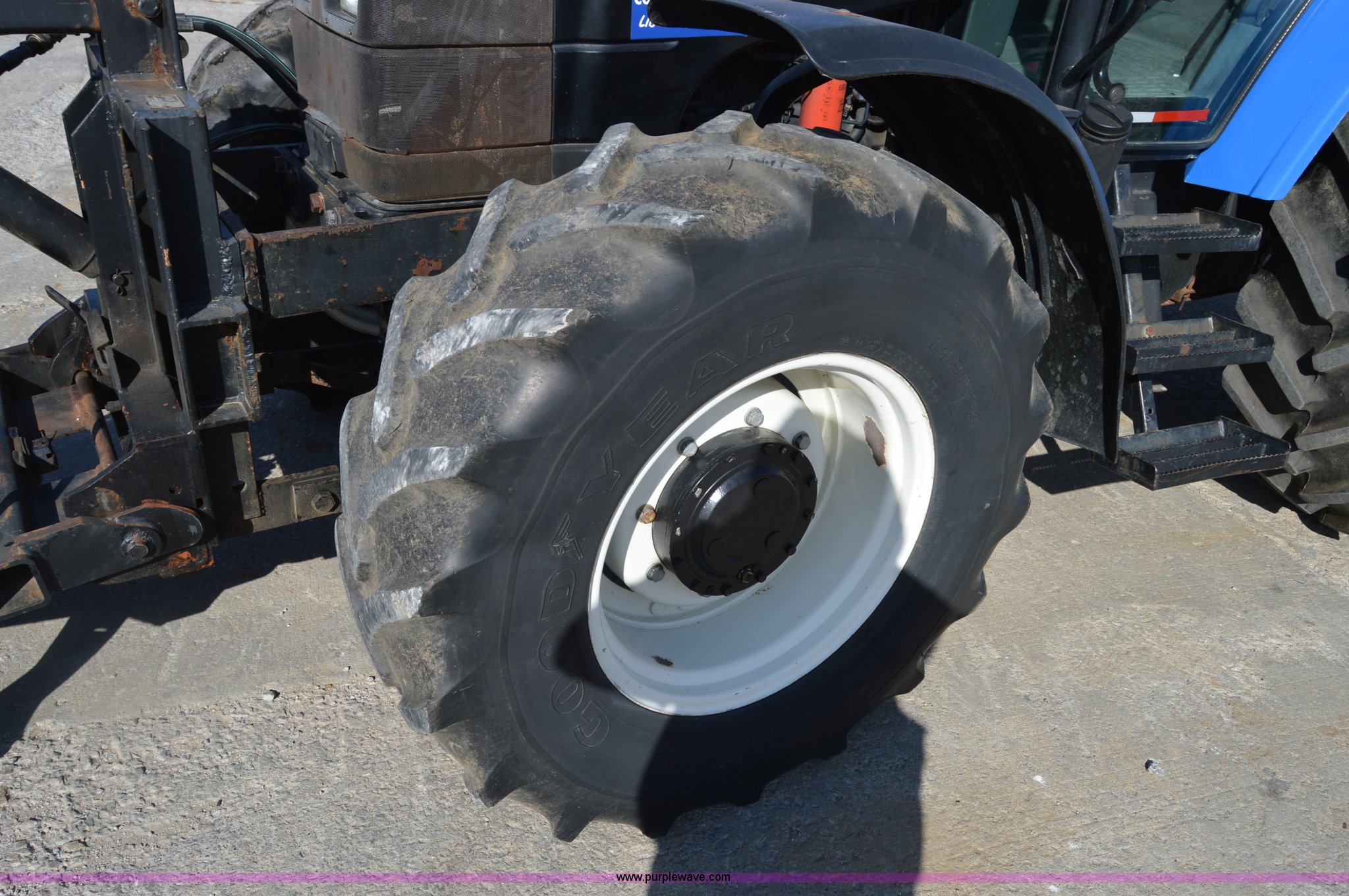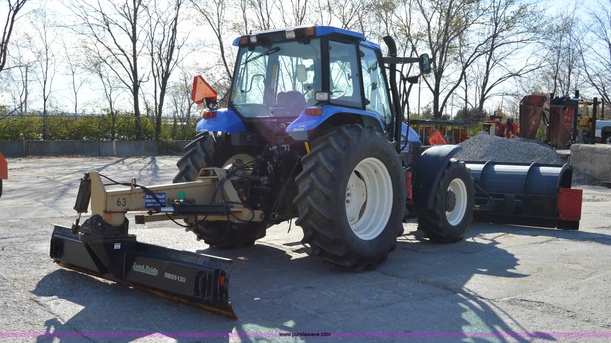 Purple Wave is selling a used Tractor in Missouri. This item is a New Holland TS110 tractor with the following: 2,254 hours on meter, Four cylinder diesel engine, Powershift transmission, 8F-8R gears, Locking differential, Front wheel assist, AC and heat, Three point, Draw bar, 540 PTO, (2) rear hydraulic remotes, Front and rear work lights, Joystick front blade control, 13'W snow blade, 12"W extension, 14.9-24 front tires, 18.4-34 rear tires, Rear blade is not included, Unit# 5490
