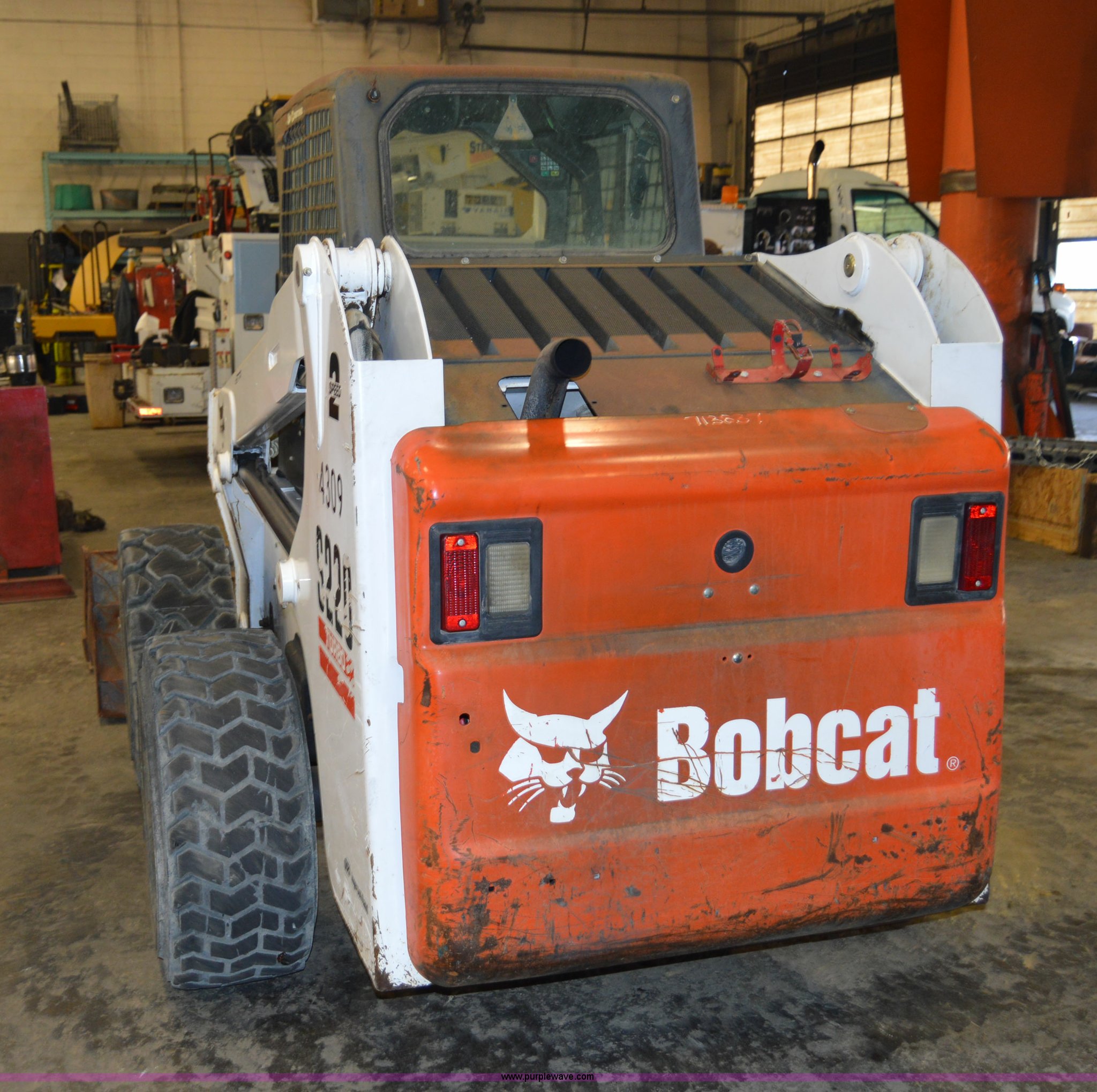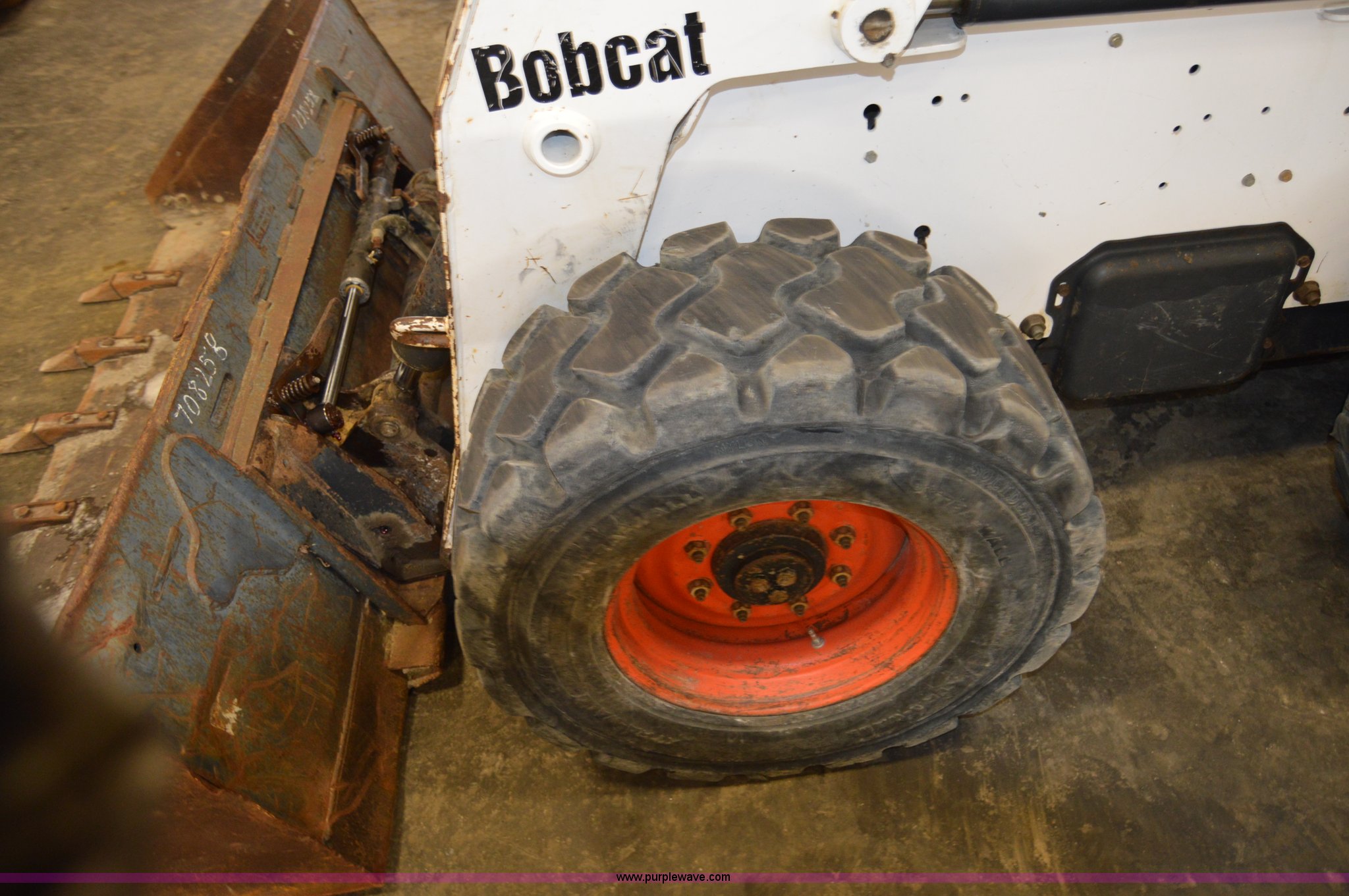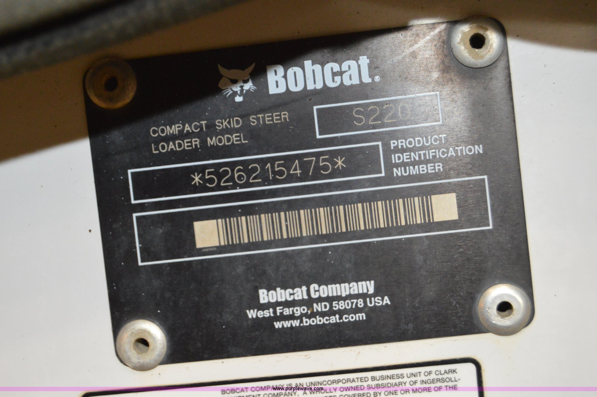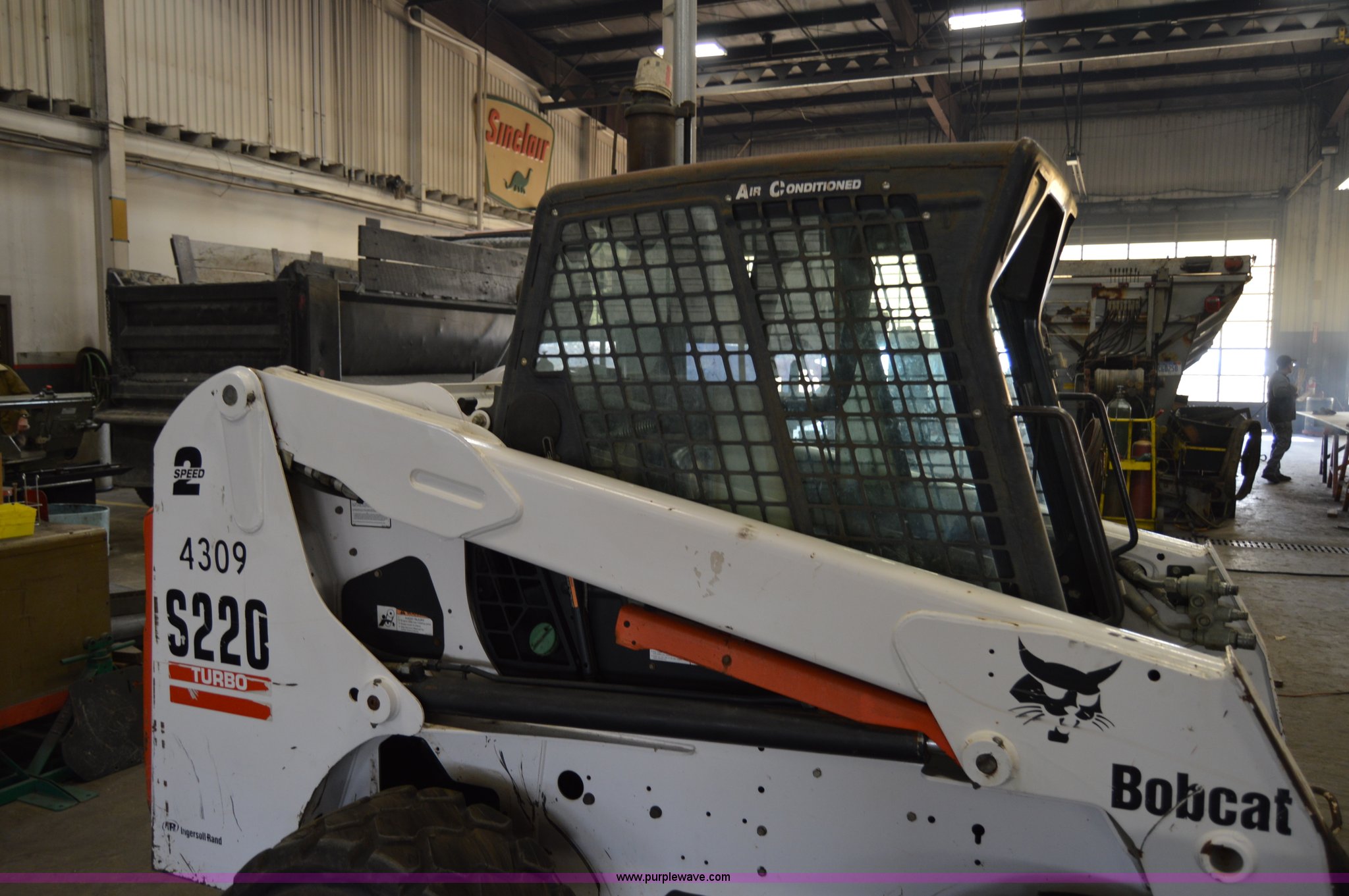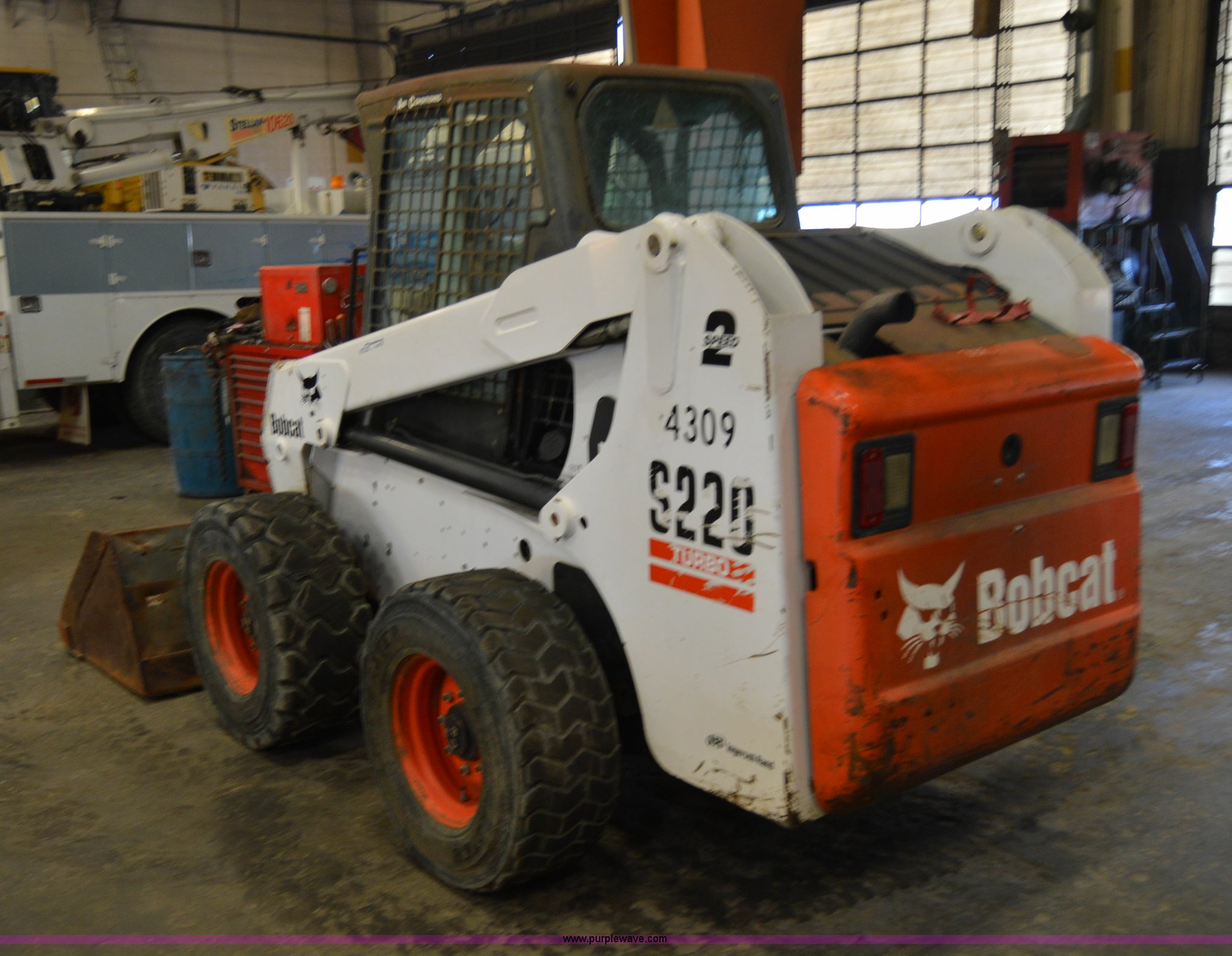 Purple Wave is selling a used Skid Steer Loader in Missouri. This item is a 2005 Bobcat S220 skid steer with the following: 3,761 hours on meter, Kubota four cylinder diesel engine, Two speed hydrostatic transmission, AC and heat, Hand and foot controls, Work lights, Auxiliary hydraulics, Power Bob-tach, Door frame included, Glass missing, 12-16.5 tires, 7,483 lbs. base operating weight, Serial 526215475, Unit# 4309