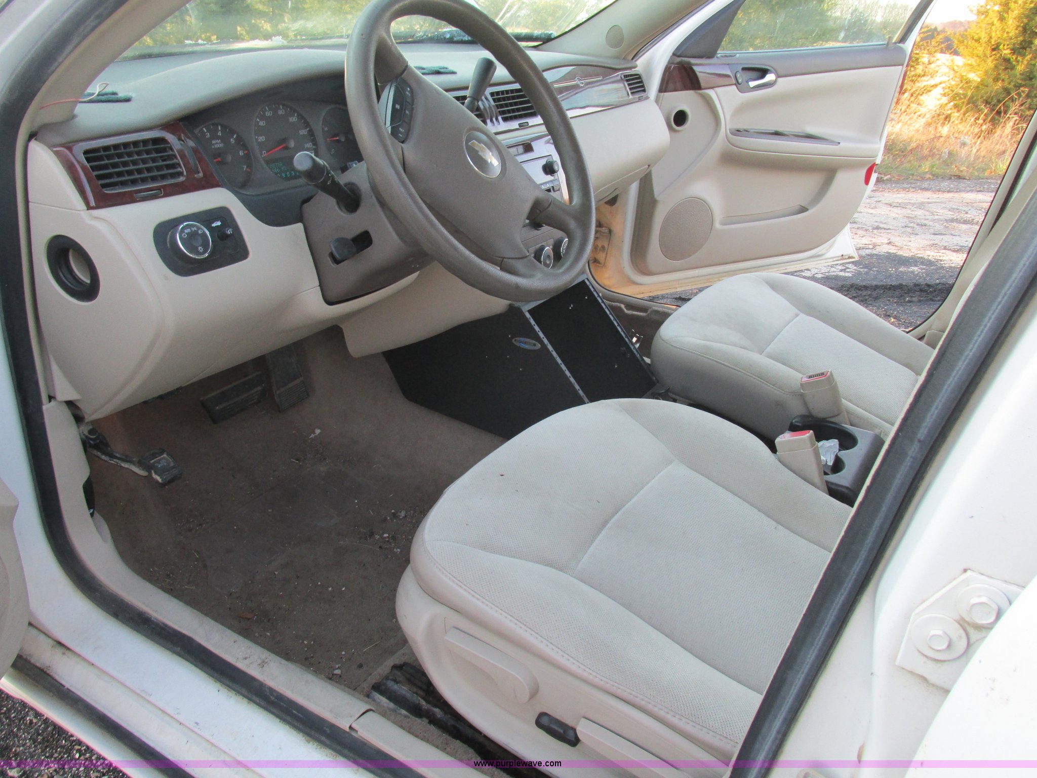 Purple Wave is selling a used Passenger Vehicle in Missouri. This item is a 2006 Chevrolet Impala Police with the following: 209,666 actual miles, 3.9L V6 OHV 12V gas engine, Automatic transmission, AC and heat, Tilt, Cruise, AM/FM/CD, Power windows, locks, and mirrors, Cloth interior, Spotlight mount, 225/60R16 tires, Interior/exterior cosmetic damage
