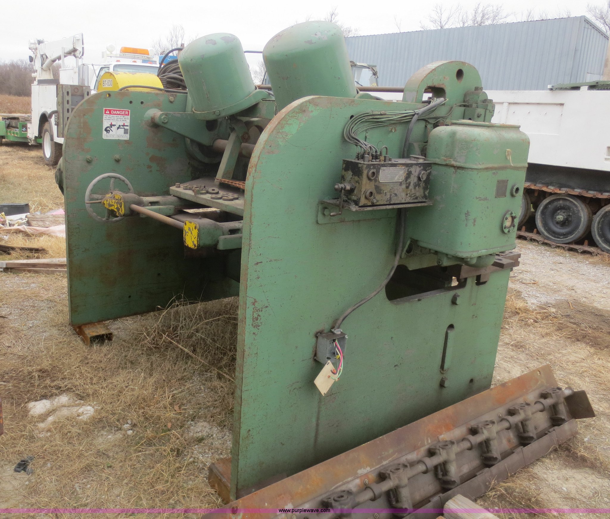 Purple Wave is selling a used Tools in Oklahoma. This item is a Cincinnati 1806 mechanical sheer with the following: GE 10 HP motor, Three phase, 6'L, 3/8" thick, Serial 28061