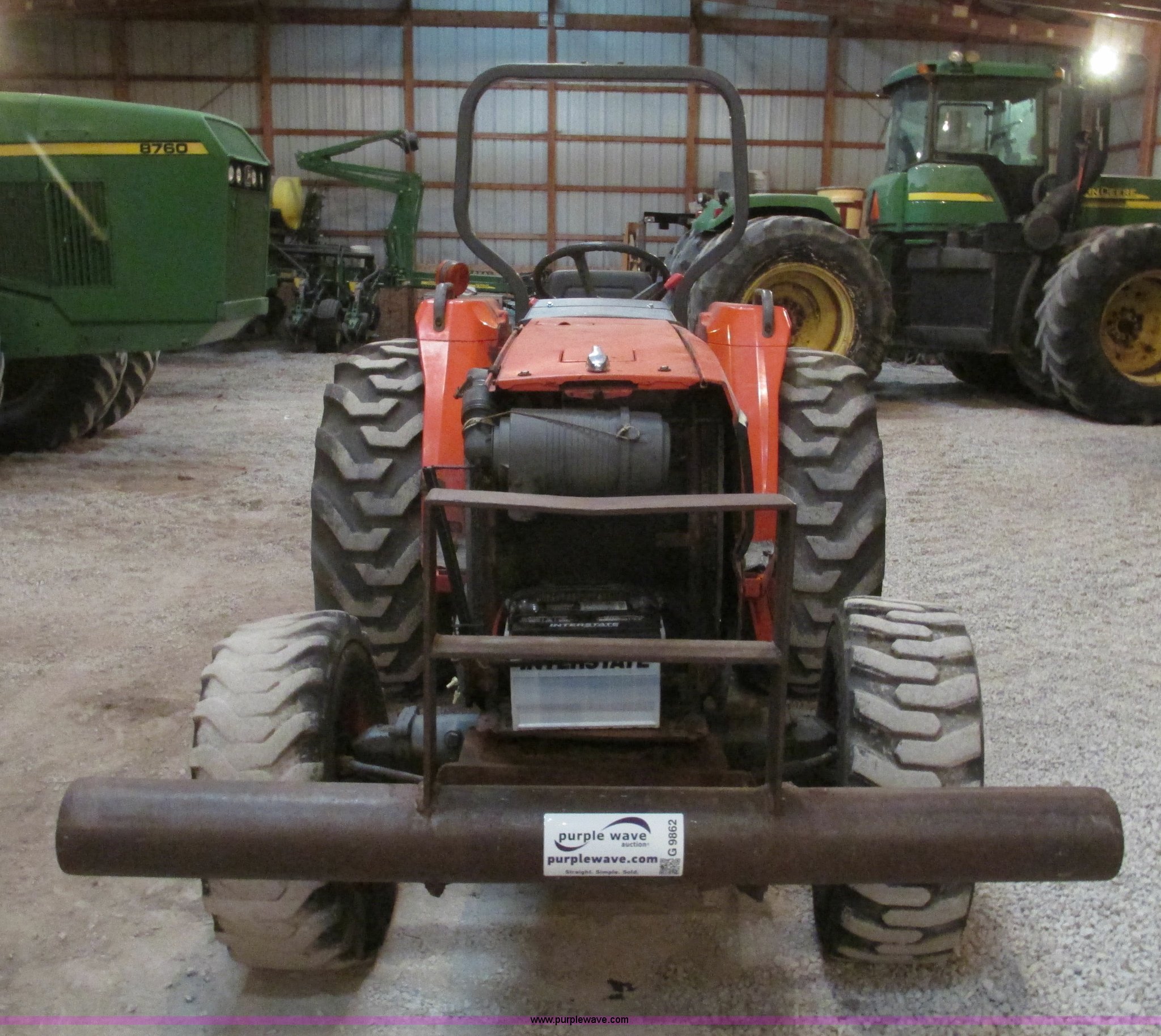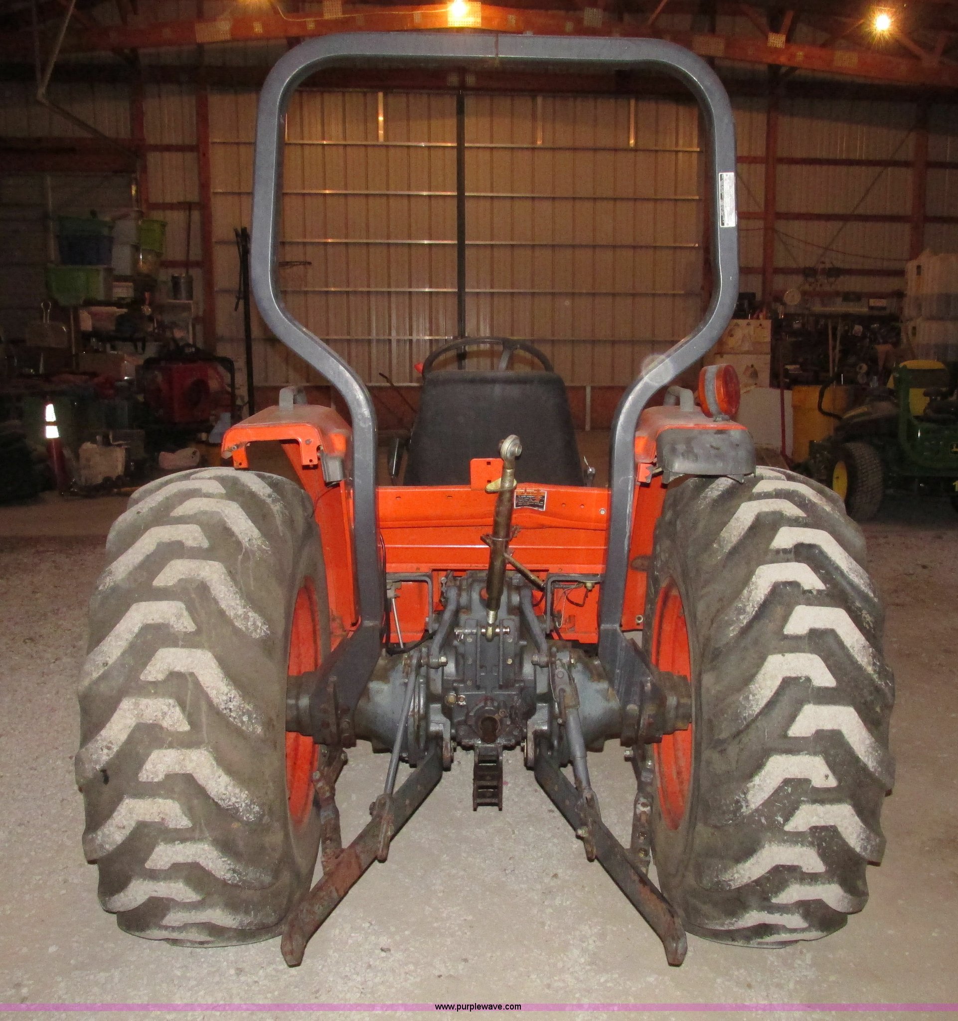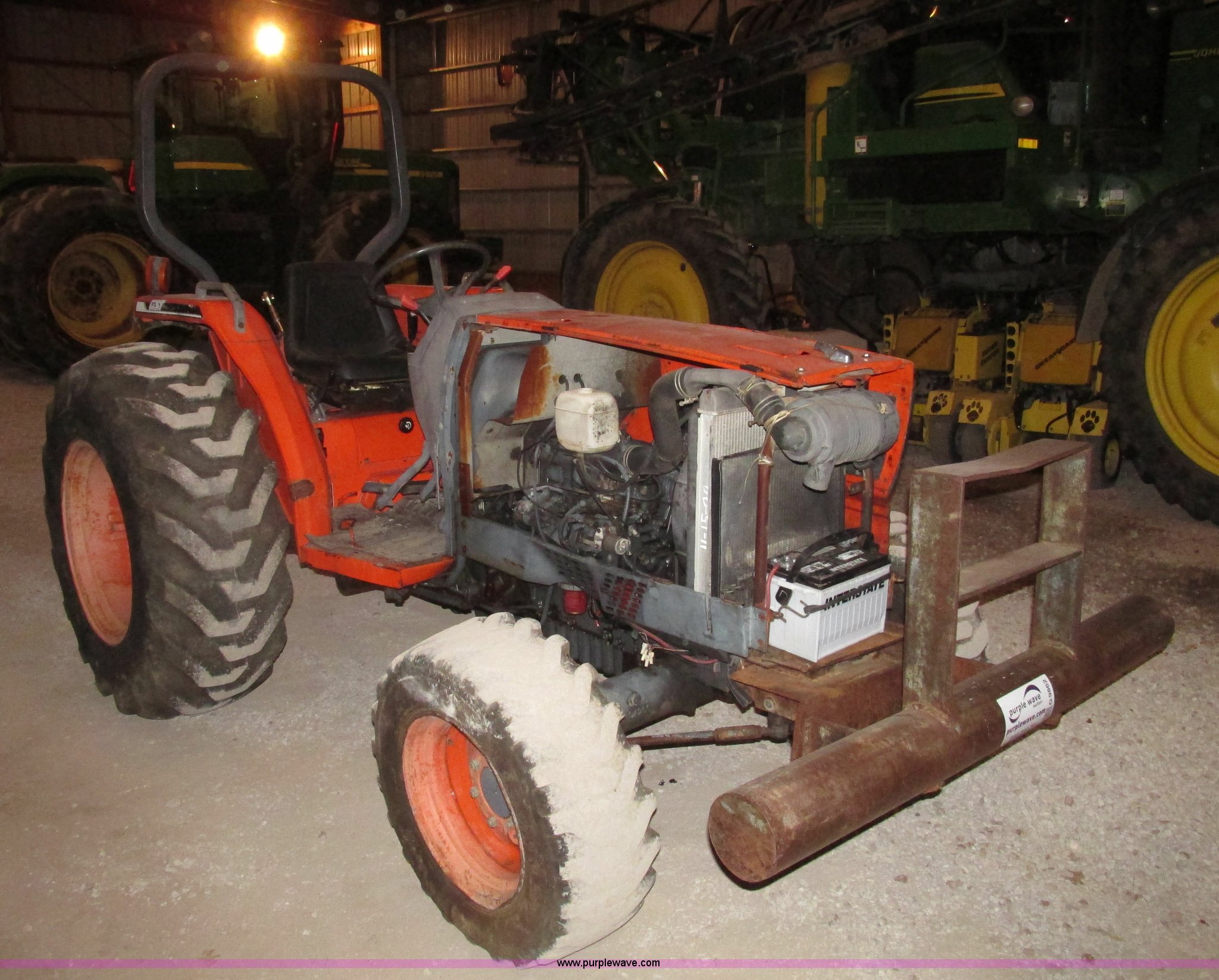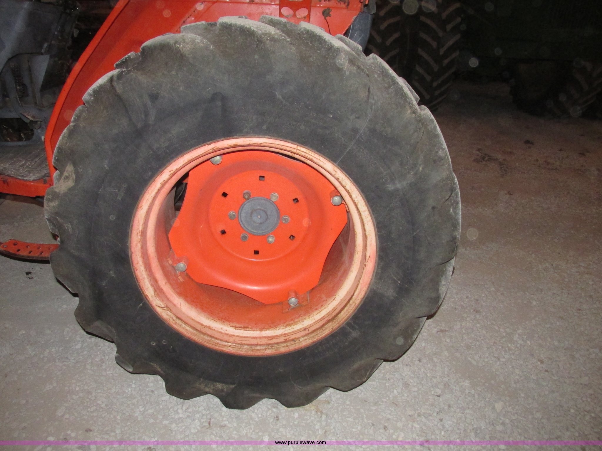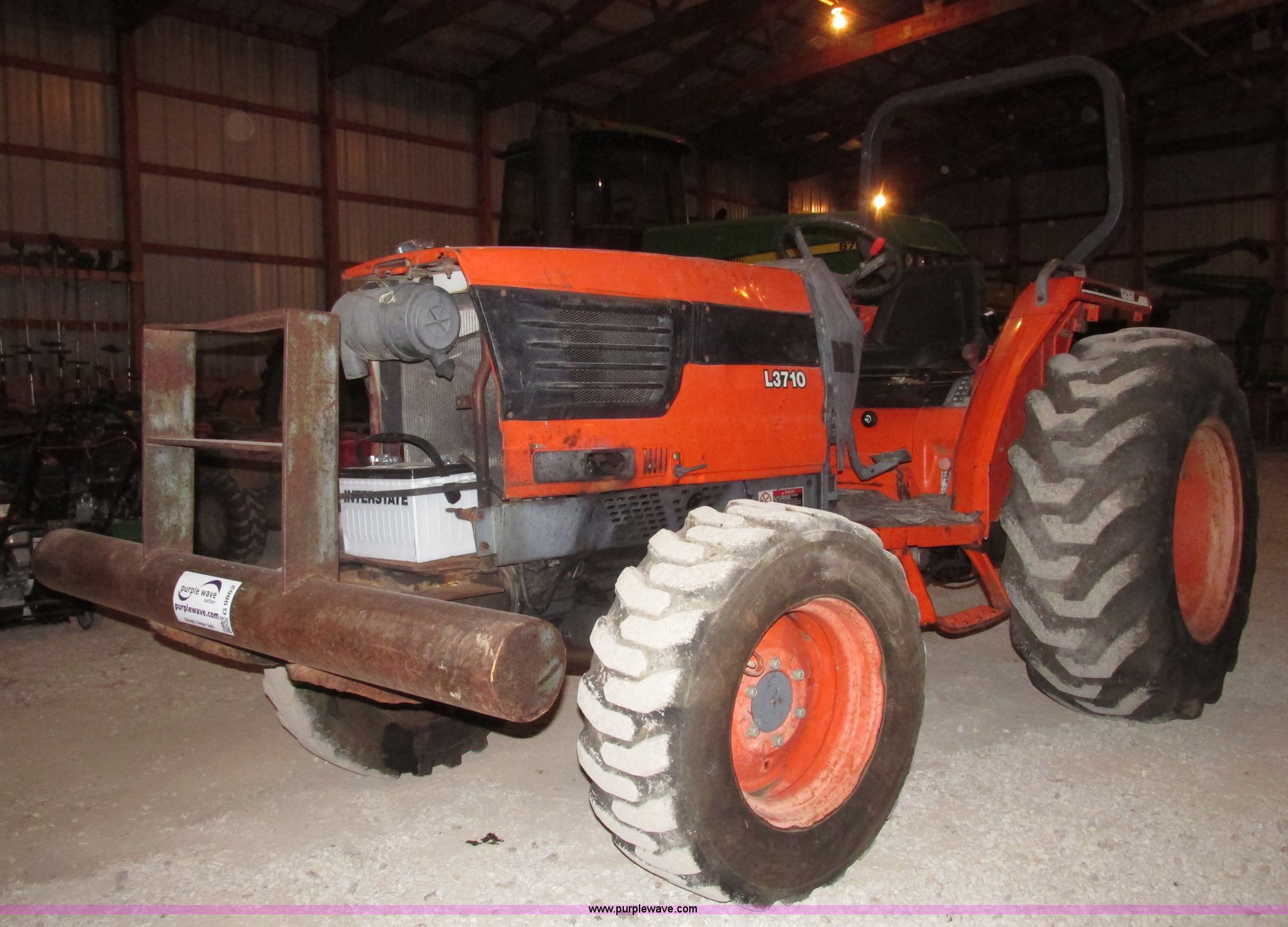 Purple Wave is selling a used Tractor in Nebraska. This item is a Kubota L3710 GST MFWD tractor with the following: 2,232 hours on meter, Actual hours unknown, Kubota E-TVCS 1.9L four cylinder diesel engine, 38.5 hP, Glide shift transmission, 8F-8R gears, ROPS, Category I three point, 540 PTO, 60 3/4" x 5.5" diameter grill guard, 71.1" wheelbase, 15-16.5 front tires, Tires split, 17.5L-24 rear tires, Side panel missing, Console panels missing, Steering column loose, Shift lever loose