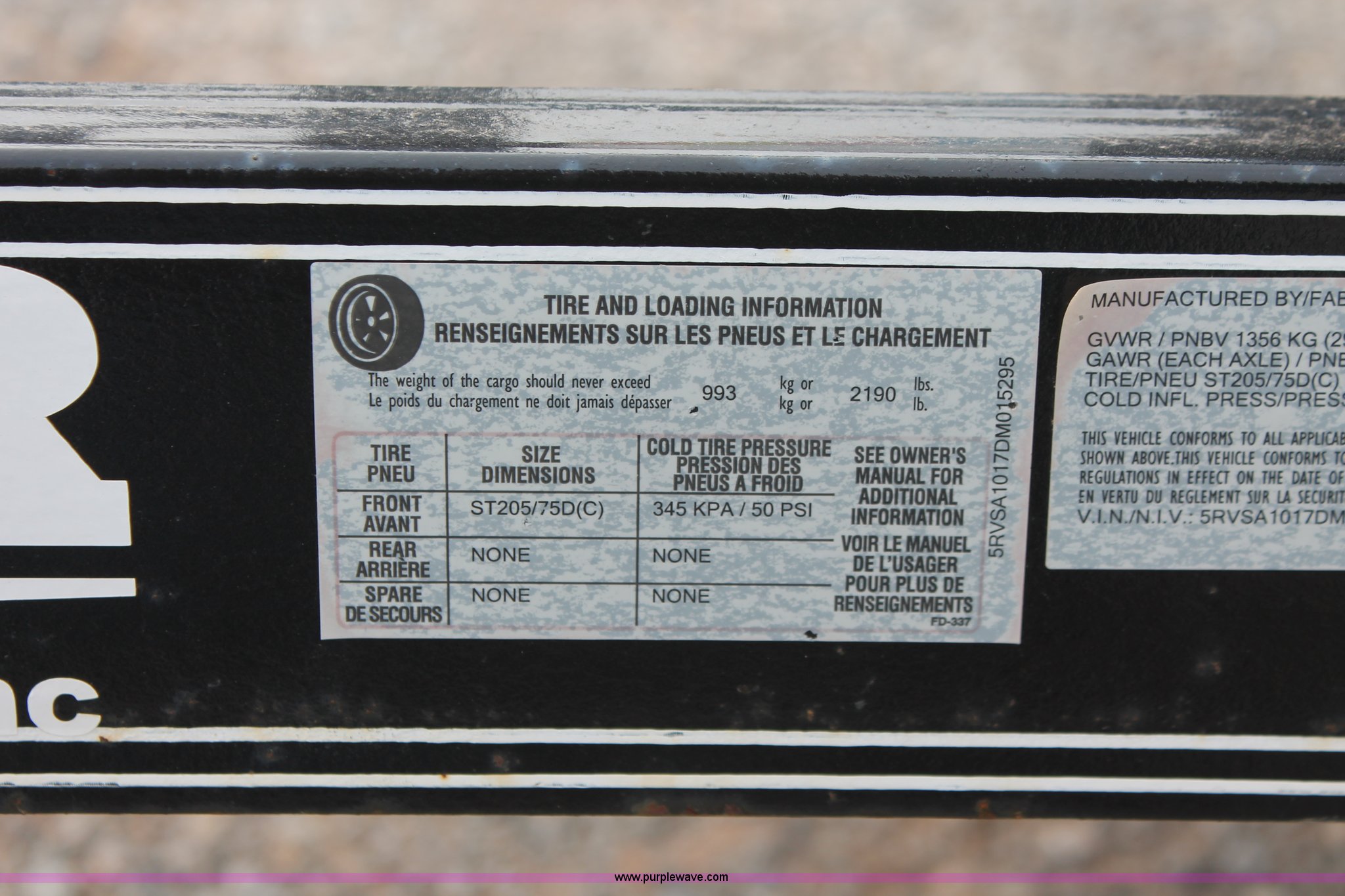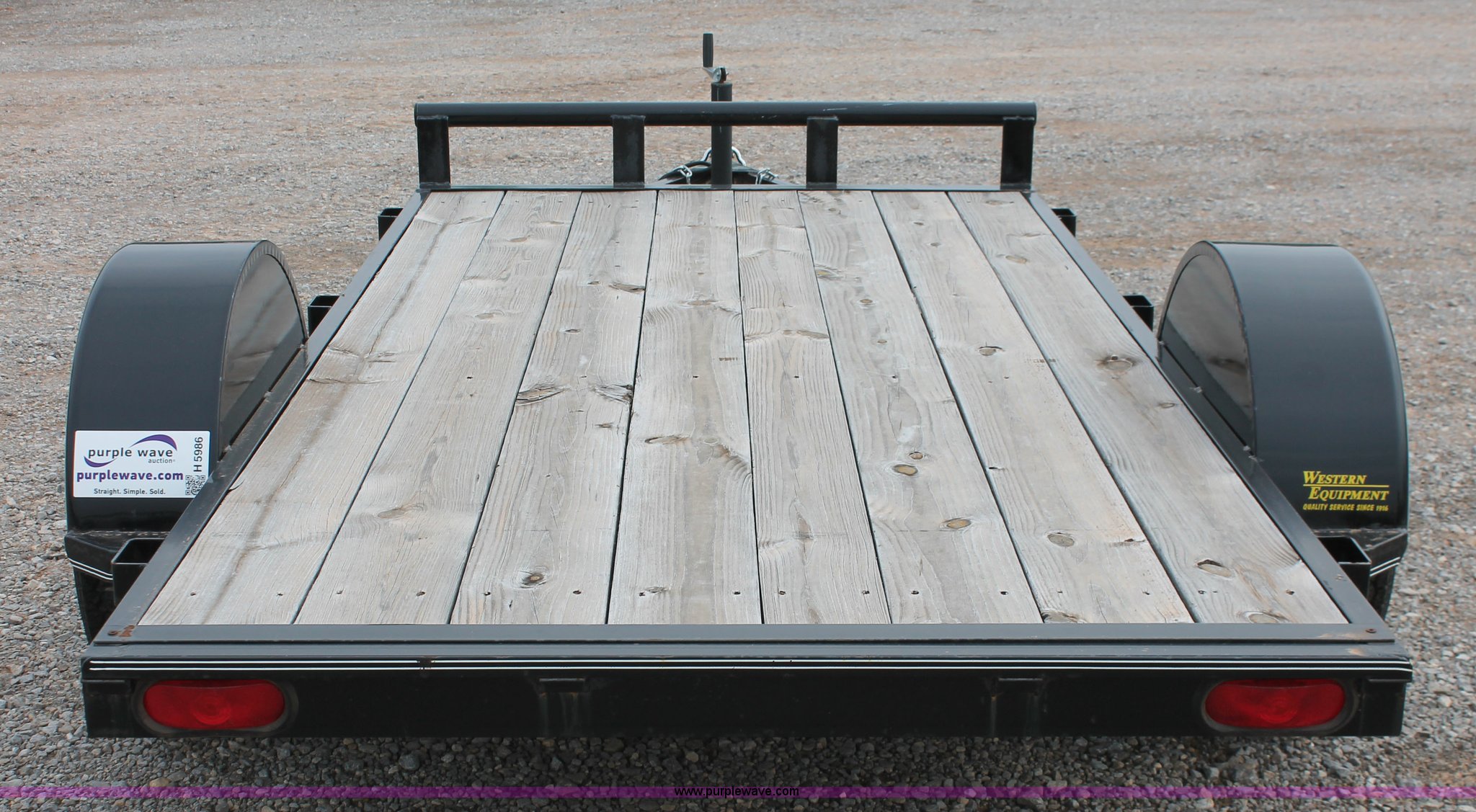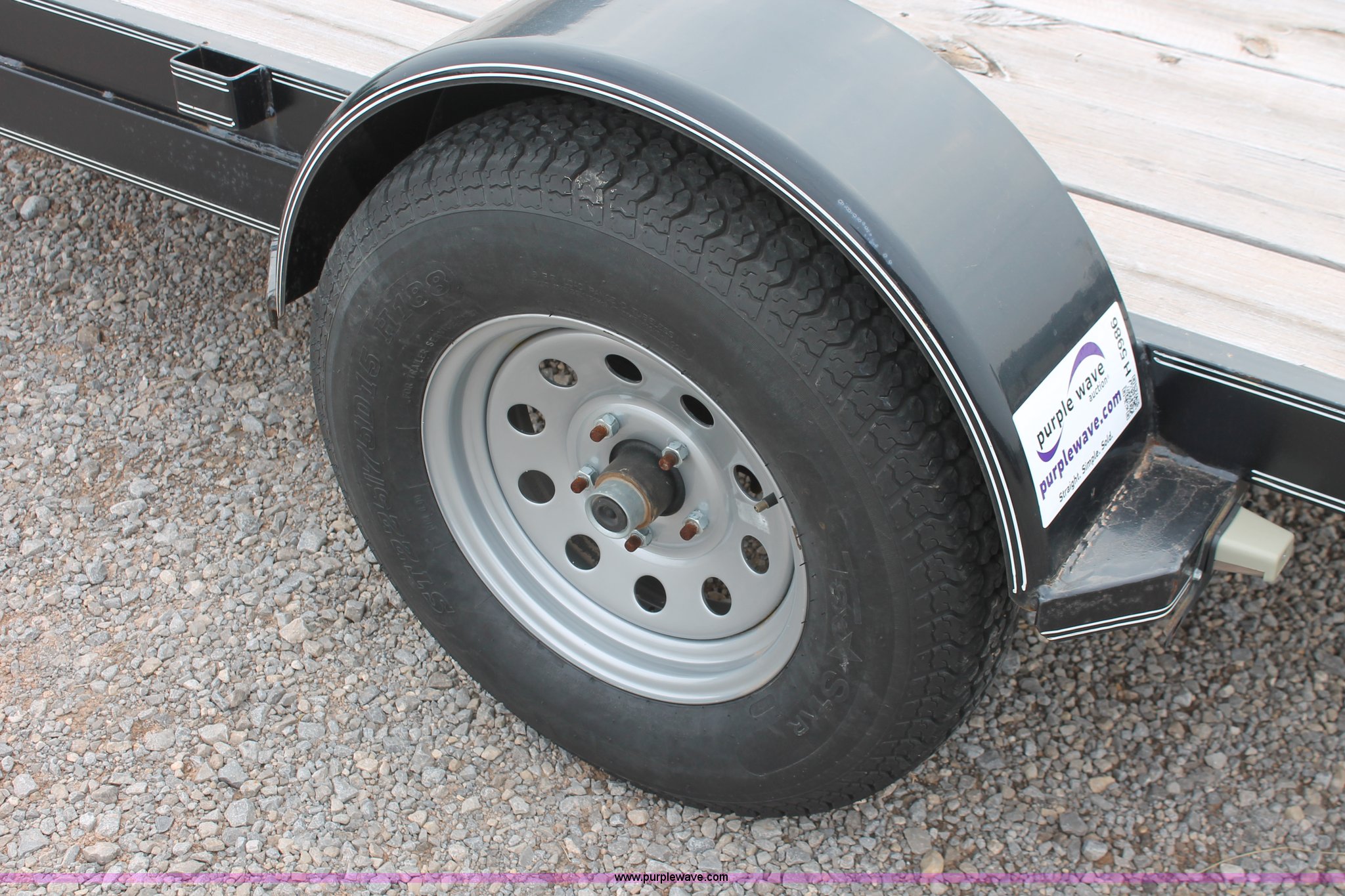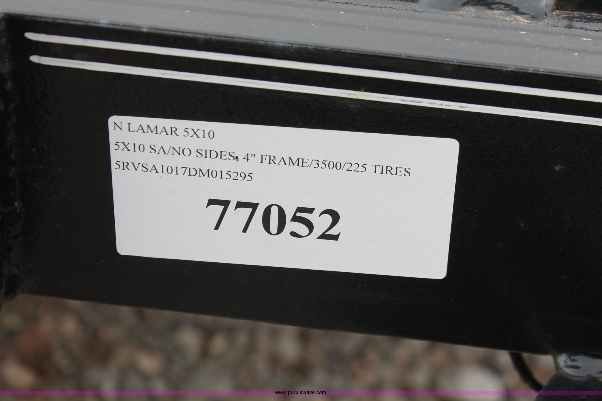 Purple Wave is selling a used Car or Utility Trailer in Oklahoma. This item is a 2013 Lamar flatbed utility trailer with the following: 14'L overall, 10'L x 5'W deck, 4'L neck, Steel frame with wood deck, Stake side pockets, Four prong trailer wiring, 2" ball hitch, ST205/75D15 tires, GVWR 2,990 lbs, Unused, Stock# 77052