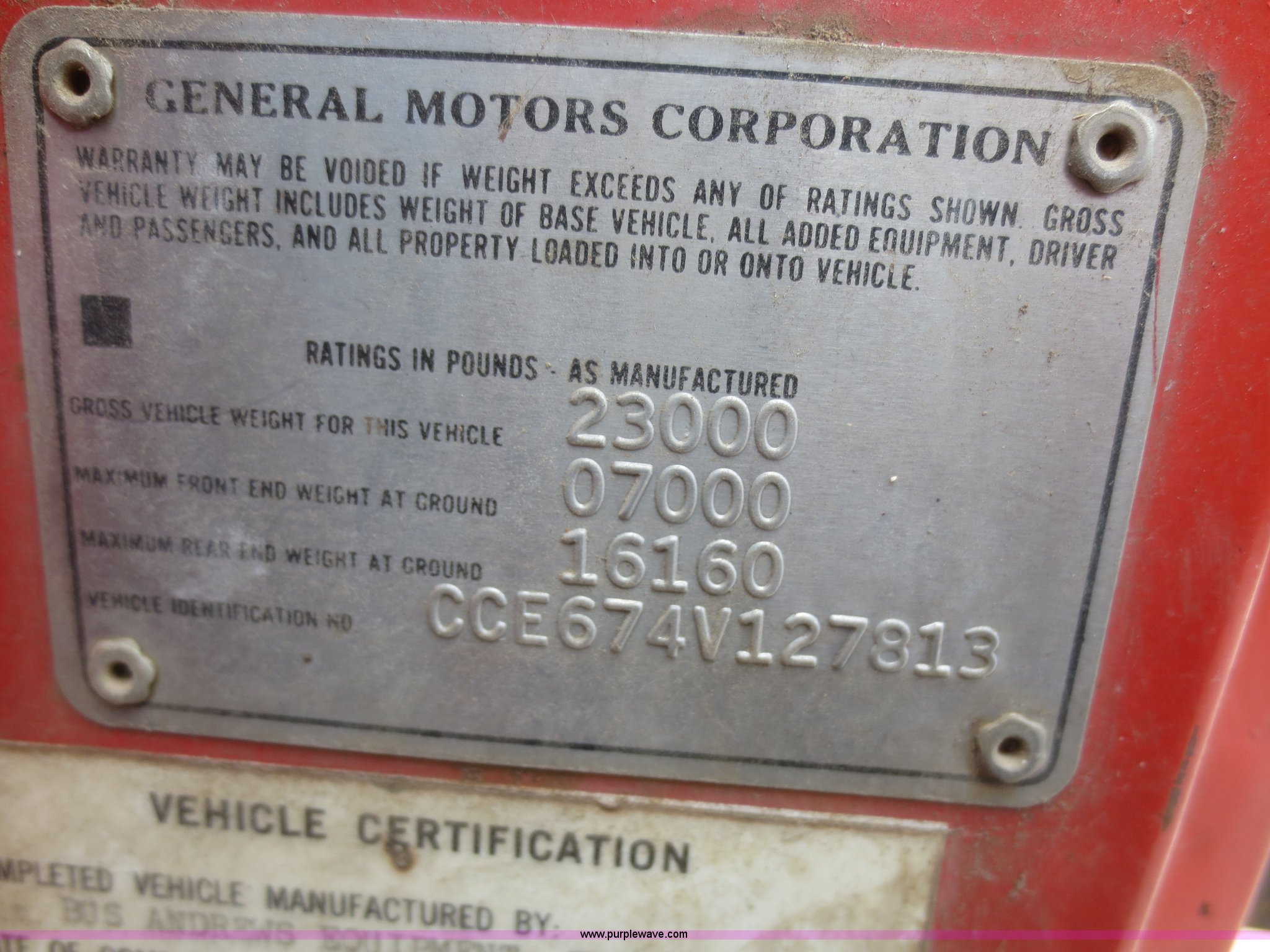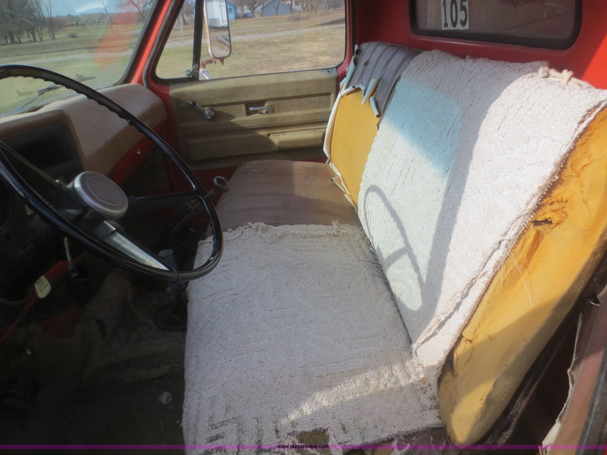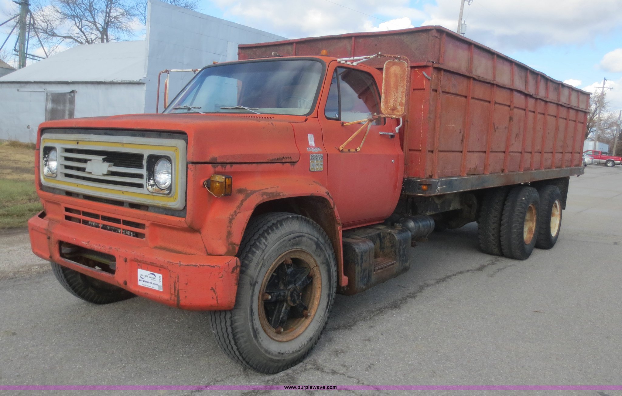 Purple Wave is selling a used Grain Truck in Kansas. This item is a 1974 Chevrolet C65 grain truck with the following: 99,357 miles on odometer, Eight cylinder gas engine, Five speed manual transmission, Two speed rear end, AM, Manual windows and locks, 22' dump bed, PTO, Spring suspension, Air brakes, Tag axle, 10.00R20 tires, GVWR 23,000 lbs, FAWR 7,000 lbs, RAWR 16,160 lbs