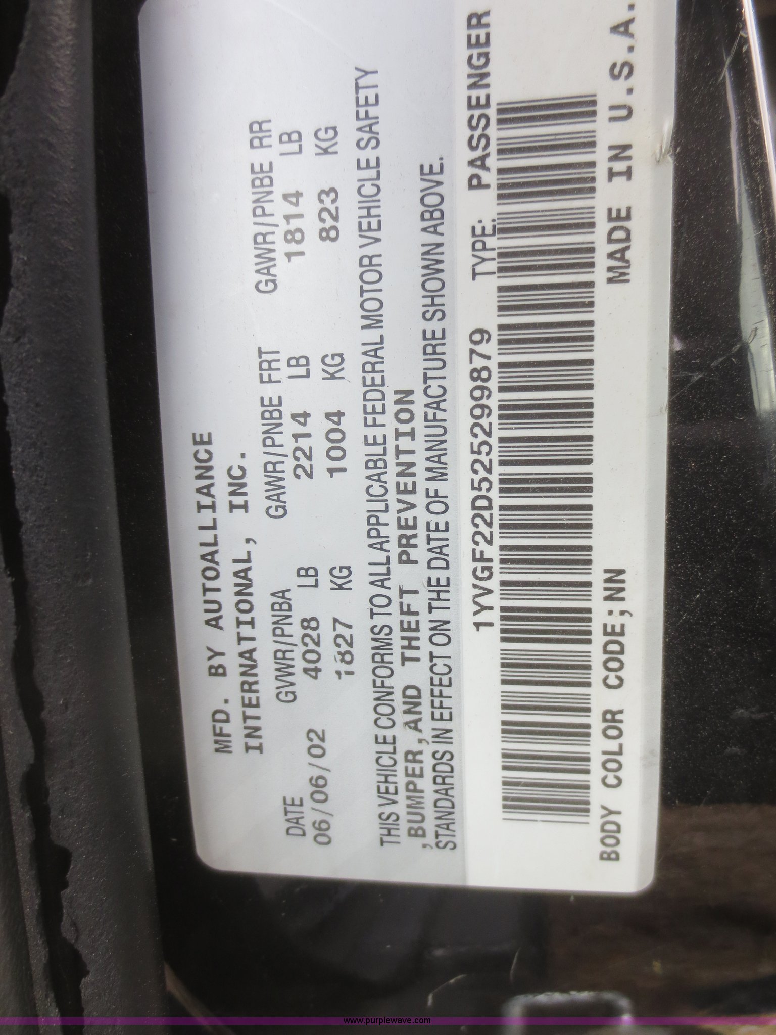 Purple Wave is selling a used Passenger Vehicle in Kansas. This item is a 2002 Mazda 626 with the following: 190,976 miles on odometer, 2.5L V6 DOHC 24V gas engine, Automatic transmission, AC and heat, Tilt, Cruise, AM/FM/CD, Power windows, locks, and mirrors, Cloth interior, 205/60R15 tires, Dead battery, Engine has overheated, Non-operational unit