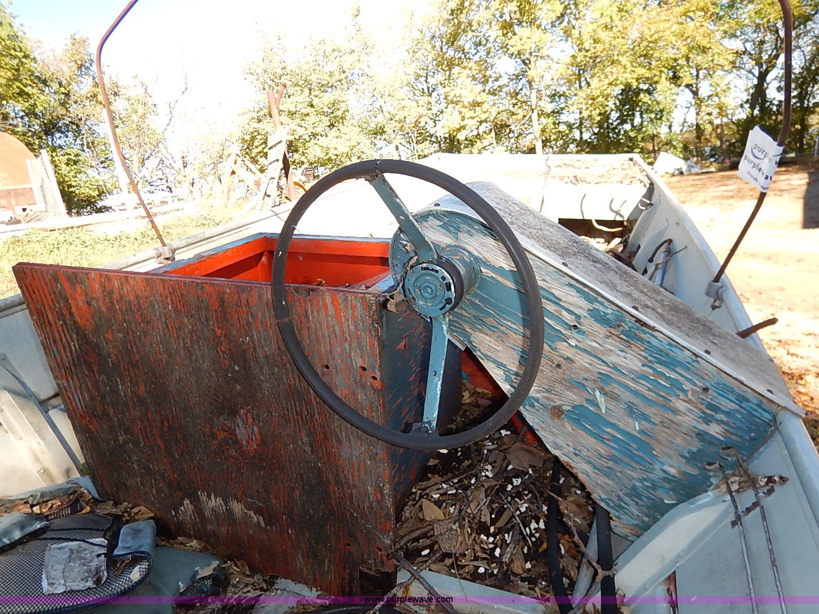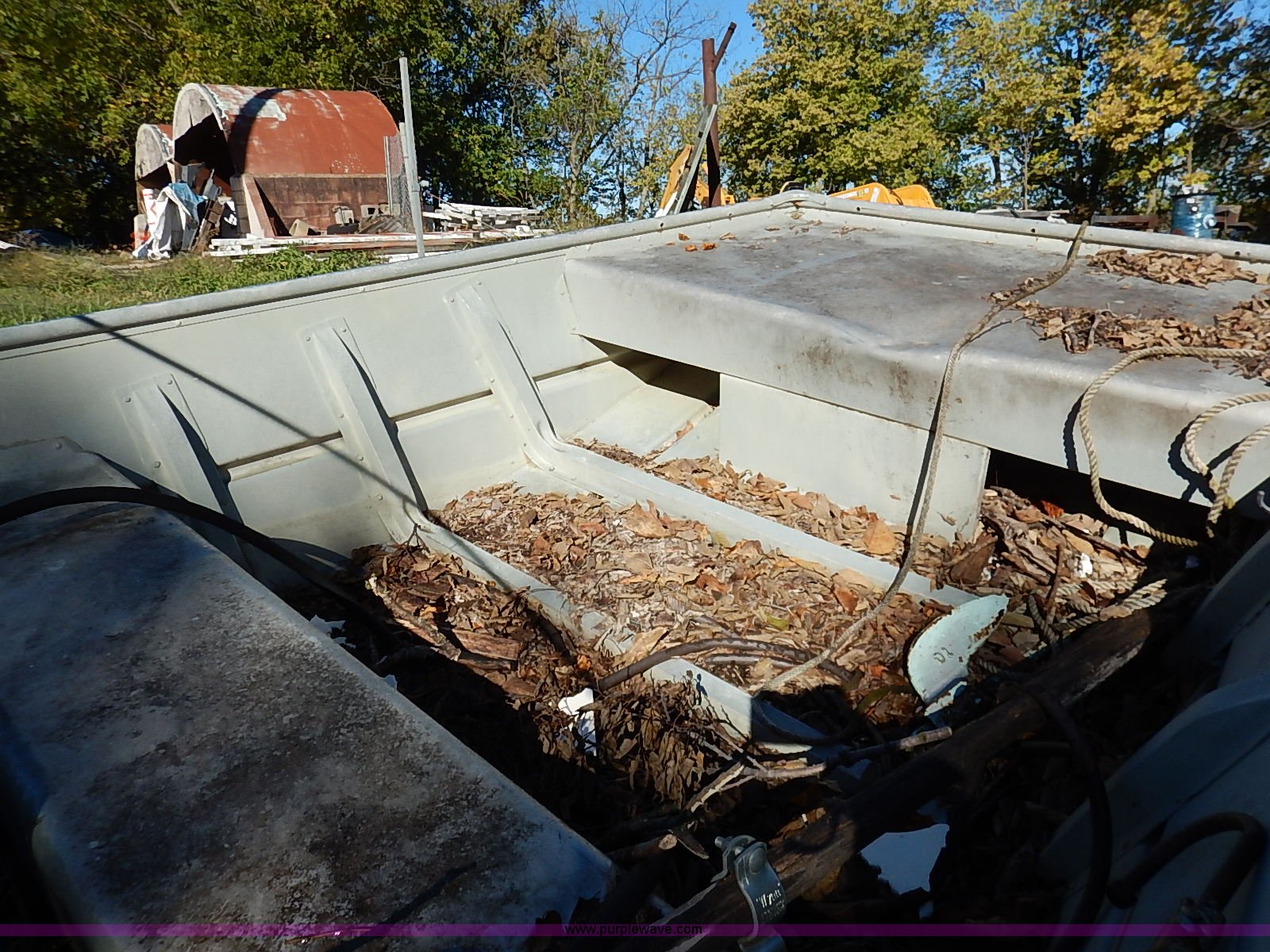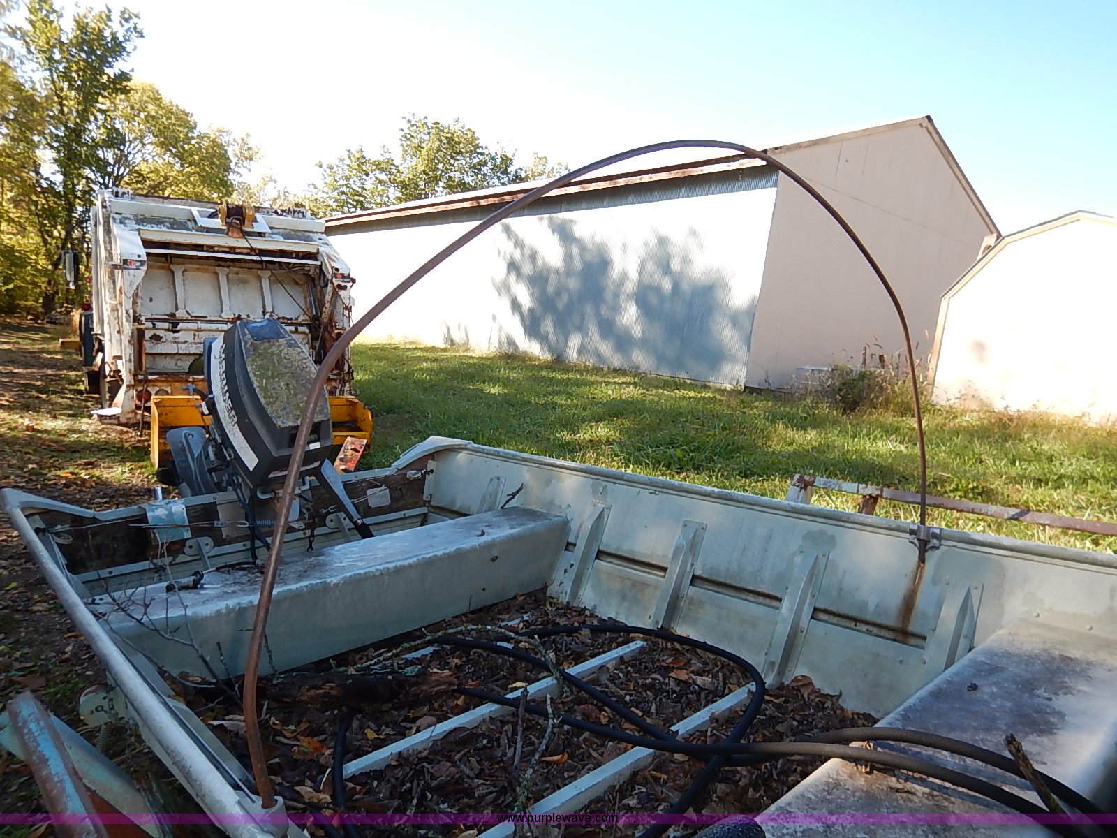 Purple Wave is selling a used Boat in Kansas. This item is a Lowe Line aluminum flat bottom boat with the following: Mariner 40 outboard motor, Light hookup, Hull I.D. LWNL6873M76B-20BJ, 20'L shop built trailer, 1 7/8" ball hitch, Safety chains, Jack, 195/75R14 tires, Tires are flat, Propeller damaged, Taillights damaged, Unknown running condition
