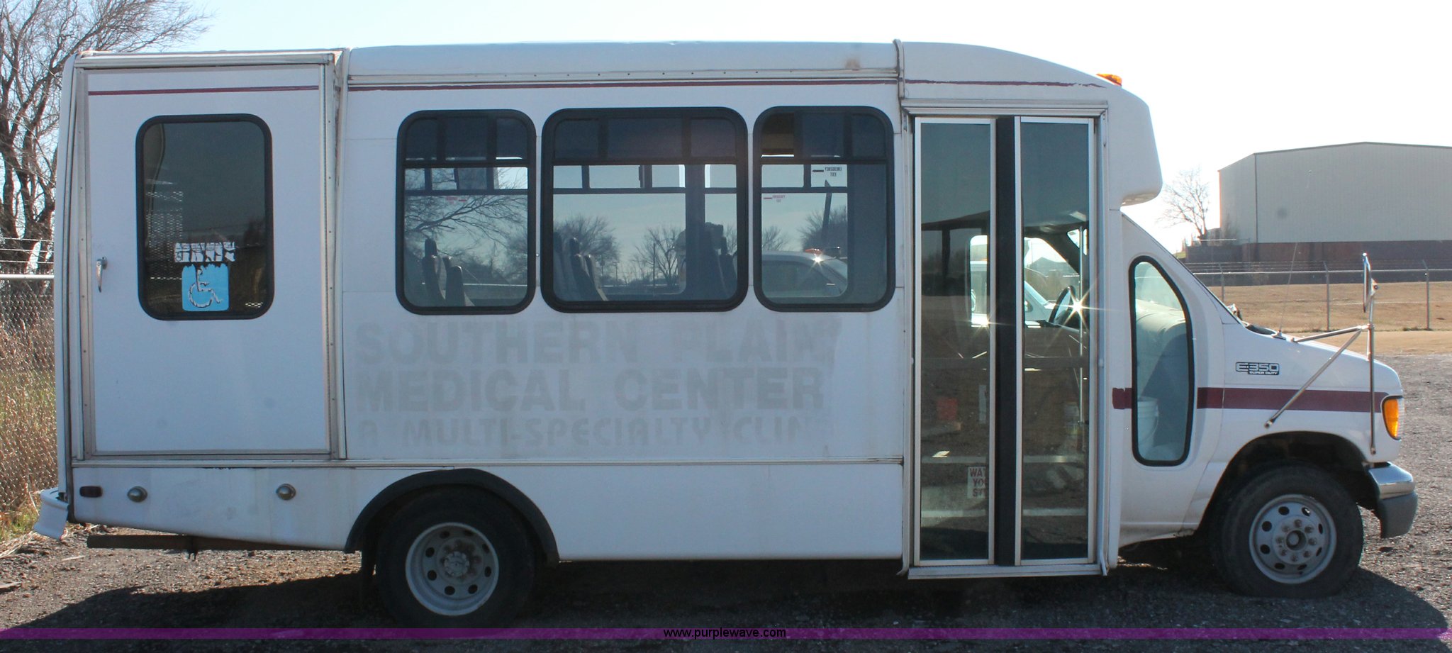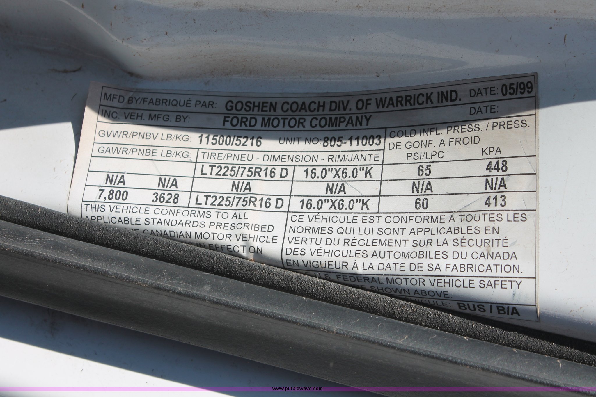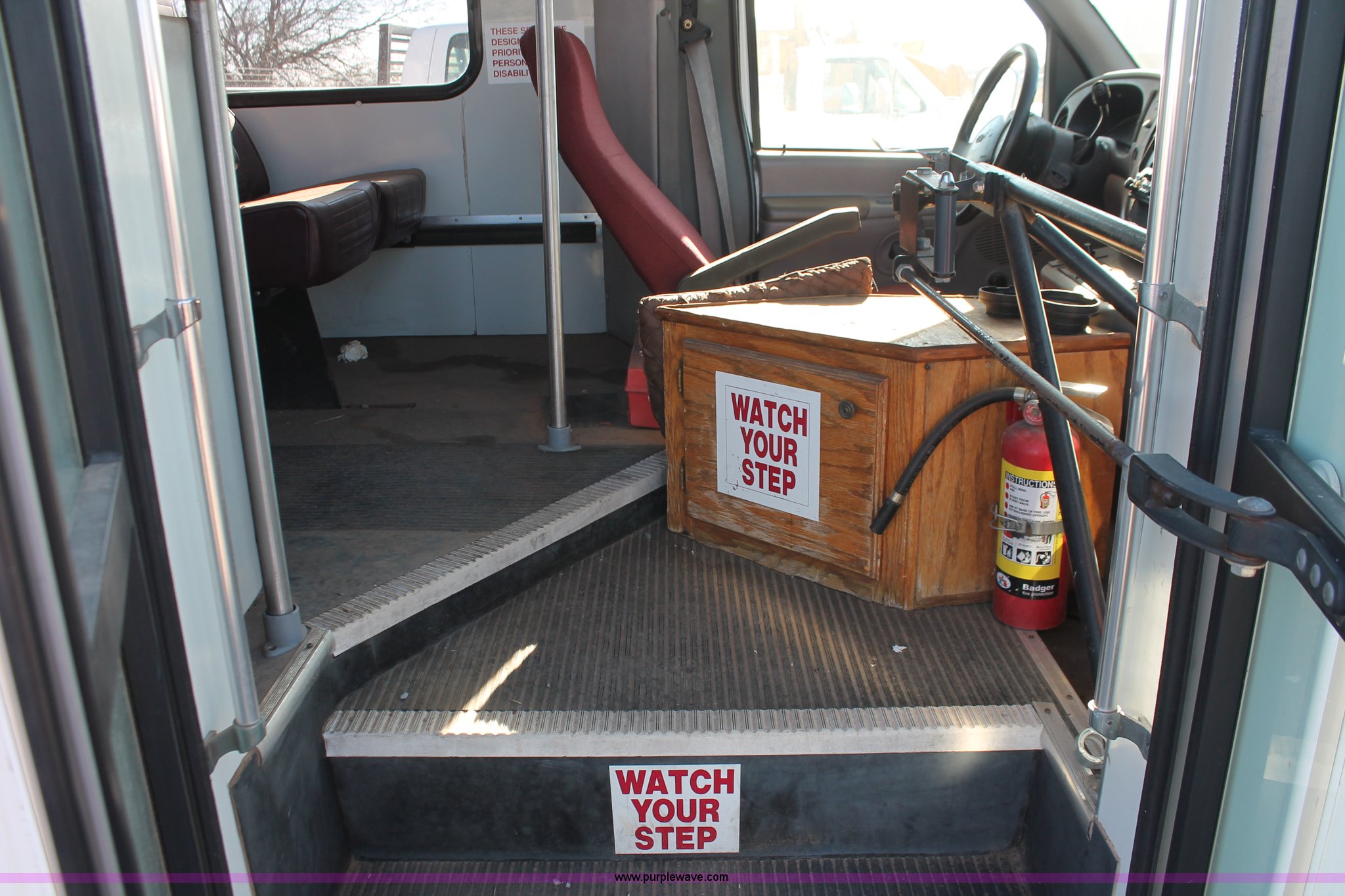Purple Wave is selling a used Bus in Oklahoma. This item is a 1999 Ford Econoline E350 bus with the following: 198,548 miles on odometer, 6.8L V10 SOHC 20V gas engine, Automatic transmission, AC and heat, AM/FM/cassette, Manual windows and locks, Vinyl/cloth interior, Goshen coach body, Roof and window emergency egress, Handicap lift, LT225/75R16 tires, Vehicle does not run