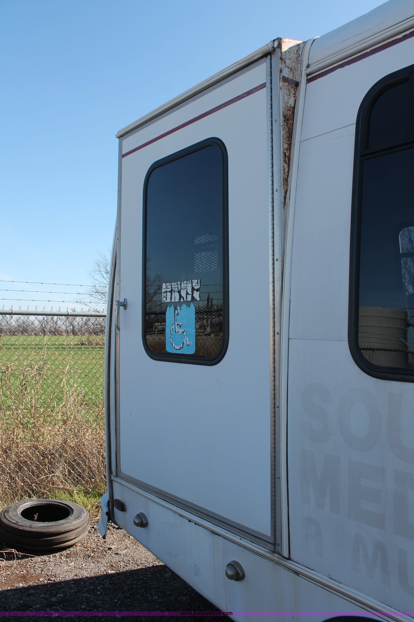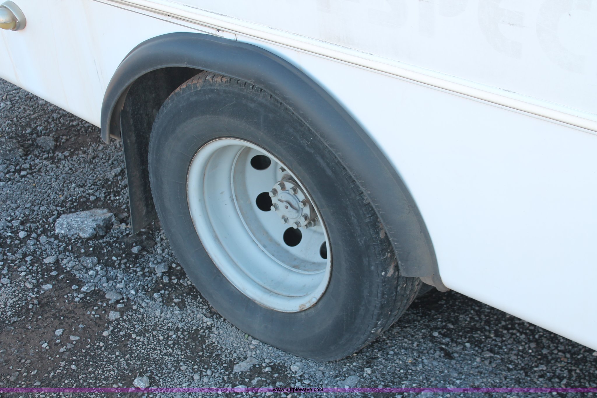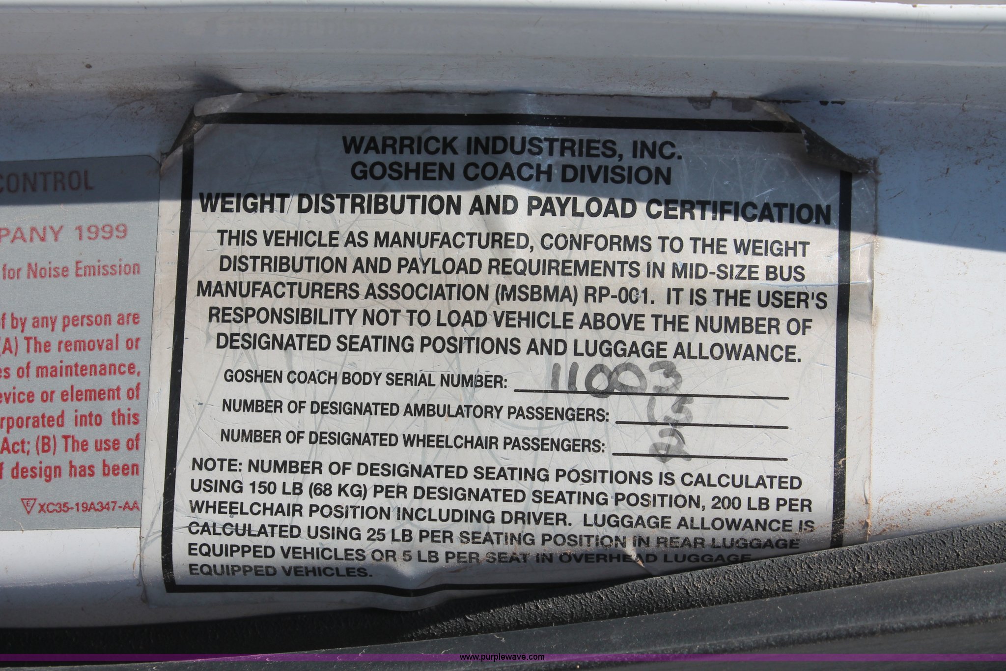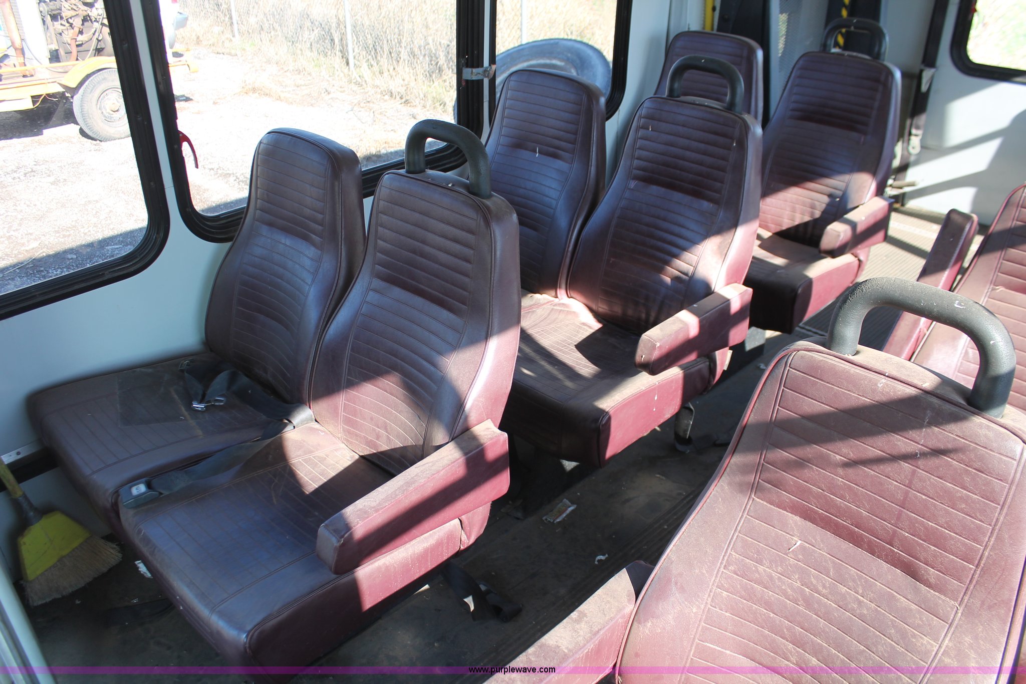 Purple Wave is selling a used Bus in Oklahoma. This item is a 1999 Ford Econoline E350 bus with the following: 198,548 miles on odometer, 6.8L V10 SOHC 20V gas engine, Automatic transmission, AC and heat, AM/FM/cassette, Manual windows and locks, Vinyl/cloth interior, Goshen coach body, Roof and window emergency egress, Handicap lift, LT225/75R16 tires, Vehicle does not run