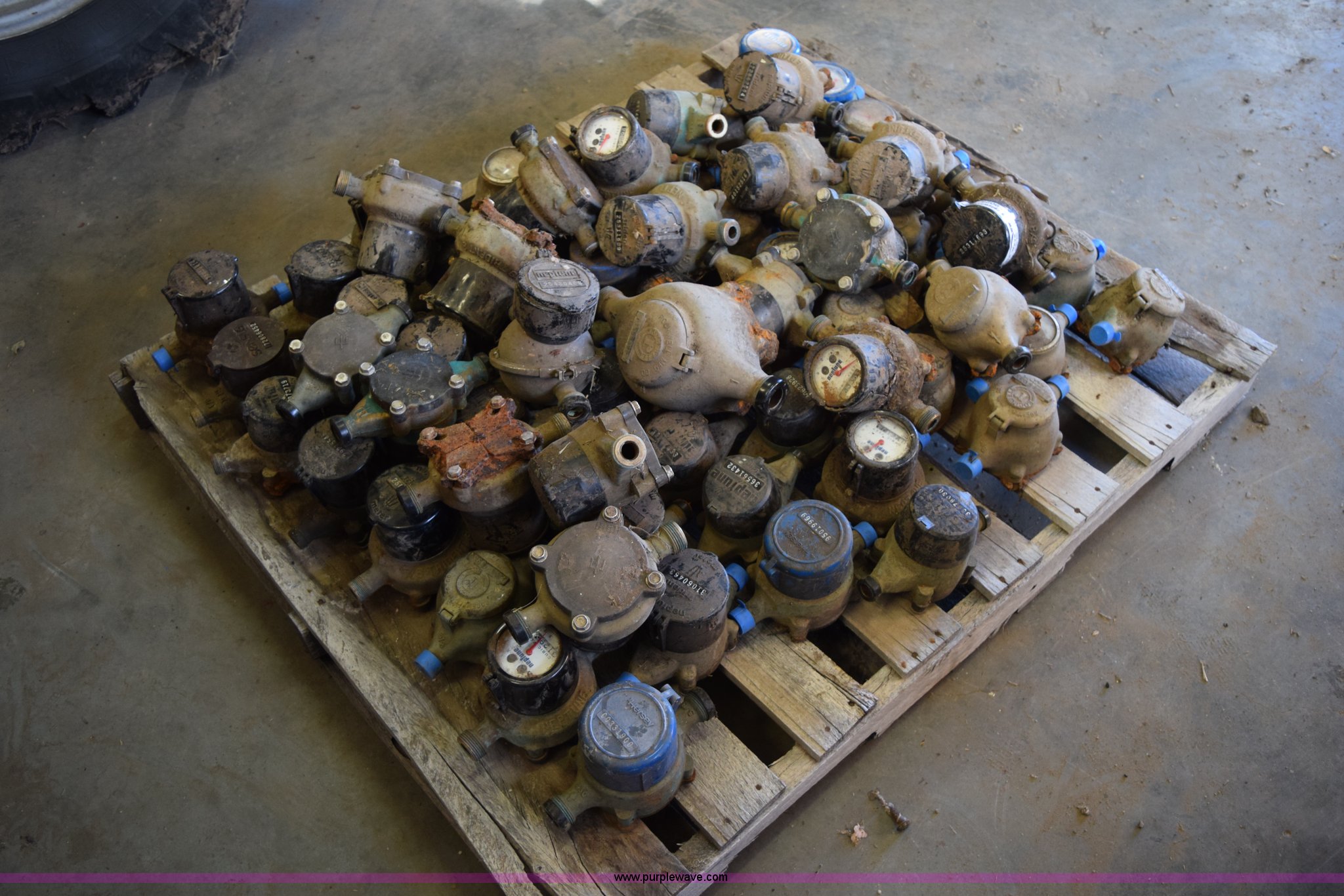 Purple Wave is selling a used Building Materials in Kansas. This item is a Assorted water meters with the following: Approx. 49 5/8", Approx. 22 3/4", One is 1", Unknown operating condition
