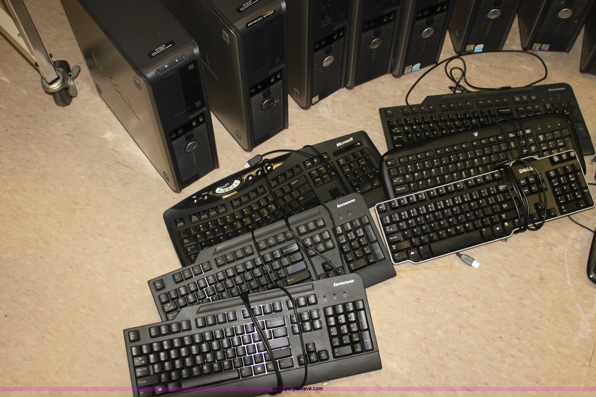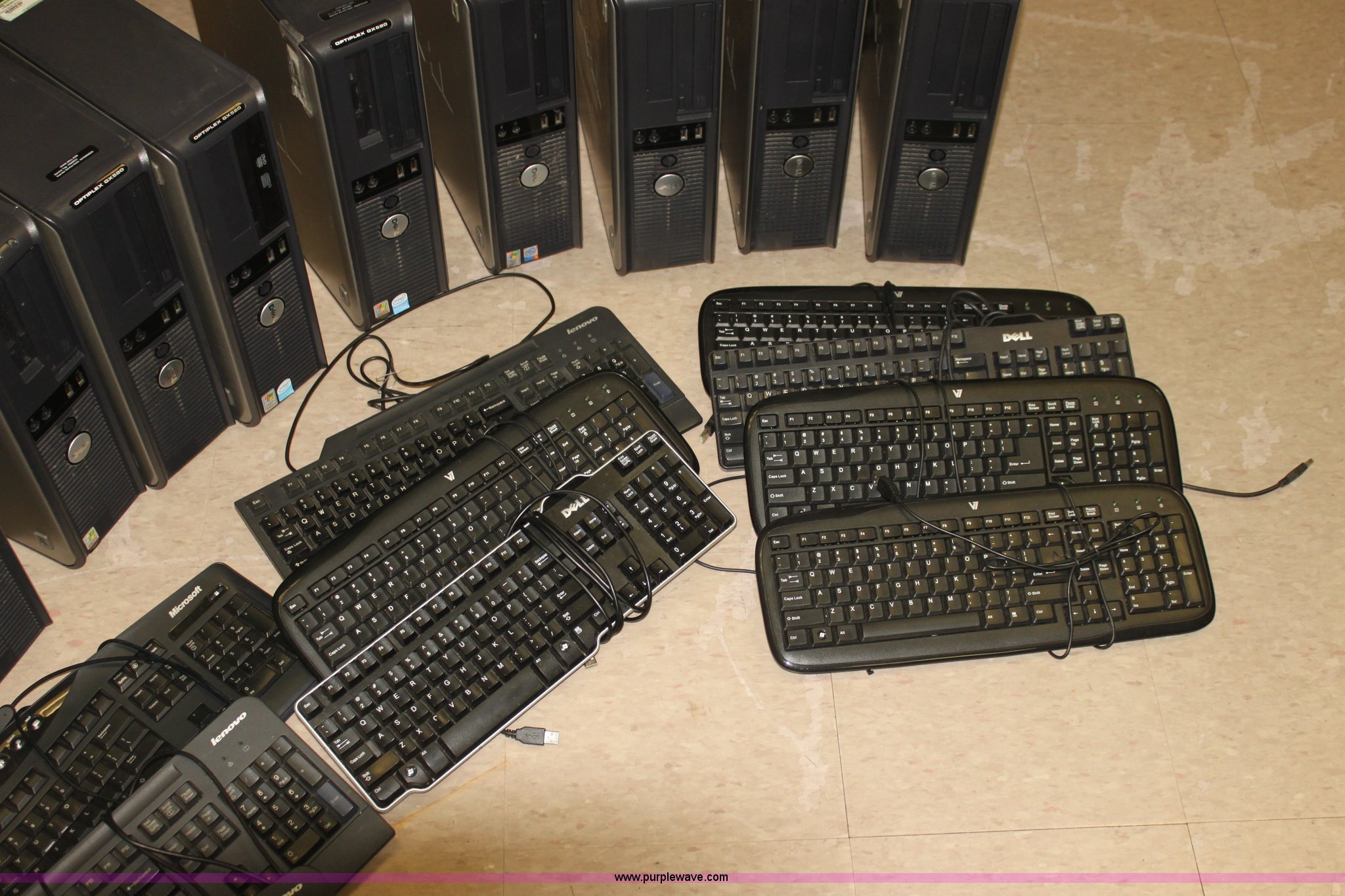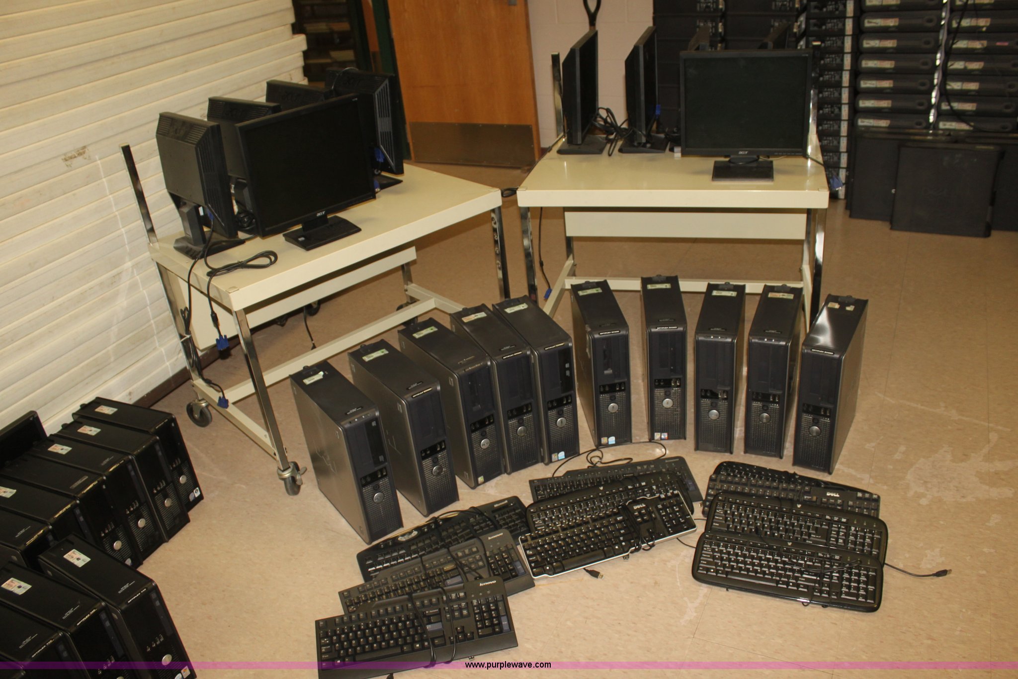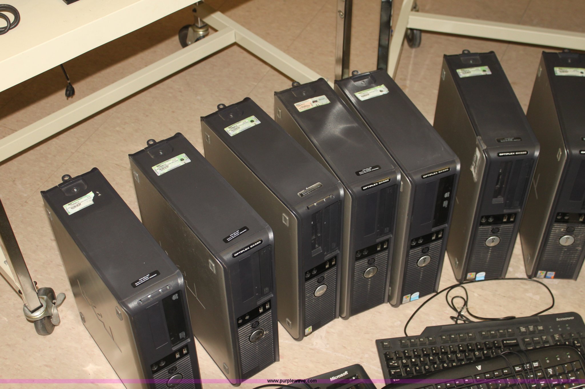 Purple Wave is selling a used Computers in Kansas. This item is a (10) computers with the following: Acer monitors, Optiplex GX520 CPUs, Optiplex GX620 CPUs, Microsoft, Lenovo, and Dell keyboards