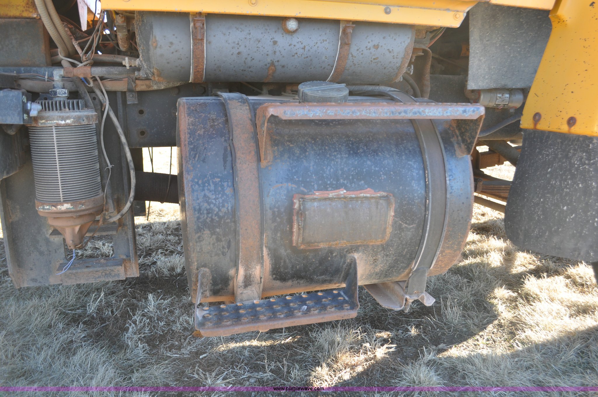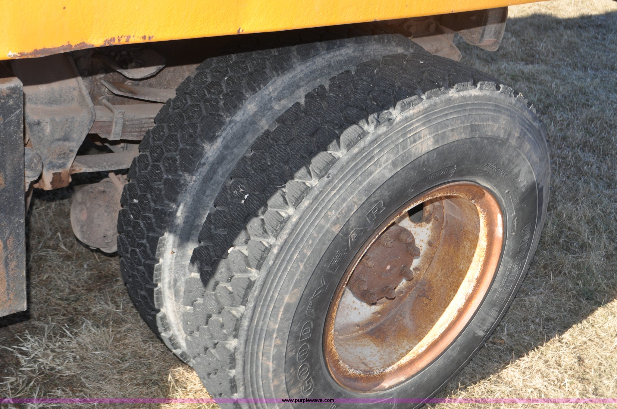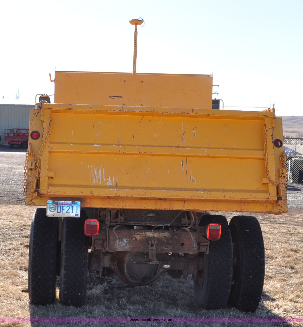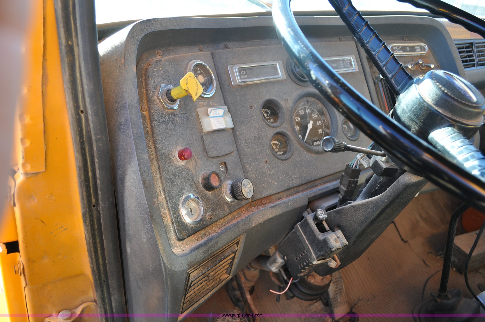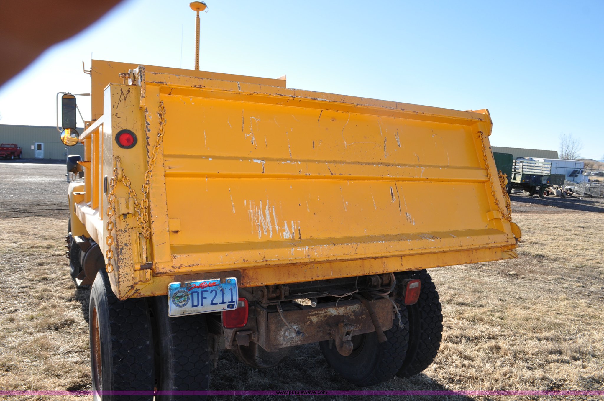 Purple Wave is selling a used Construction Dump Truck in South Dakota. This item is a 1988 Ford L8000 dump truck with the following: 91,798 miles on odometer, International DT466 7.8L six cylinder diesel engine, 185 HP, Five speed manual transmission, Two speed rear end, Heat, AM/FM, Manual windows and locks, Air suspension seat, 10'L dump bed, Manual end gate, Flink PF91 hydraulic snow plow mount, Front mounted hydraulic pump, Dual fuel tanks, Pintle hitch, Air brakes, 10.00R20 tires, Unit# DF211