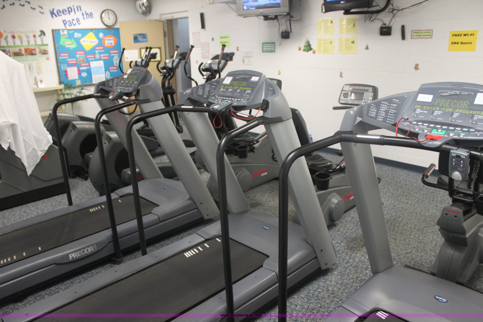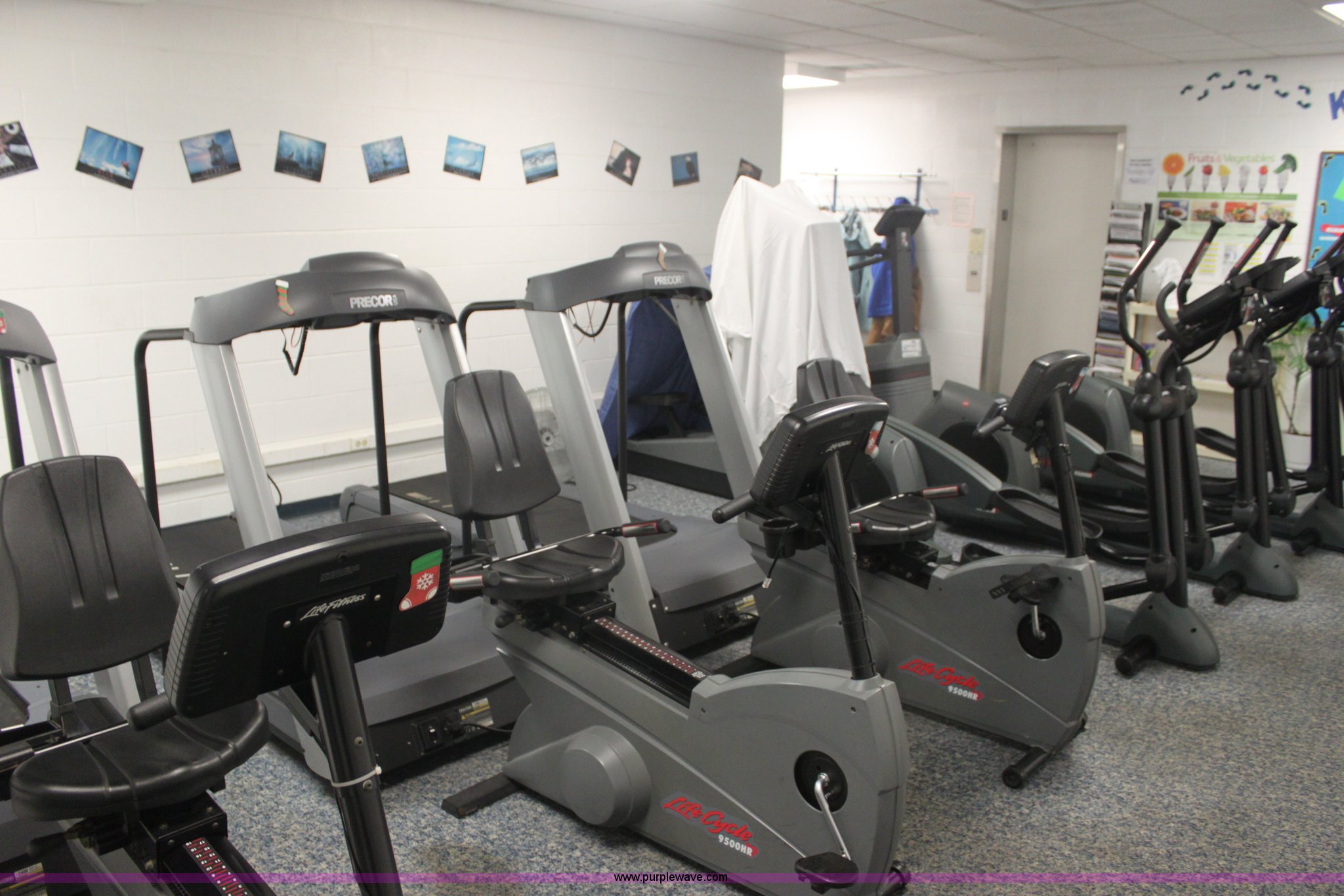 Assorted fitness equipment. (5) treadmills (3) 2005 Precor Model C956i, 220 watts, (2) 2004 Precor Model C956, 110 watts, (4) cross-trainers 1999 Life Fitness Elliptical Model LS9500HR, (3) 2001 Life Fitness Elliptical Model CT9500HHR, 1999 Life Fitness LS9500 stair climber, (3) 1999 Life Fitness Recumbent 9500HR bike, (16) pieces of weight training Quantum Fitness equipment 1999 vertical chest press Model FT-510, 250 lbs, 1999 seated vertical row Model FT535, 200 lbs, 1999 bicep curl Model FT520, 150 lbs, 1999 tricep extension Model FT521, 150 lbs, 1999 shoulder press Model FT502, 200 lbs, 1999 rigid pull down Model FT508, 250 lbs, 1999 pectoral butterfly Model FT5111, 150 lbs, 1999 seated leg curl Model FT555, 200 lbs, 1999 seated leg extension Model FT560, 250 lbs, 1999 horizontal leg press Model FT563, 400 lbs, 2000 hip/buttock Model FT549X, 200 lbs, 2000 adductor/abductor combination Model CS566, 200 lbs, 1999 back extension Model FT534, 200 lbs, 2000 abdominal crunch Model CS566, 200 lbs, 2006 roto-crunch Model QES-2024, 150 lbs, 2007 Power System KPS-FID multi-angle bench, Some items will be disassembled by sale date. Emporia Recreation. Emporia, KS 66801