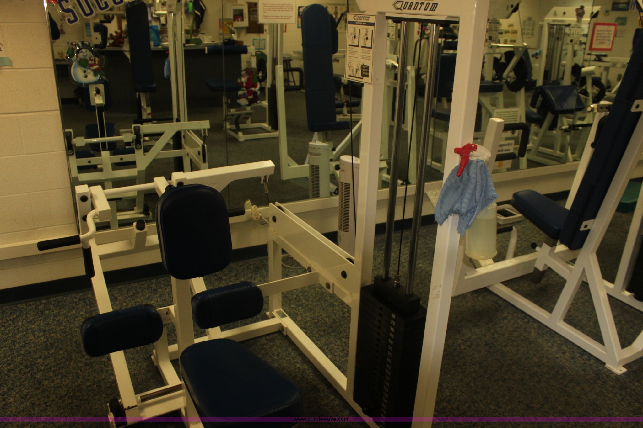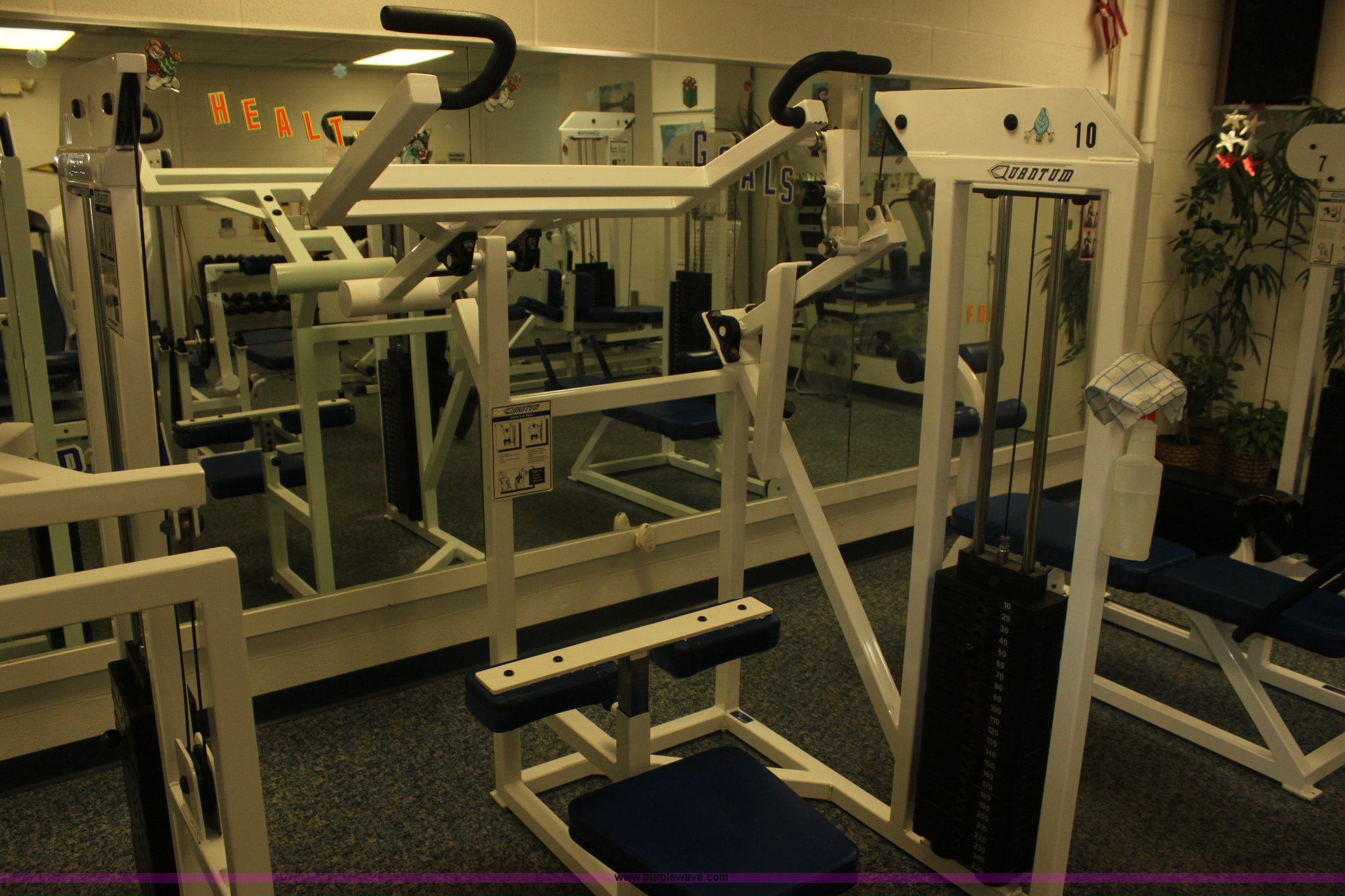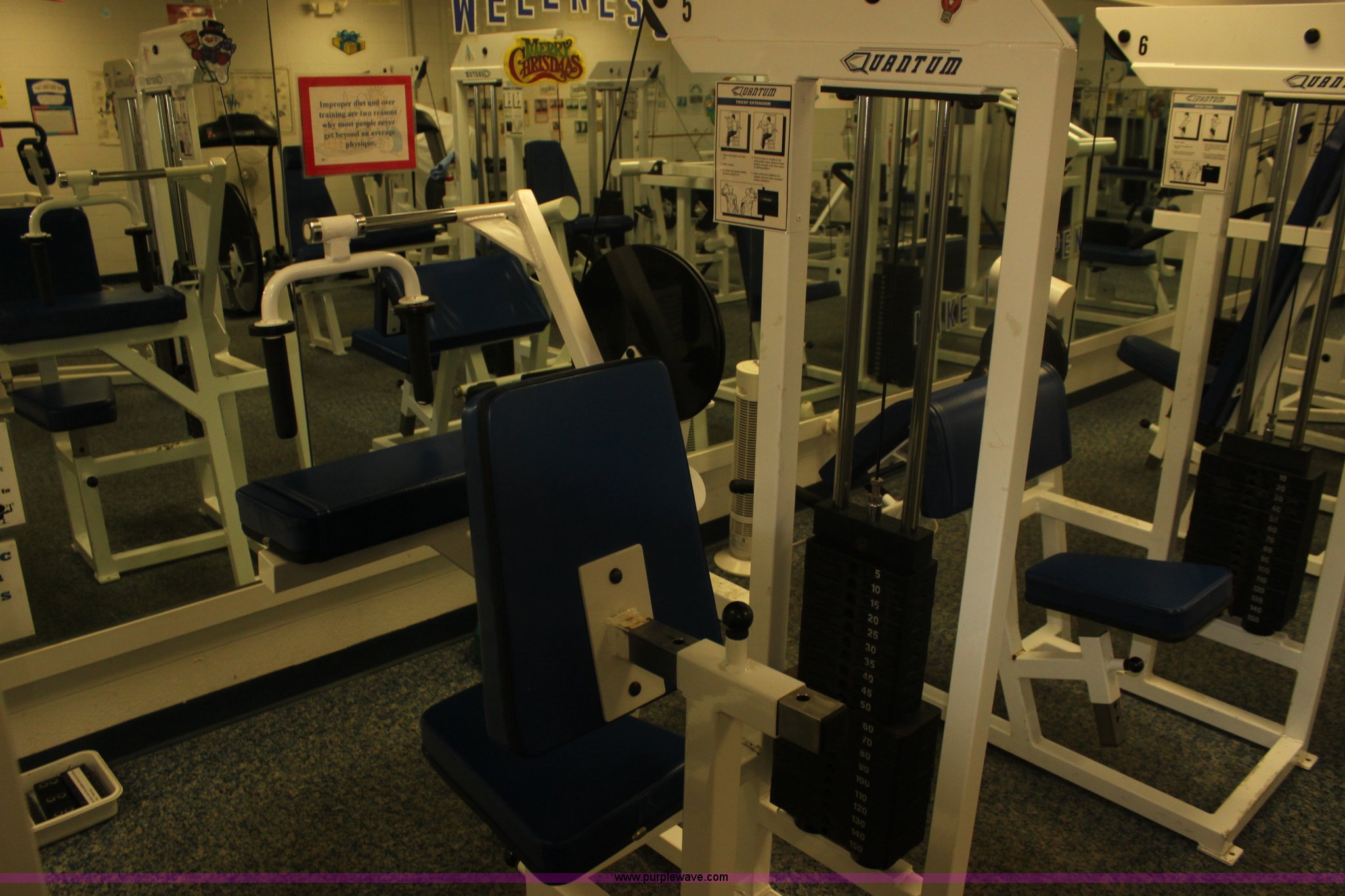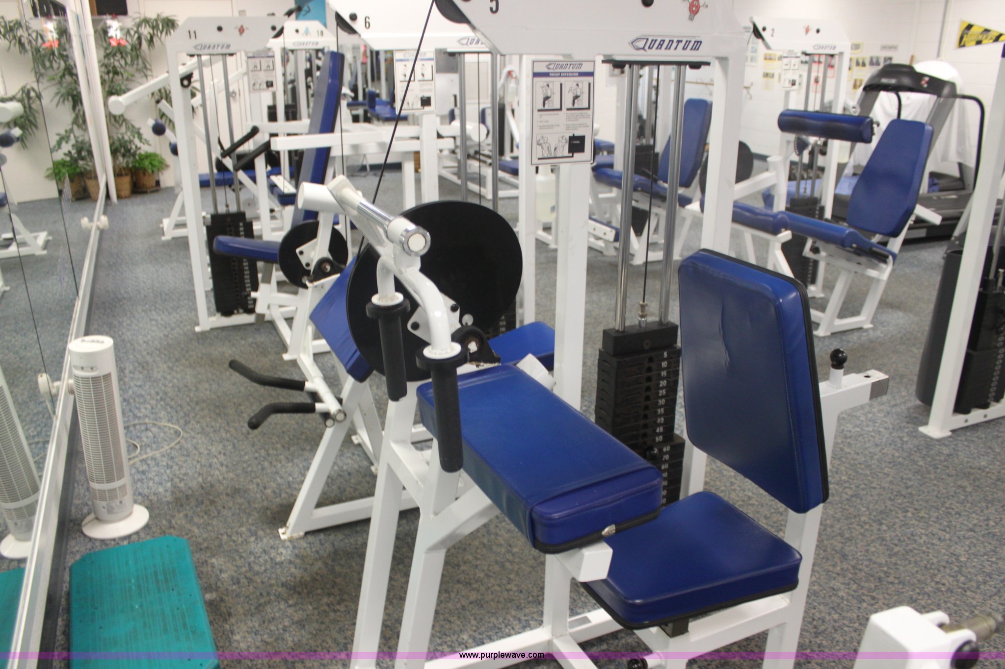 Purple Wave is selling a used Sporting Goods in Kansas. This item is a Assorted fitness equipment with the following: (5) treadmills, (3) 2005 Precor, Model C956i, 220 watts, (2) 2004 Precor, Model C956, 110 watts,, (4) cross-trainers, 1999 Life Fitness Elliptical, Model LS9500HR, (3) 2001 Life Fitness Elliptical, Model CT9500HHR,, 1999 Life Fitness LS9500 stair climber, (3) 1999 Life Fitness Recumbent 9500HR bike, (16) pieces of weight training Quantum Fitness equipment, 1999 vertical chest press, Model FT-510, 250 lbs, 1999 seated vertical row, Model FT535, 200 lbs, 1999 bicep curl, Model FT520, 150 lbs, 1999 tricep extension, Model FT521, 150 lbs, 1999 shoulder press, Model FT502, 200 lbs, 1999 rigid pull down, Model FT508, 250 lbs, 1999 pectoral butterfly, Model FT5111, 150 lbs, 1999 seated leg curl, Model FT555, 200 lbs, 1999 seated leg extension, Model FT560, 250 lbs, 1999 horizontal leg press, Model FT563, 400 lbs, 2000 hip/buttock, Model FT549X, 200 lbs, 2000 adductor/abductor combination, Model CS566, 200 lbs, 1999 back extension, Model FT534, 200 lbs, 2000 abdominal crunch, Model CS566, 200 lbs, 2006 roto-crunch, Model QES-2024, 150 lbs, 2007 Power System KPS-FID multi-angle bench, Some items will be disassembled by sale date