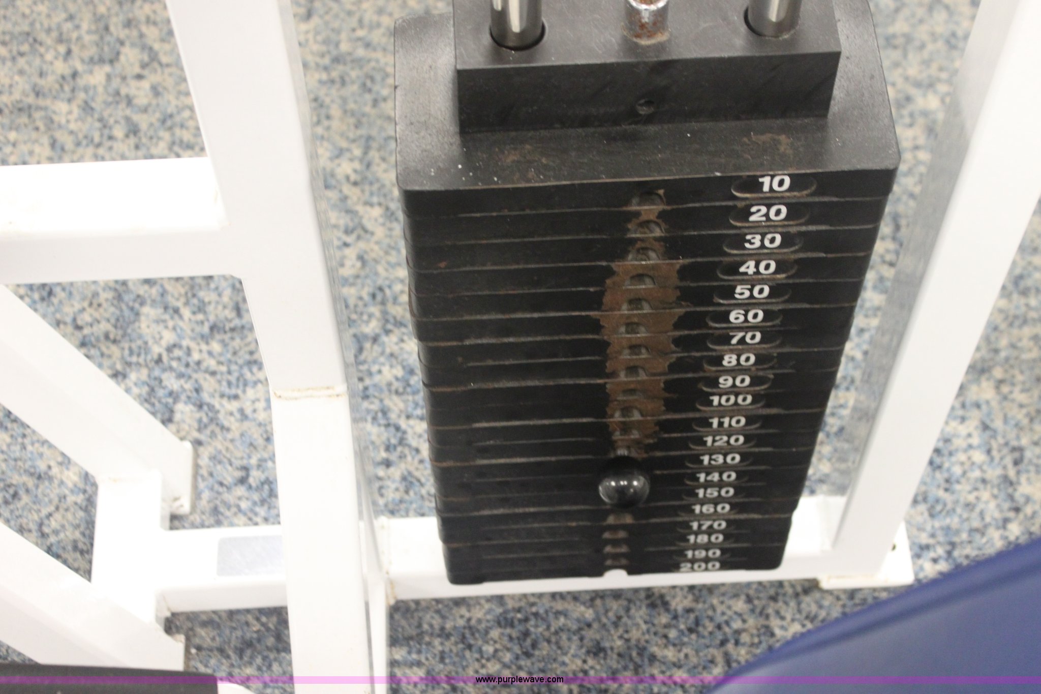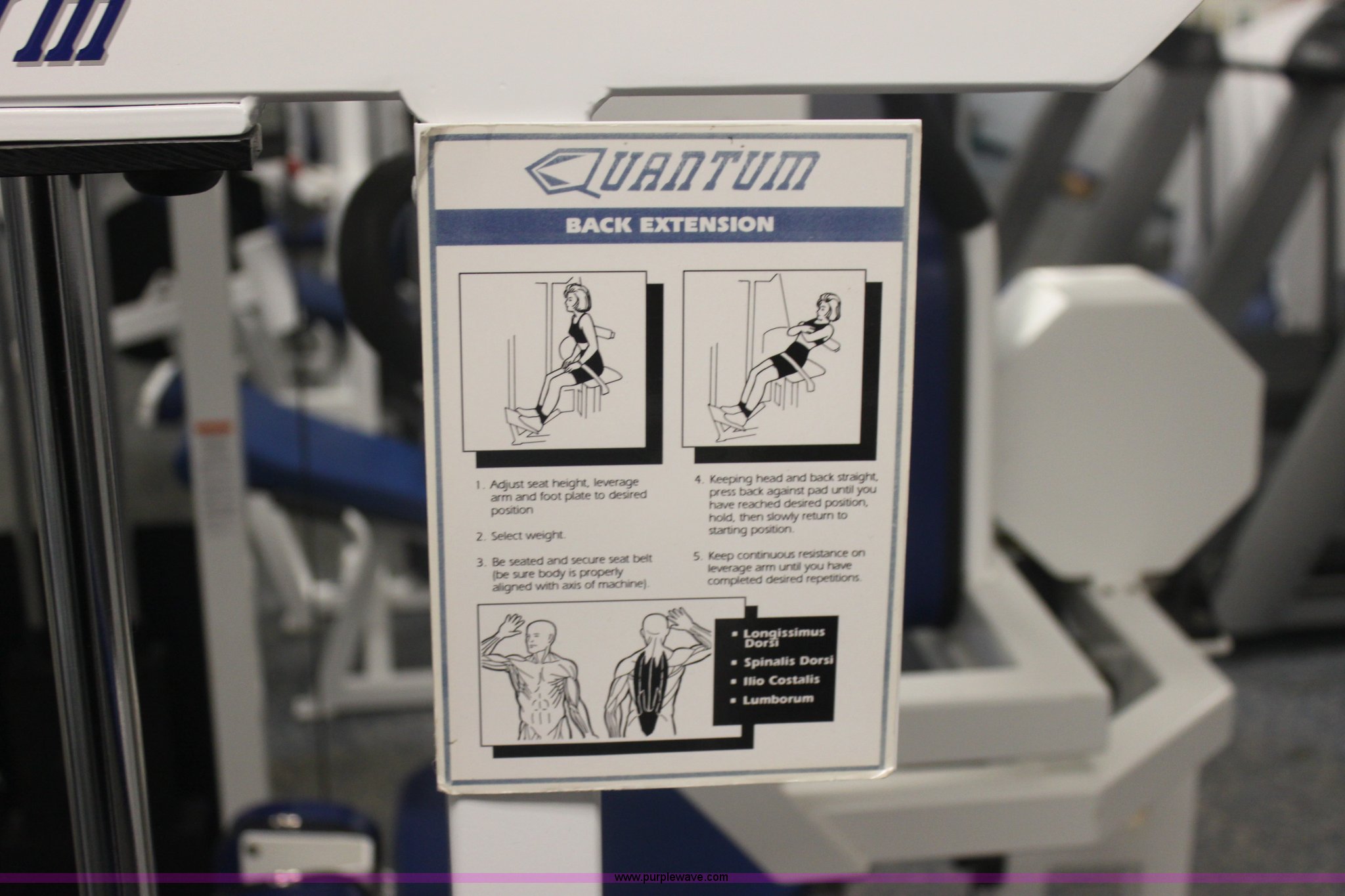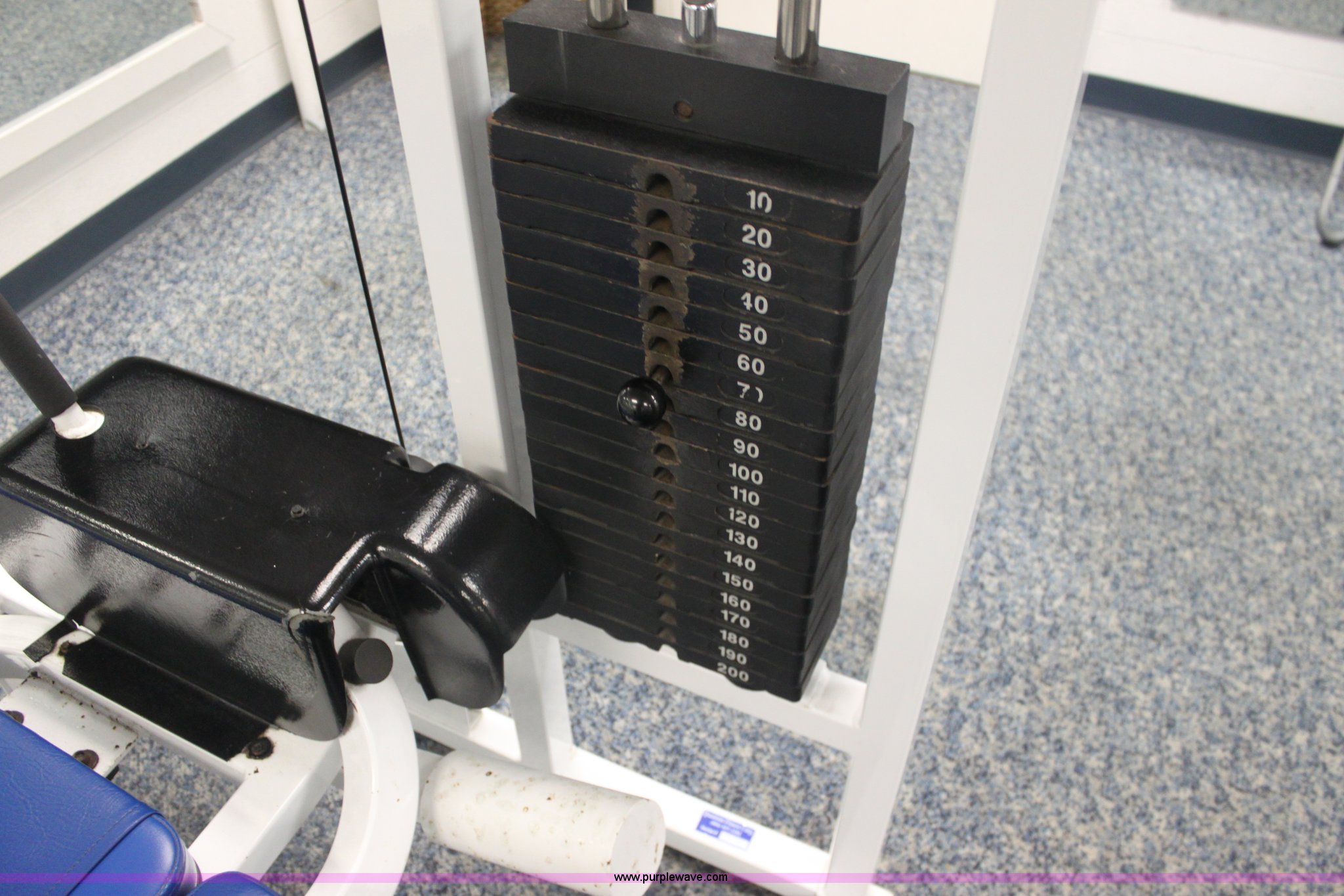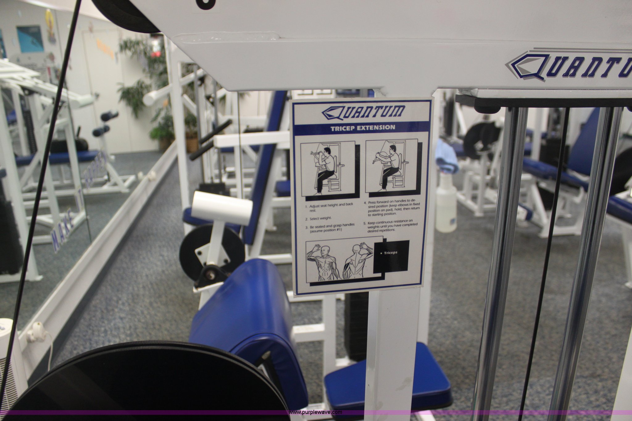 Purple Wave is selling a used Sporting Goods in Kansas. This item is a Assorted fitness equipment with the following: (5) treadmills, (3) 2005 Precor, Model C956i, 220 watts, (2) 2004 Precor, Model C956, 110 watts,, (4) cross-trainers, 1999 Life Fitness Elliptical, Model LS9500HR, (3) 2001 Life Fitness Elliptical, Model CT9500HHR,, 1999 Life Fitness LS9500 stair climber, (3) 1999 Life Fitness Recumbent 9500HR bike, (16) pieces of weight training Quantum Fitness equipment, 1999 vertical chest press, Model FT-510, 250 lbs, 1999 seated vertical row, Model FT535, 200 lbs, 1999 bicep curl, Model FT520, 150 lbs, 1999 tricep extension, Model FT521, 150 lbs, 1999 shoulder press, Model FT502, 200 lbs, 1999 rigid pull down, Model FT508, 250 lbs, 1999 pectoral butterfly, Model FT5111, 150 lbs, 1999 seated leg curl, Model FT555, 200 lbs, 1999 seated leg extension, Model FT560, 250 lbs, 1999 horizontal leg press, Model FT563, 400 lbs, 2000 hip/buttock, Model FT549X, 200 lbs, 2000 adductor/abductor combination, Model CS566, 200 lbs, 1999 back extension, Model FT534, 200 lbs, 2000 abdominal crunch, Model CS566, 200 lbs, 2006 roto-crunch, Model QES-2024, 150 lbs, 2007 Power System KPS-FID multi-angle bench, Some items will be disassembled by sale date