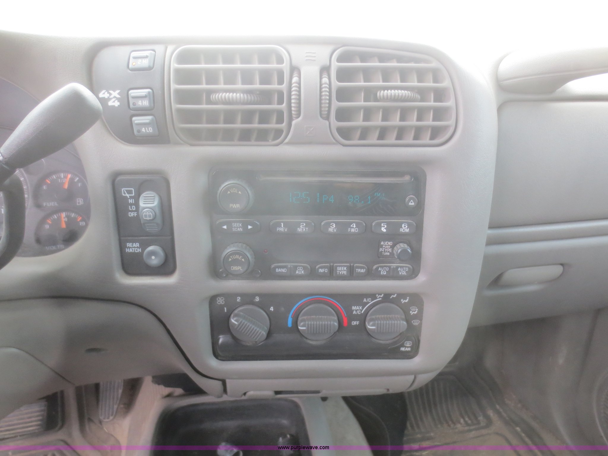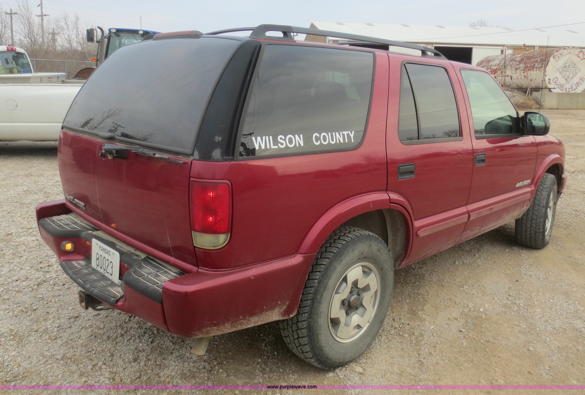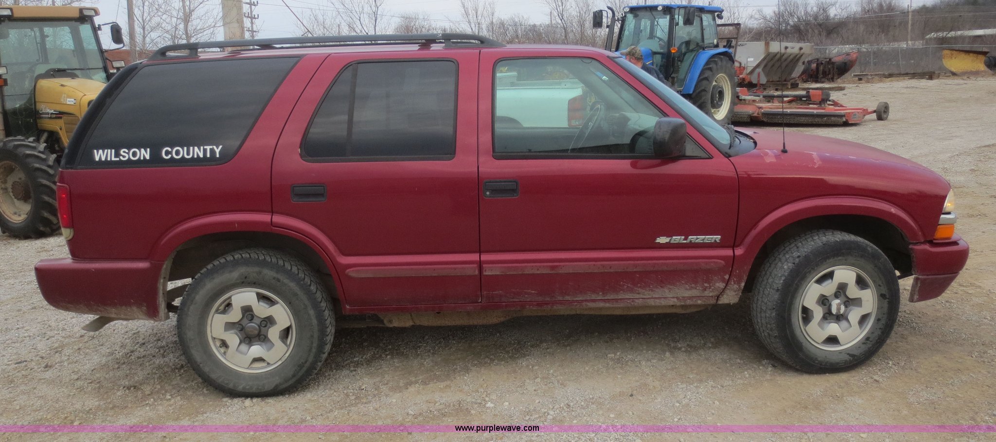 Purple Wave is selling a used Passenger Vehicle in Kansas. This item is a 2004 Chevrolet Blazer SUV with the following: 44,892 miles on odometer, 4.3L V6 OHV 12V gas engine, Automatic transmission, Four wheel drive, AC and heat, Tilt, Cruise, AM/FM, Power windows, locks, and mirrors, Cloth interior, Receiver hitch, LT235/75R16 tires