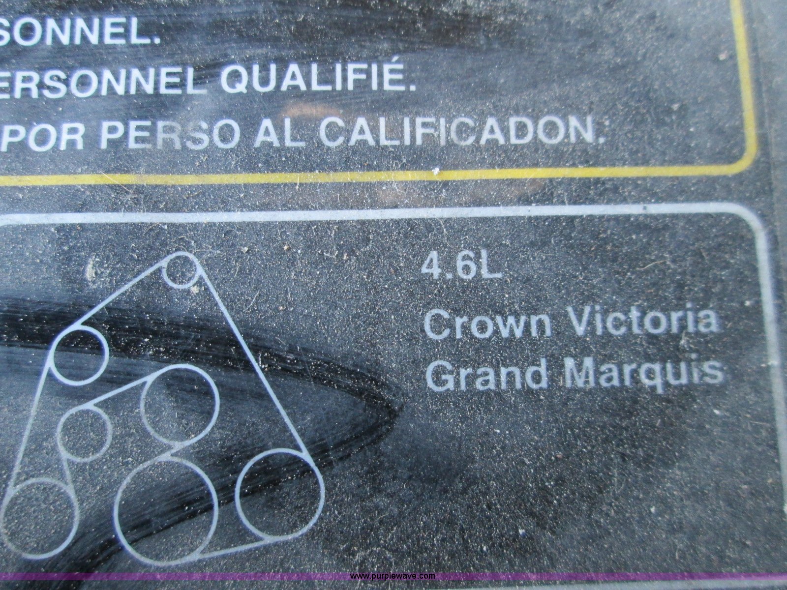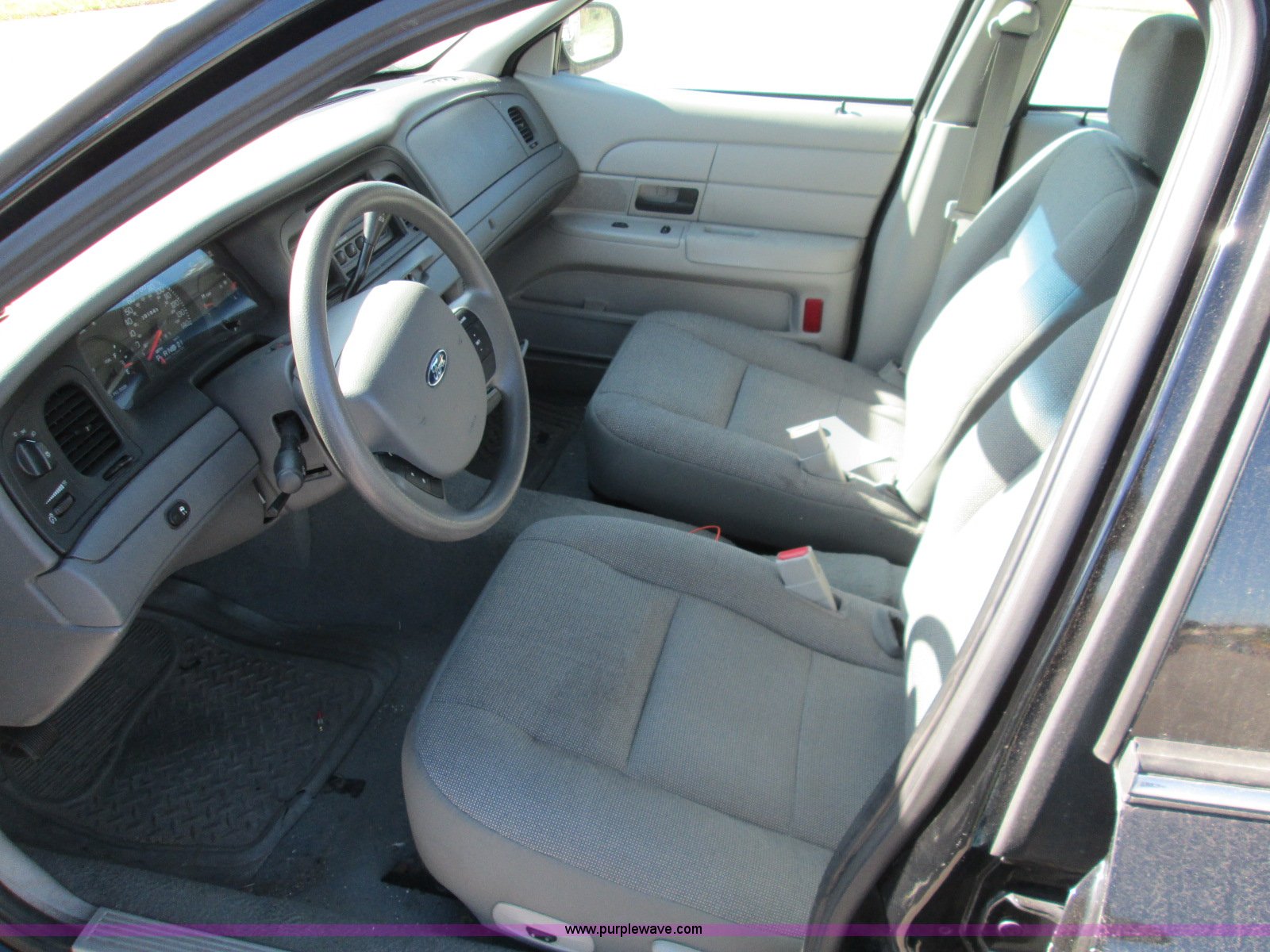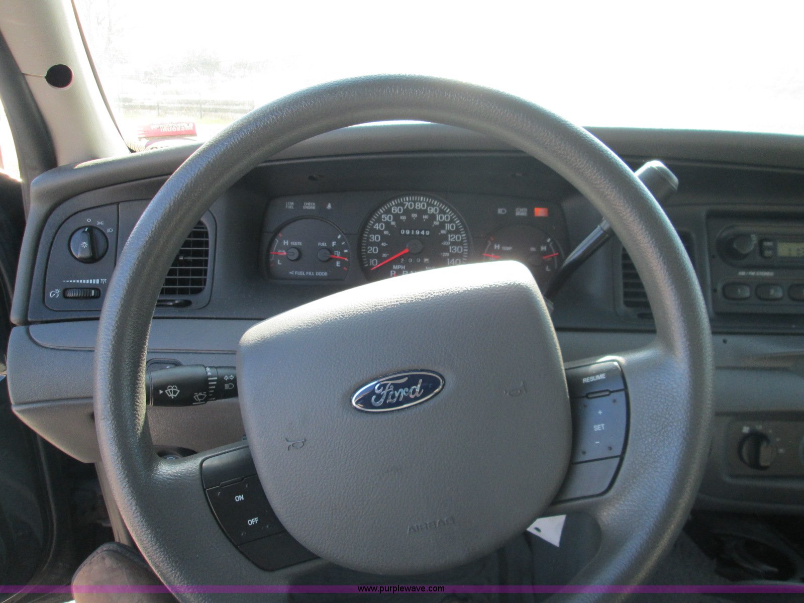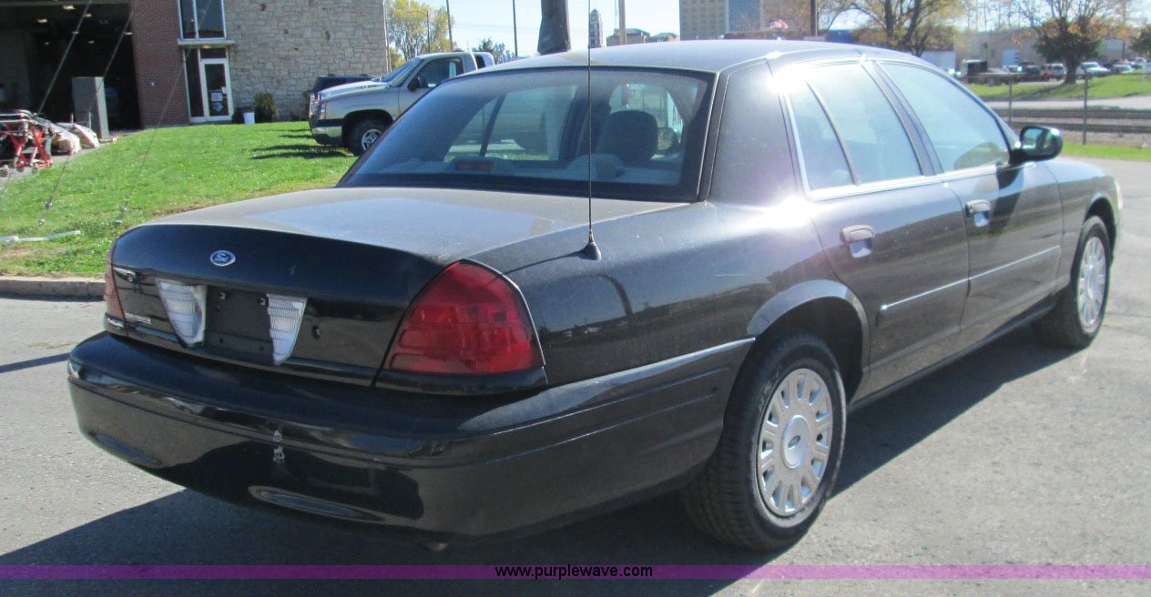 Purple Wave is selling a used Passenger Vehicle in Missouri. This item is a 2005 Ford Crown Victoria Police Interceptor with the following: 91,949 actual miles, 4.6L V8 SOHC 16V gas engine, Automatic transmission, AC and heat, Tilt, Cruise, AM/FM, Power windows, locks, mirrors, and seats, Cloth interior, 225/60R16 tires, Battery weak