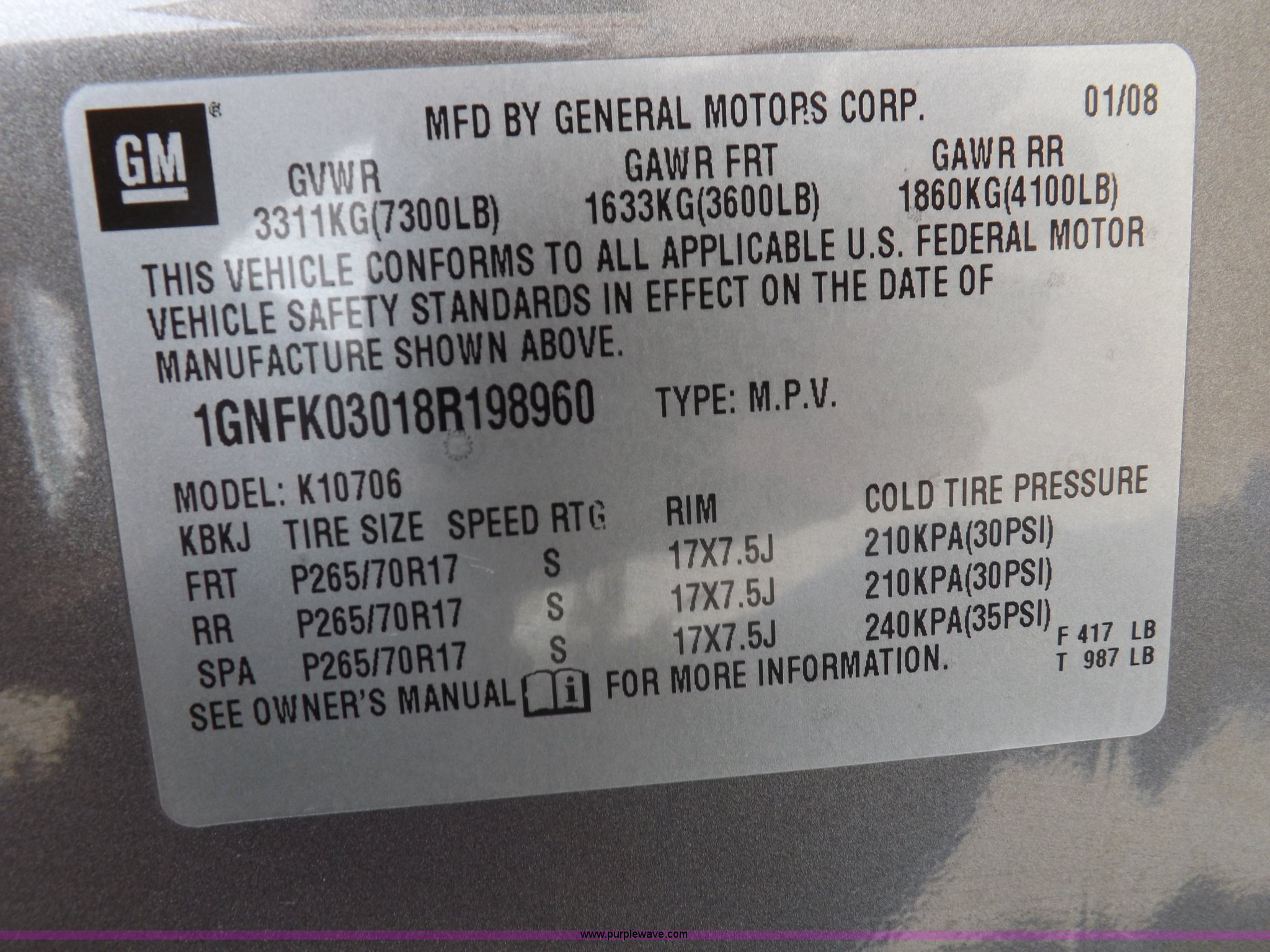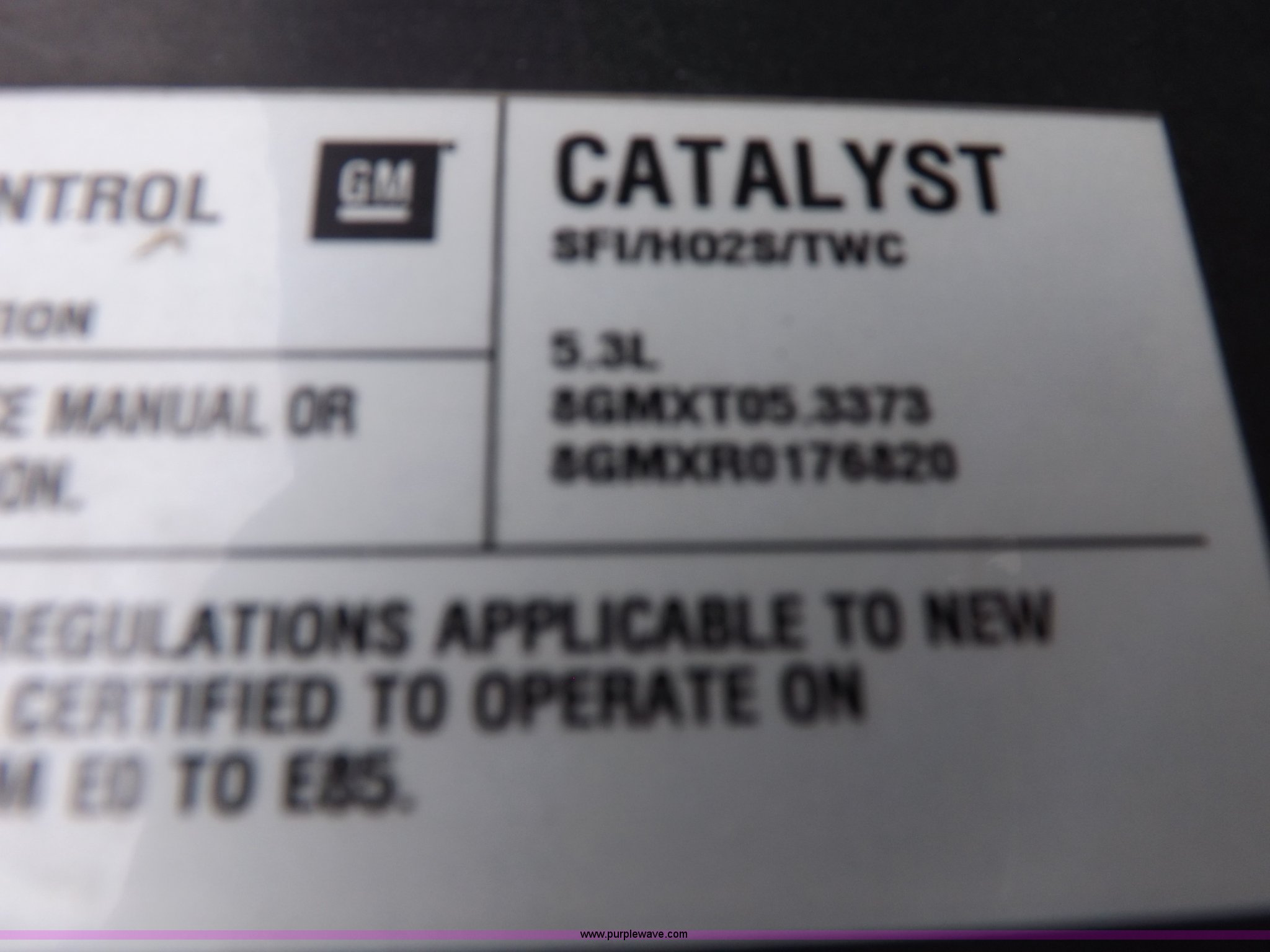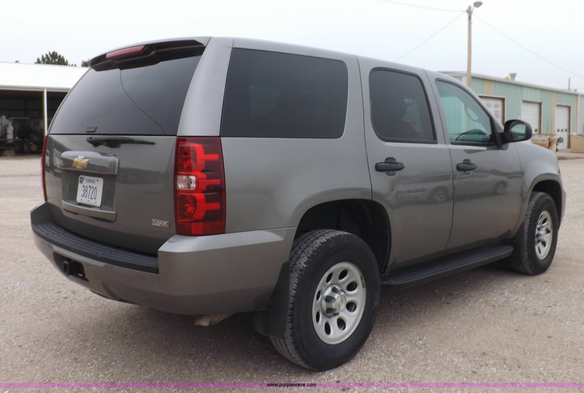 Purple Wave is selling a used Passenger Vehicle in Kansas. This item is a 2008 Chevrolet Tahoe Police SUV with the following: 67,660 actual miles, 5.3L V8 OHV 16V FFV gas engine, Automatic transmission, Four wheel drive, AC and heat, Tilt, Cruise, AM/FM/CD, Power windows, locks, mirrors, and seats, Cloth front interior, Vinyl rear interior, Spotlight, Receiver hitch, Trailer wiring, 265/70R17 tires, Interior/exterior cosmetic damage, Console missing, Plugged roof, Holes in interior trim, Holes in rear door, Cracked dash