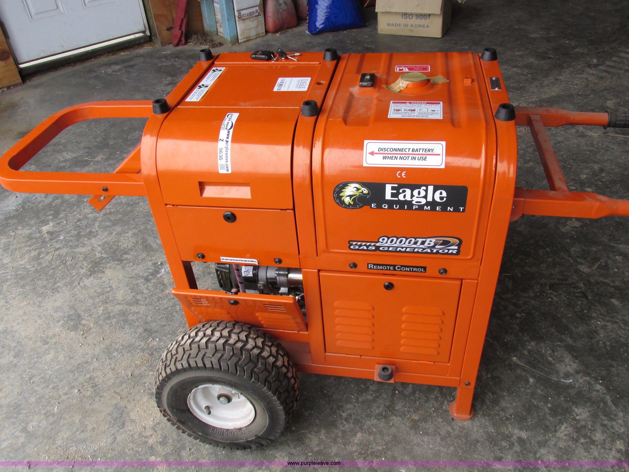 Purple Wave is selling a used Generator Set in Missouri. This item is a Eagle 9000TB generator with the following: Remote, Wheel kit, Serial EGTB7587
