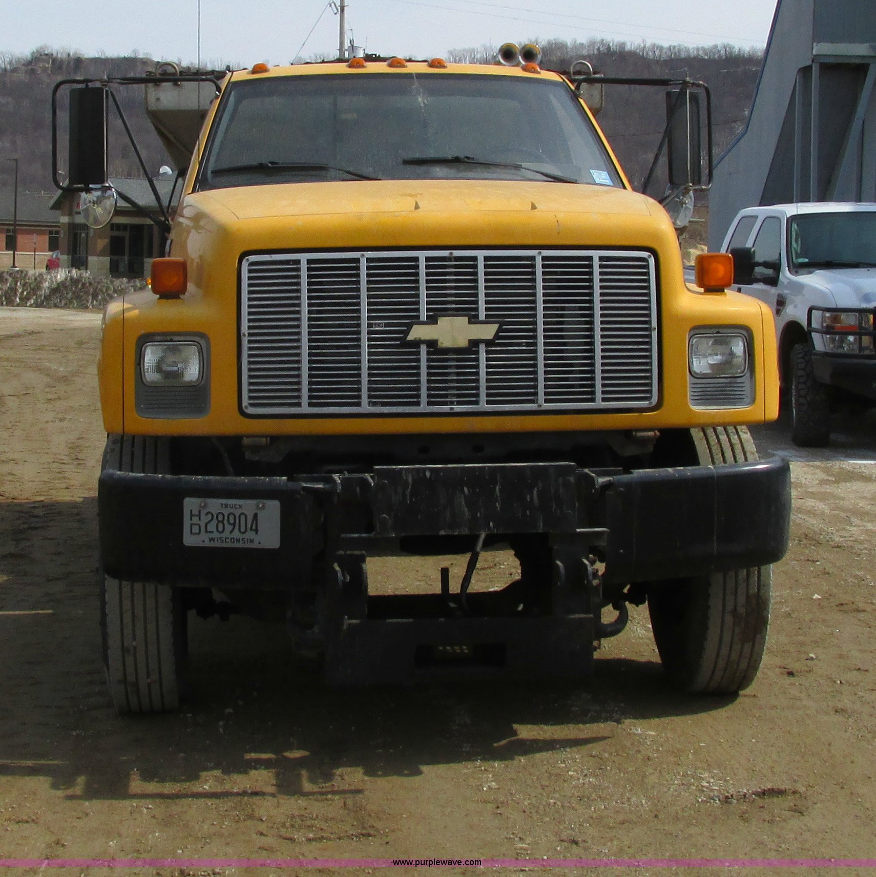 Purple Wave is selling a used Applicator Truck in Wisconsin. This item is a 1991 Chevrolet Kodiak salt spreader truck with the following: 26,608 miles on odometer, Caterpillar 3116 6.6L L6 diesel engine, Automatic transmission, Heat, AM/FM, Air suspension seat, PTO, In-cab plow controls, Single fuel tank, Swenson spreader, Stainless steel construction, Hydraulic driven, Spring suspension, Air brakes, 10.00-20 tires, GVWR 29,900