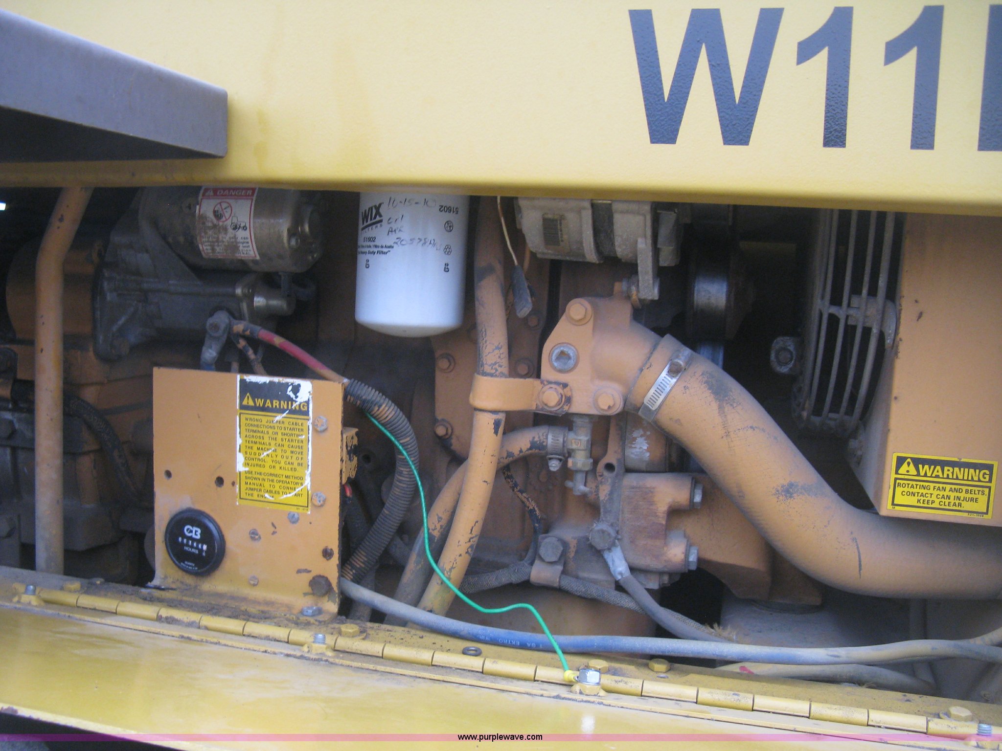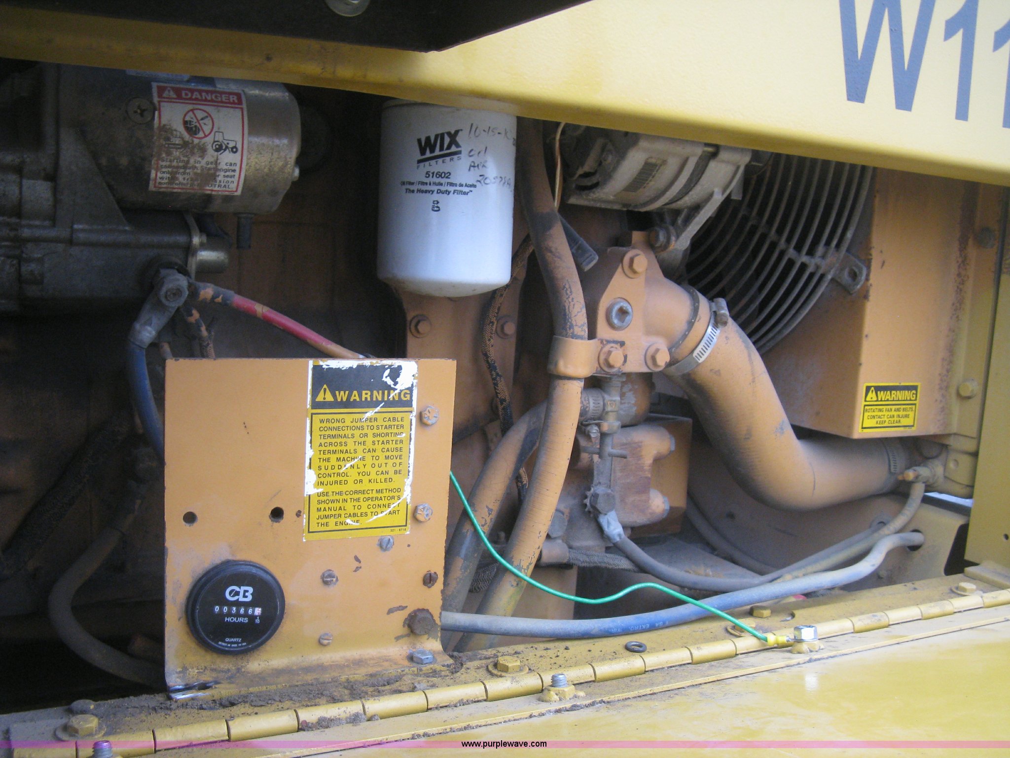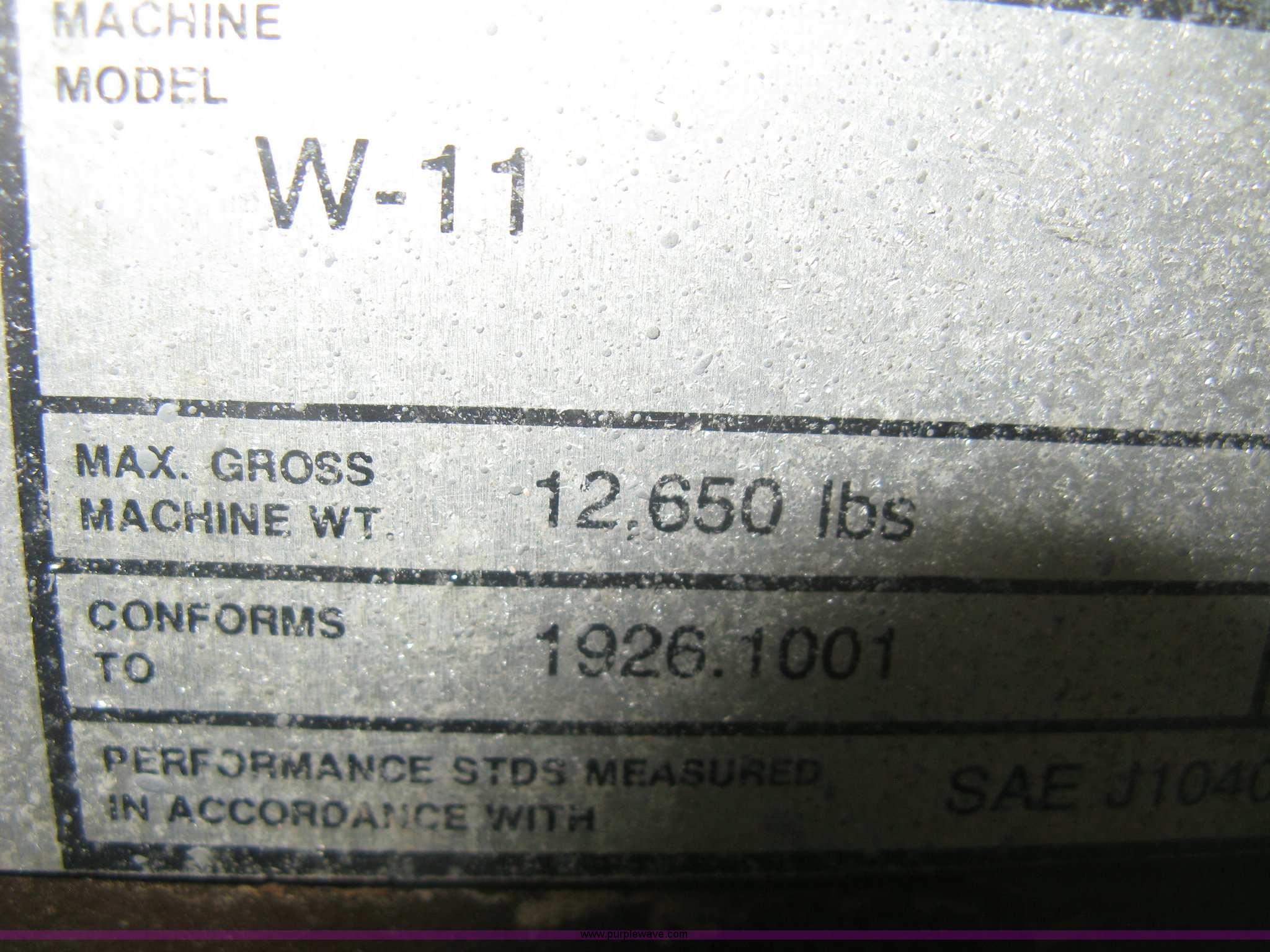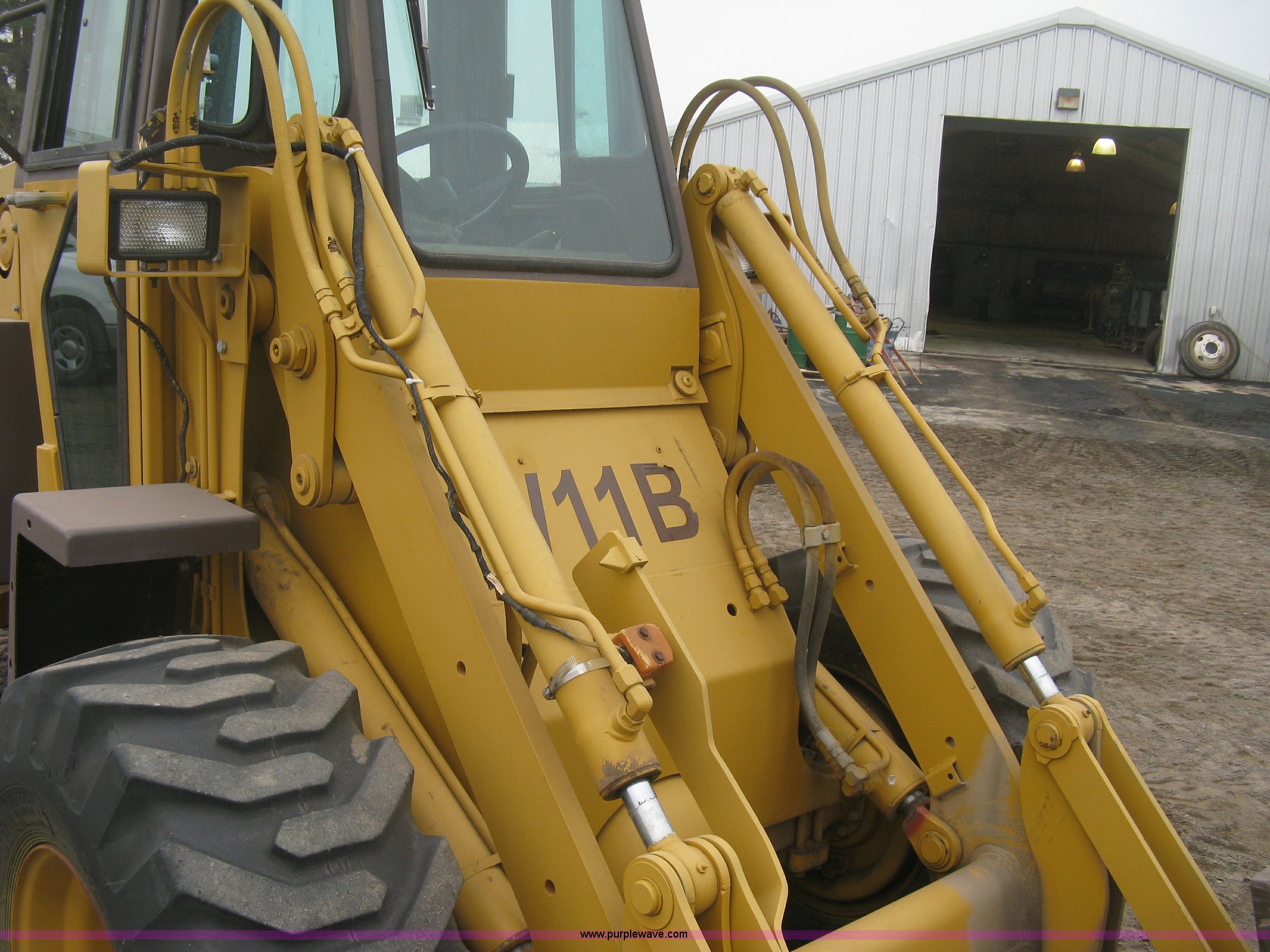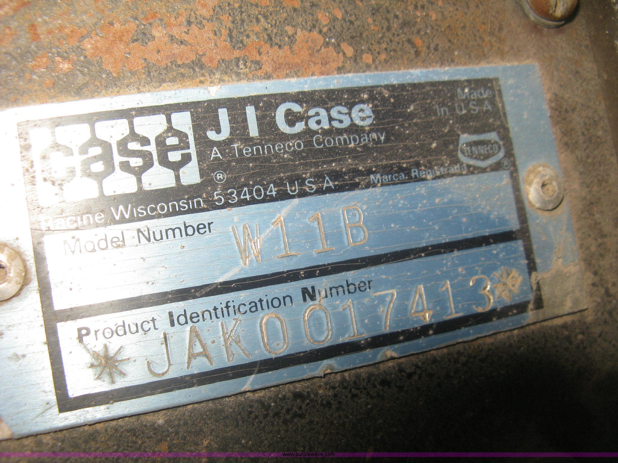 Purple Wave is selling a used Wheel Loader in Kansas. This item is a 1989 Case W11B wheel loader with the following: 366 hours on meter, Actual hours unknown, Four cylinder diesel engine, Model 4-390, Serial 44341311, Three speed shuttle shift transmission, Enclosed cab, Suspension seat, Two stick loader control, Quick coupler, 80" loader bucket, Bolt-on cutting edge, No edge included, Hang/hook over pallet forks, 15-19.5NHS tires, Some damaged, will hold air, 10,849 lbs. base operating weight, Serial JAK0017413, Unit# 05-0011