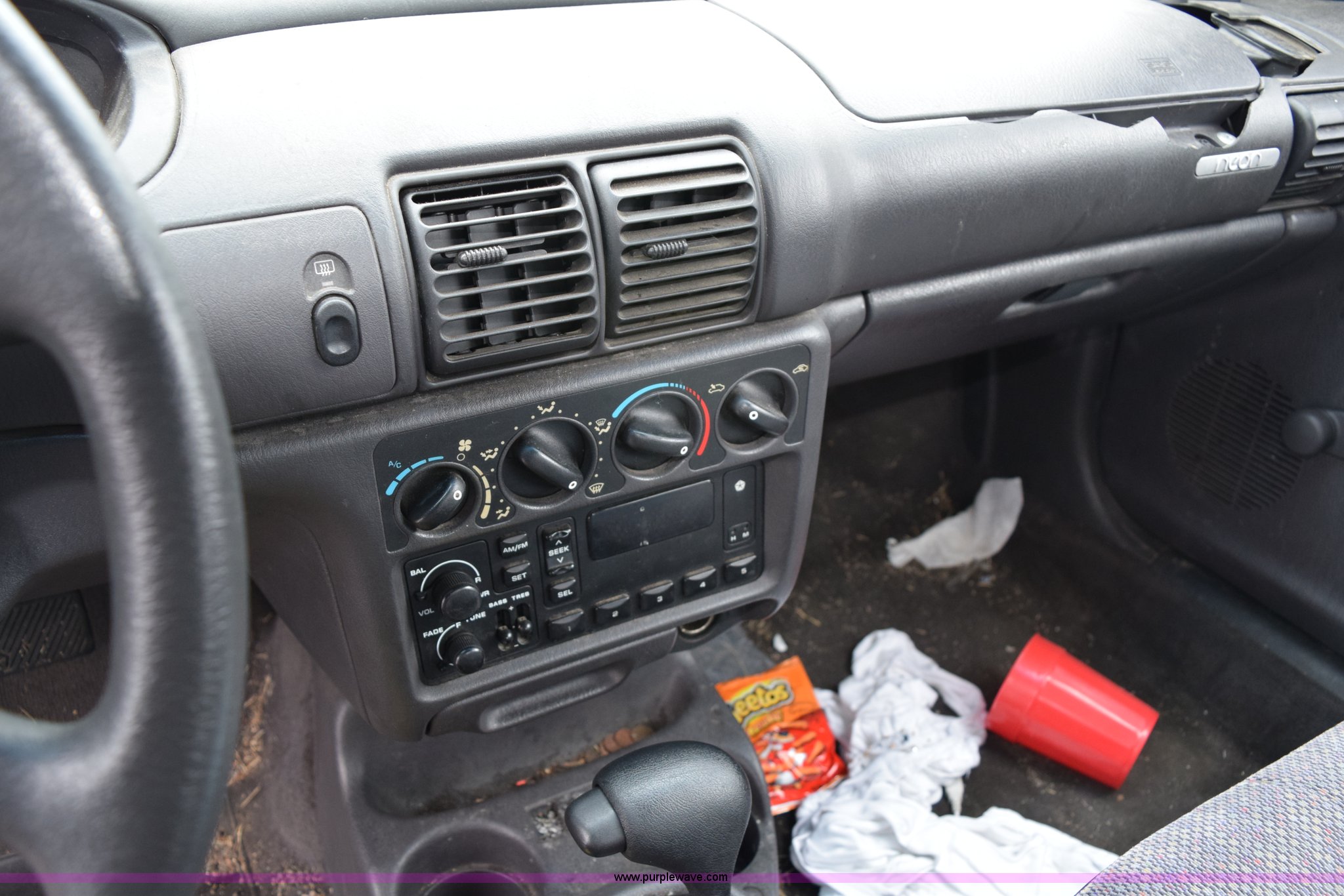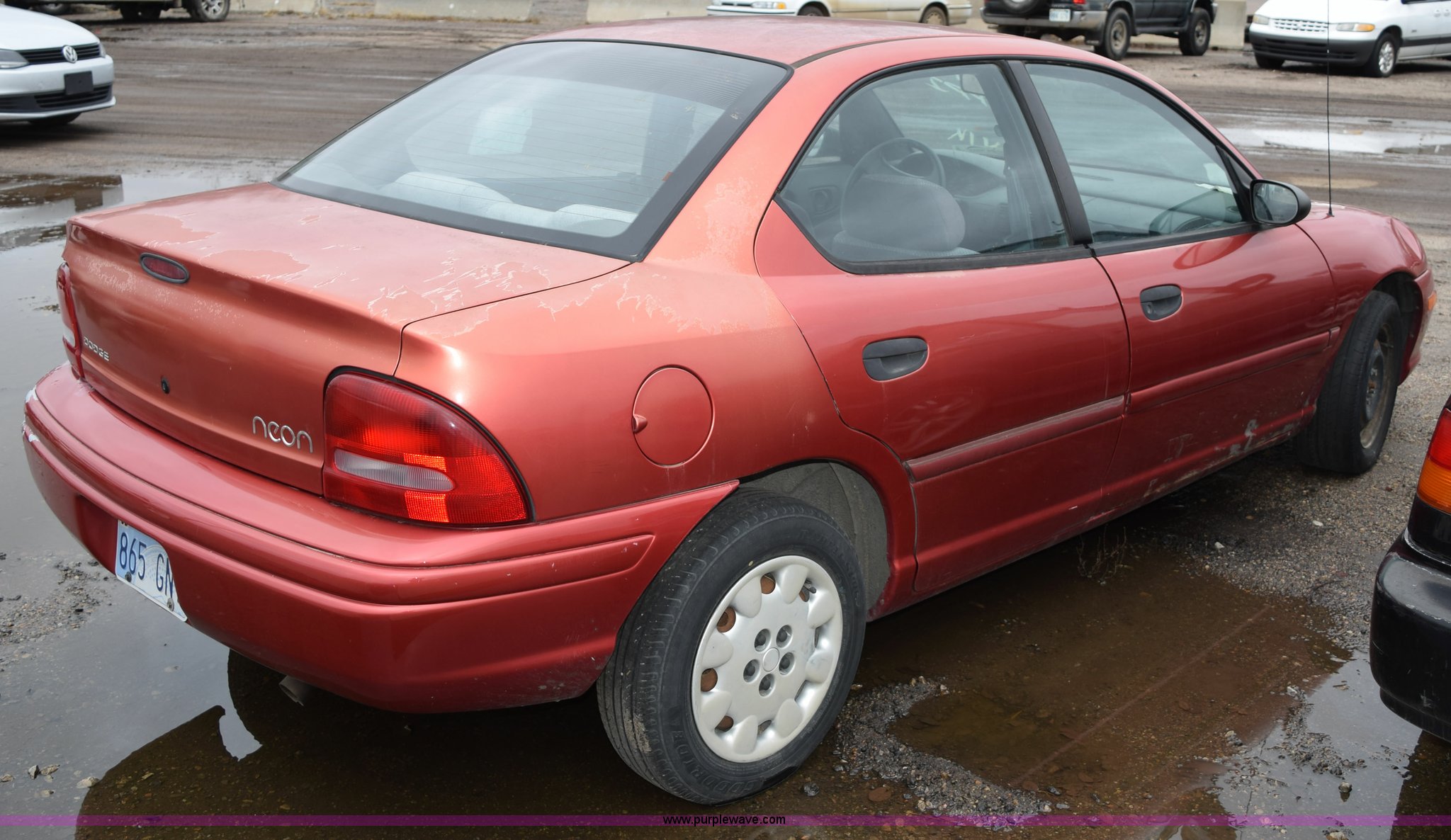 Purple Wave is selling a used Wrecked and Abandoned in Kansas. This item is a 1998 Dodge Neon Highline with the following: 189,231 miles on odometer, 2.0L L4 SOHC 16V gas engine, Automatic transmission, Heat, Cruise, AM/FM, Manual windows and locks, Cloth interior, 175/70R14 tires, Interior/exterior cosmetic damage, Paint peeling, Dents, Portion of passenger side door panel missing, Case# 14C58843