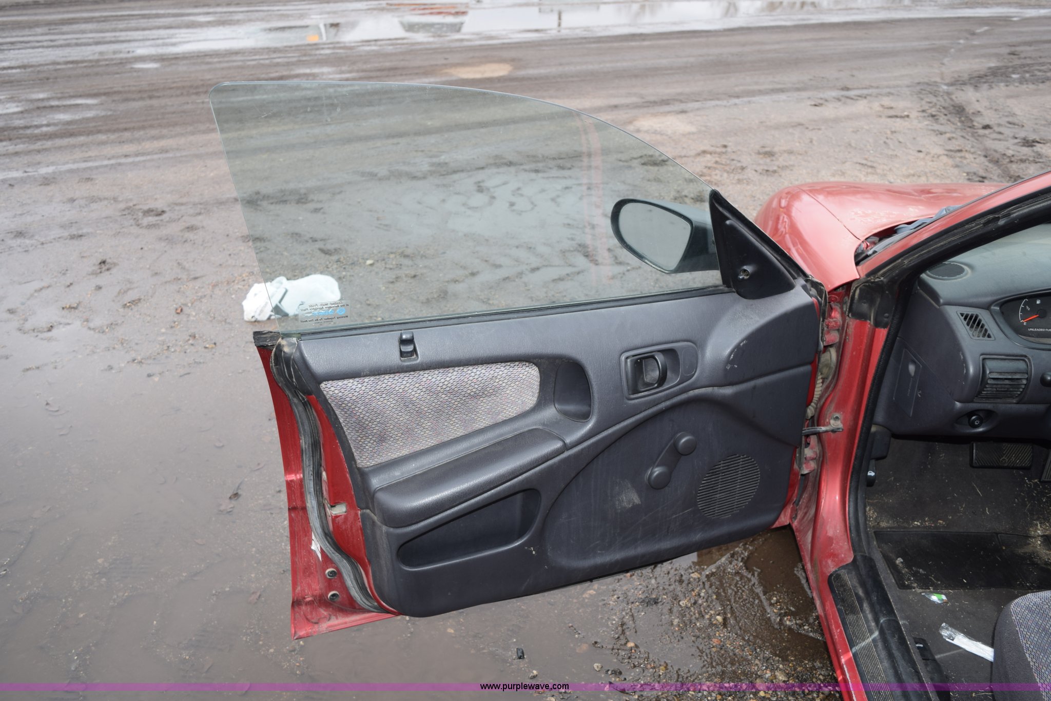 - Portion of passenger side door panel missing