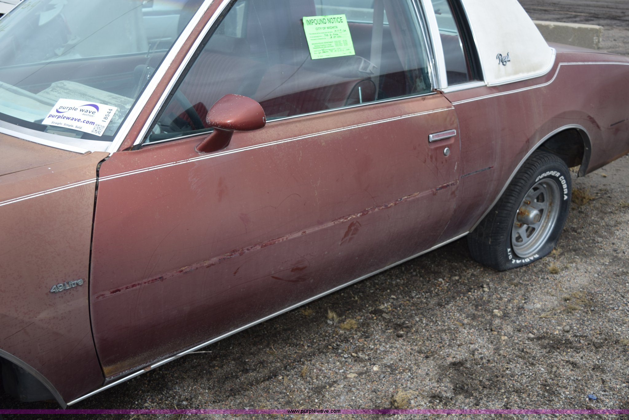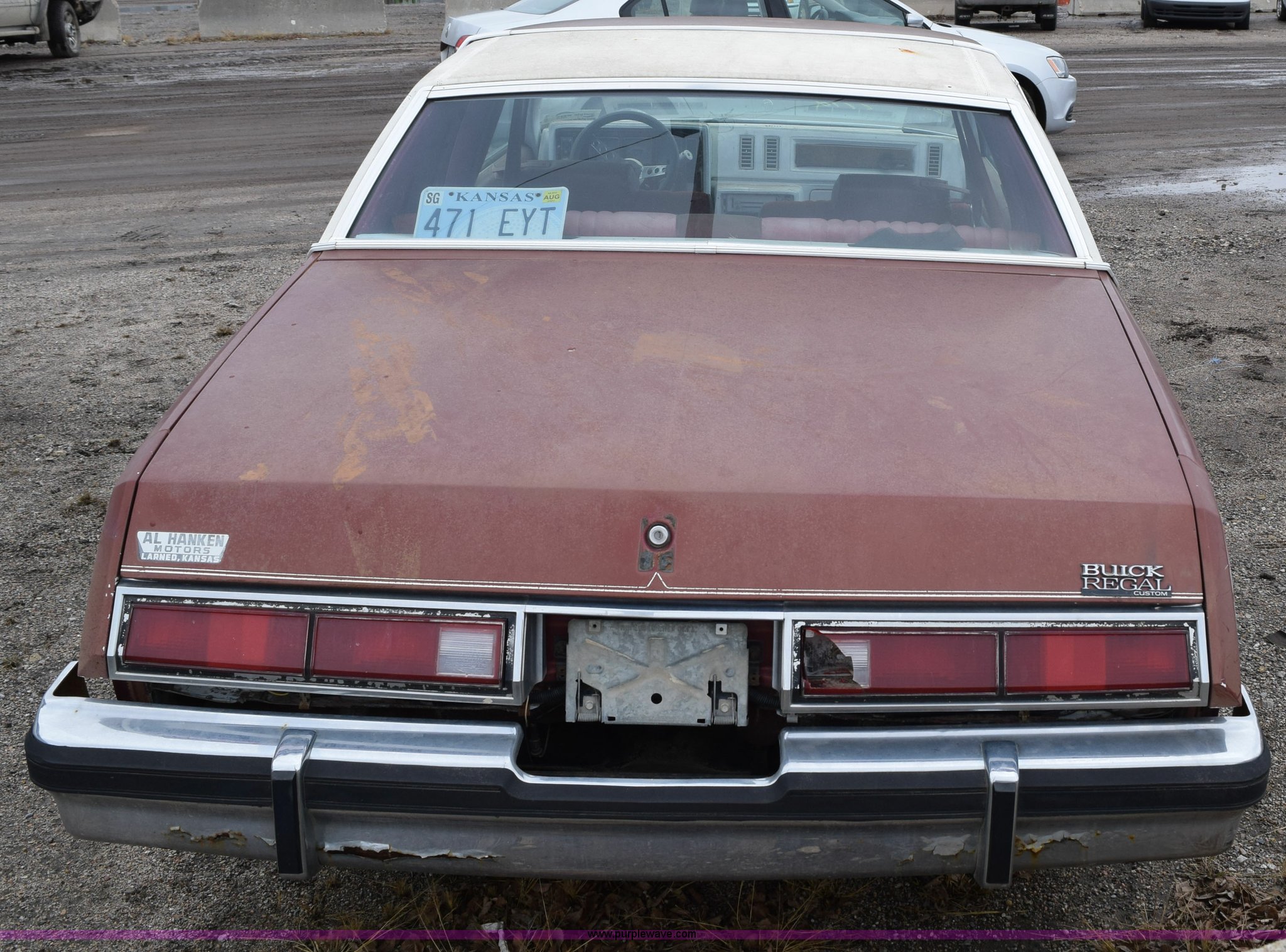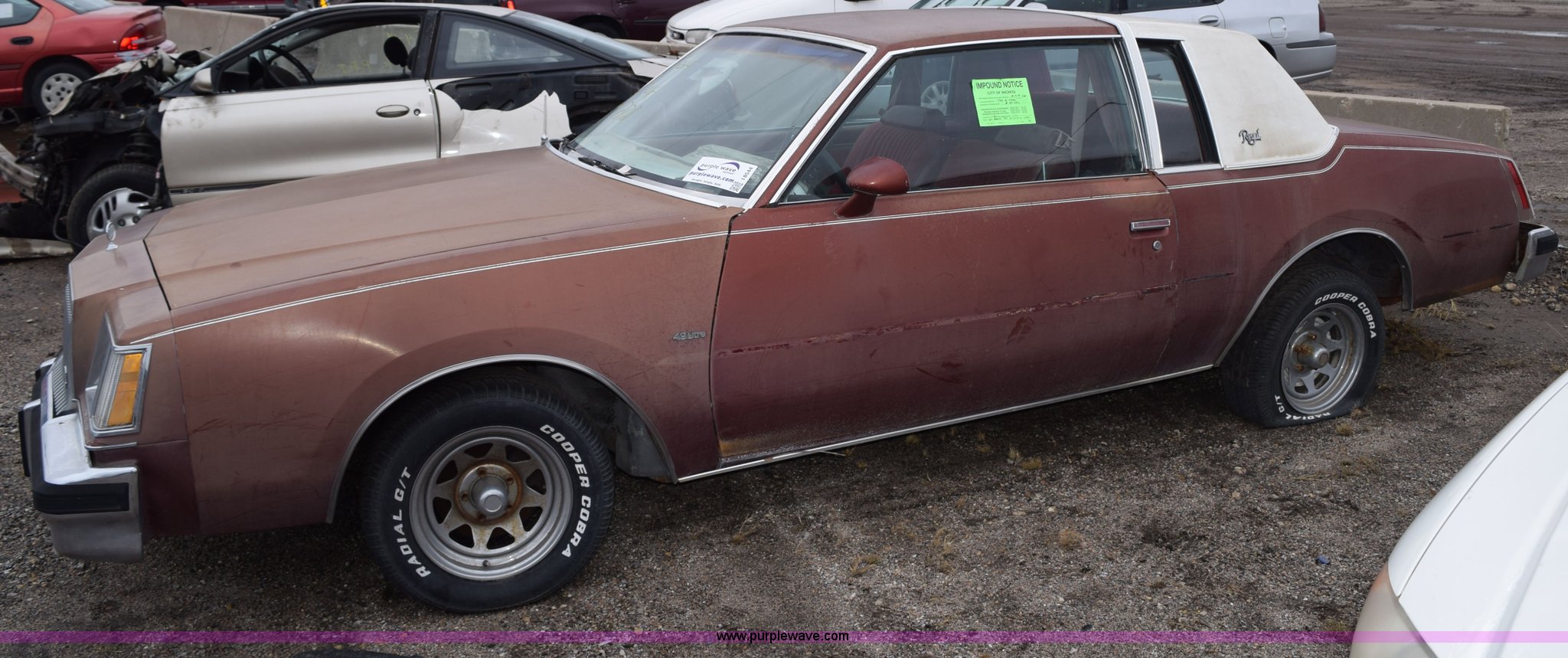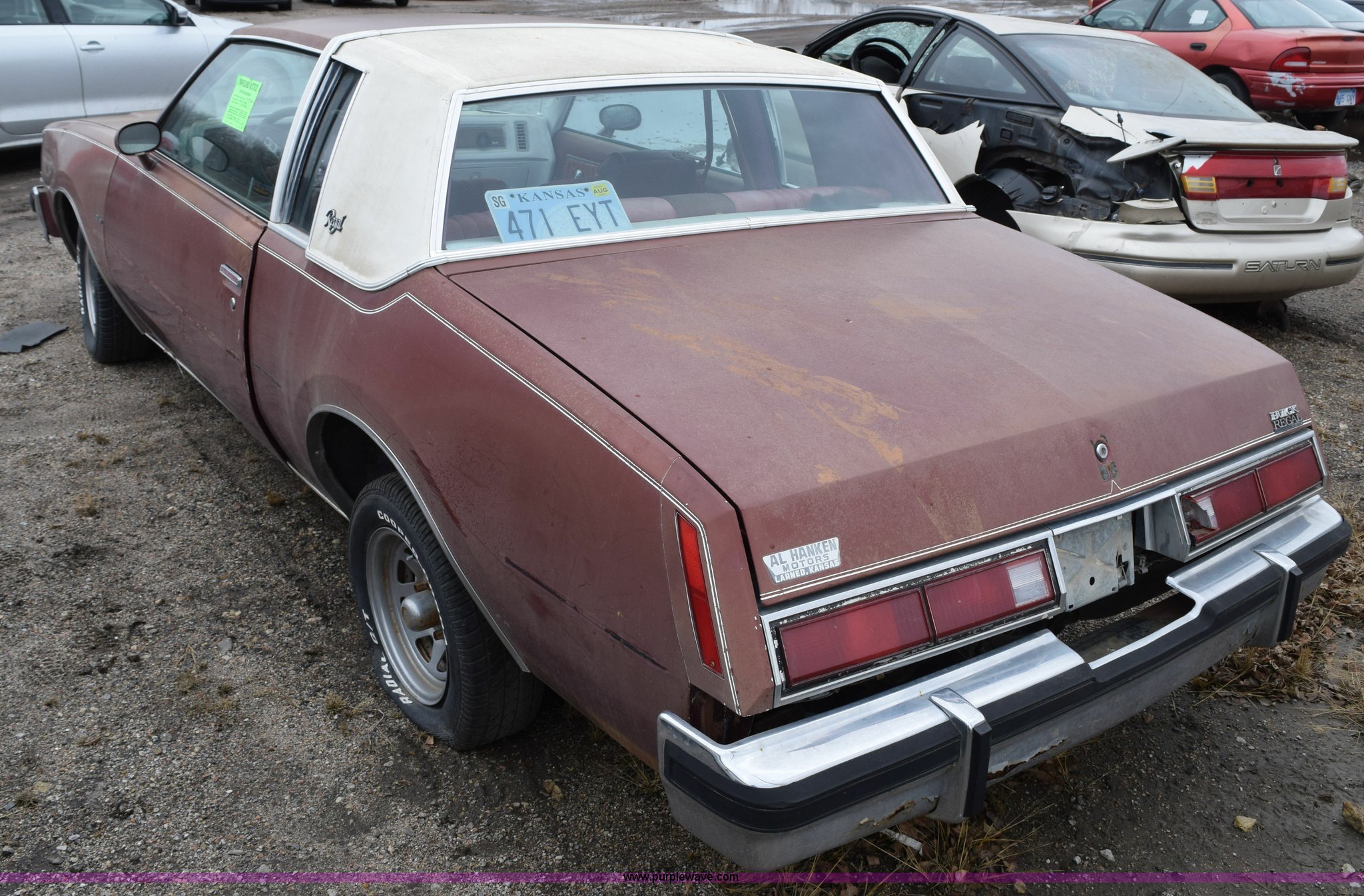 1979 Buick Regal. 44,627 miles on odometer Actual mileage unknown, V8 gas engine, Automatic transmission, Manual windows and locks, Cloth interior, 205/75R14 front tires, 215/60R14 rear tires, Interior/exterior cosmetic damage, Paint faded and peeling, Seats torn, Seats stained, (2) tires flat, Rear bumper damage, Contents included, Case# 14C070341. Vehicle is abandoned. Condition and history are unknown. No additional information is available. Vehicle does not have keys unless notated otherwise in the item listing.. View City Of Wichita Terms for title acquisition and item removal requirements.. 4J47Y9H100406. Ken's Auto Tow. 3730 S Broadway. Wichita, KS 67216