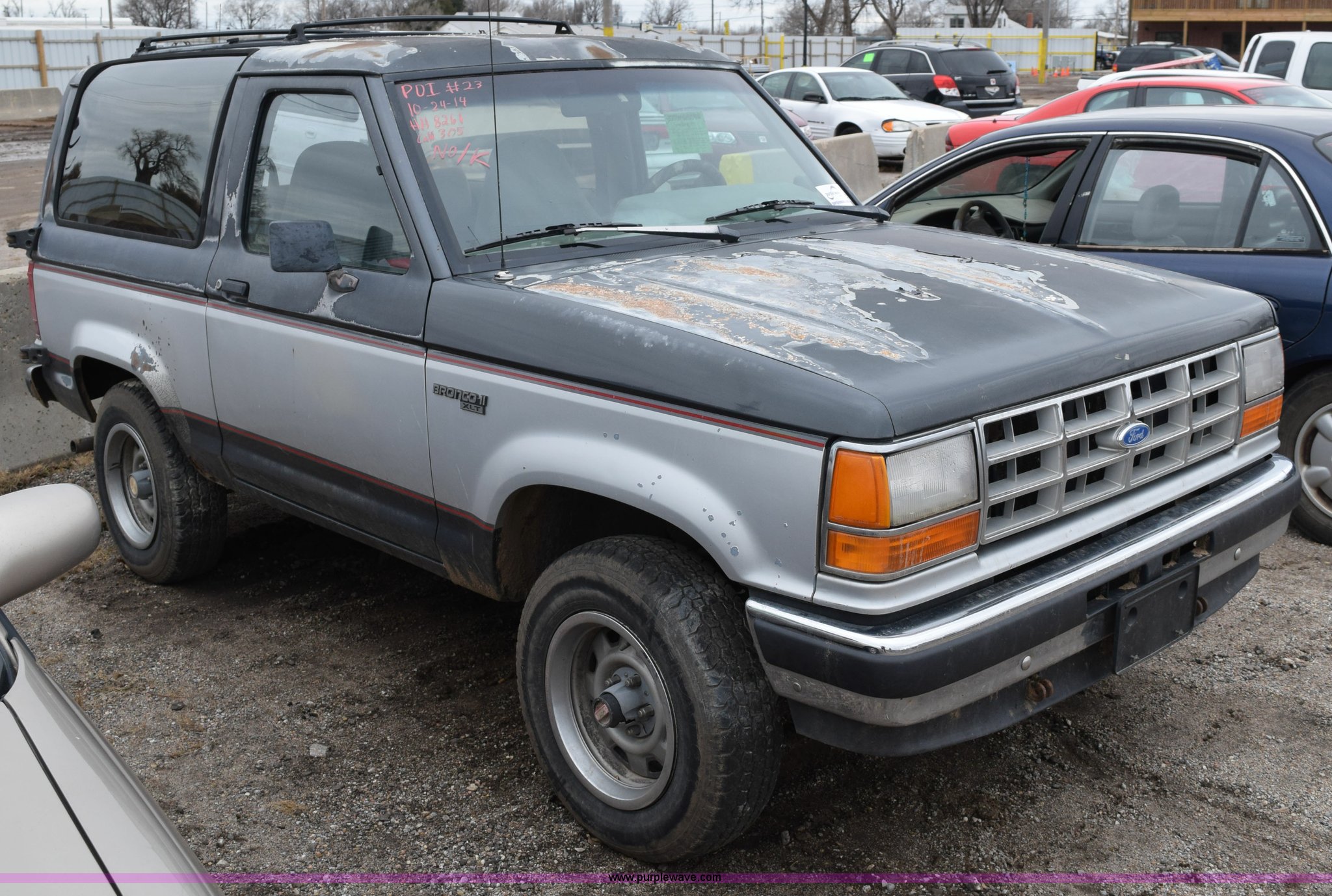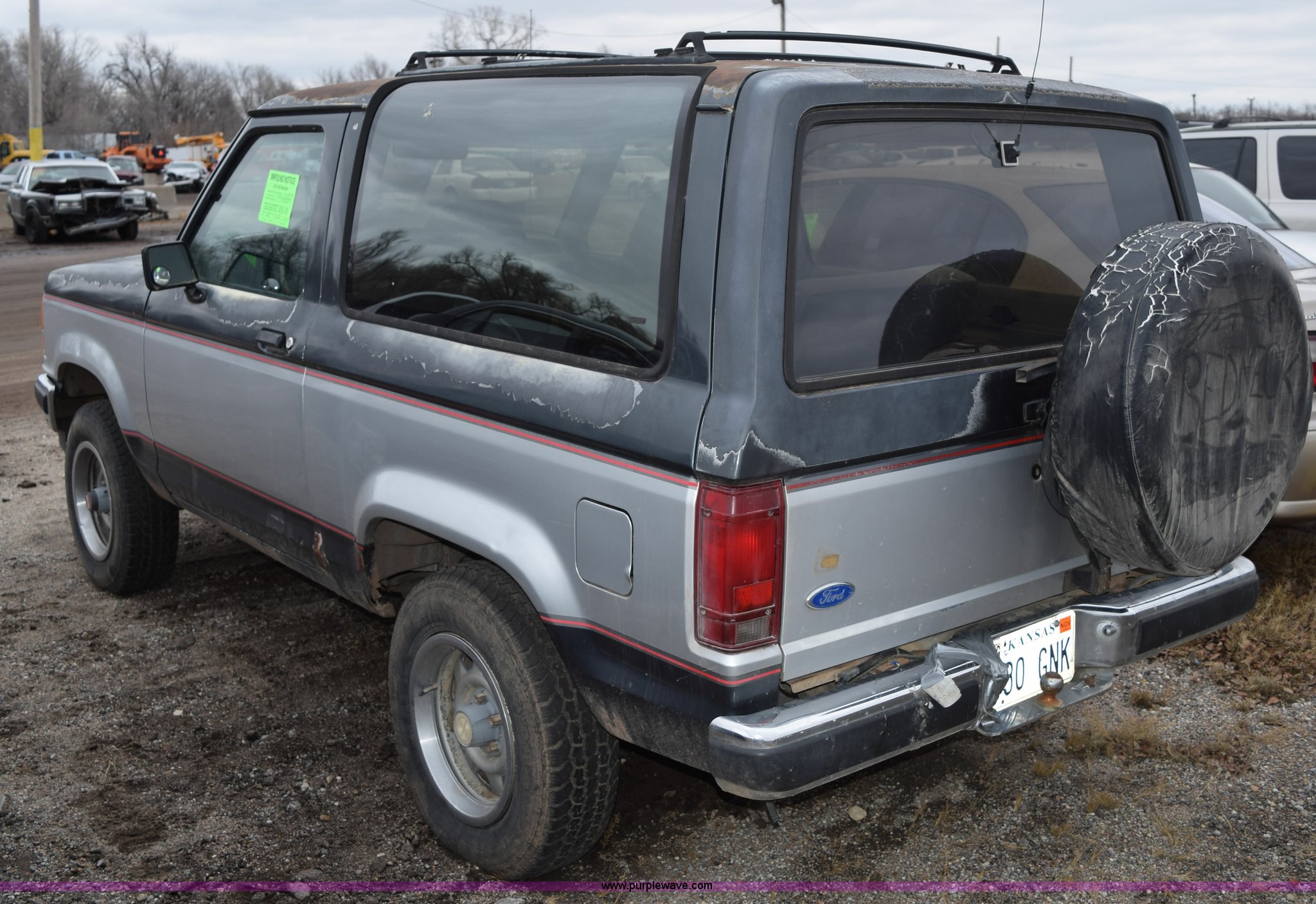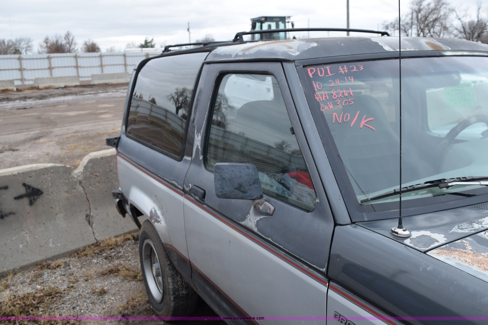 Purple Wave is selling a used Passenger Vehicle in Kansas. This item is a 1989 Ford Bronco II SUV with the following: Unknown miles on odometer, 2.9L V6 OHV 12V gas engine, Four speed manual transmission, Four wheel drive, Heat, Cruise, AM/FM/cassette, Power windows and locks, Cloth interior, 205/75R15 tires, Interior/exterior cosmetic damage, Paint peeling, Rust, Contents included, Case# 14C071507