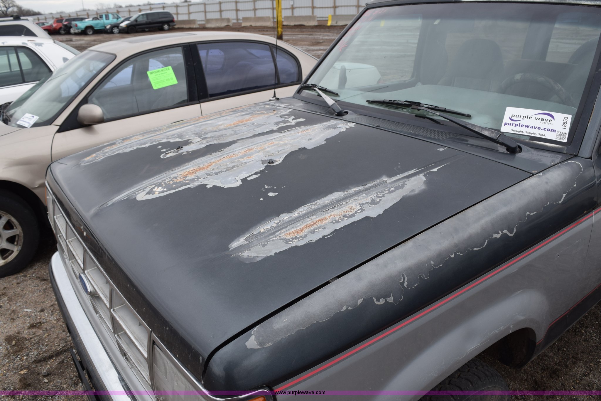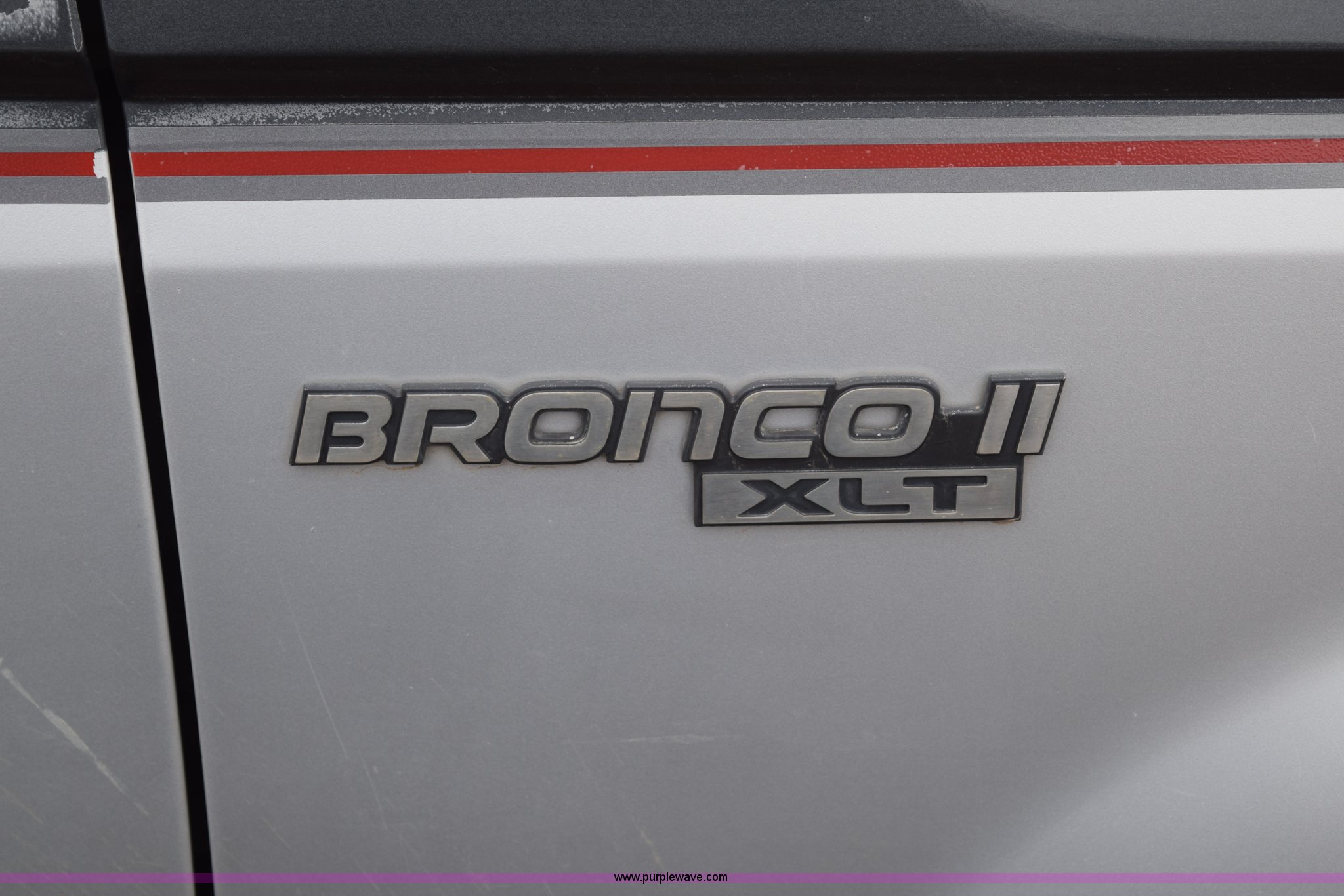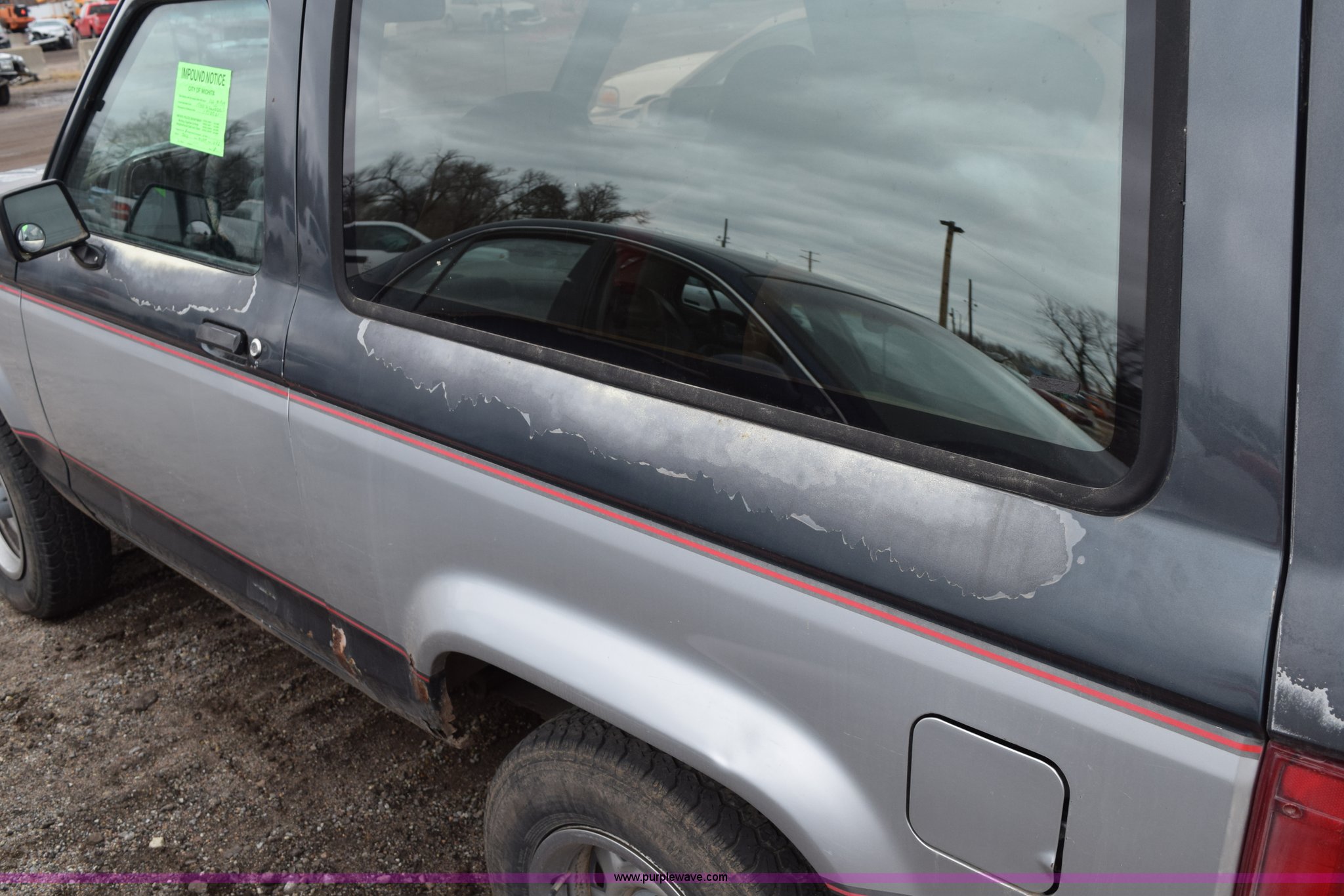 Purple Wave is selling a used Passenger Vehicle in Kansas. This item is a 1989 Ford Bronco II SUV with the following: Unknown miles on odometer, 2.9L V6 OHV 12V gas engine, Four speed manual transmission, Four wheel drive, Heat, Cruise, AM/FM/cassette, Power windows and locks, Cloth interior, 205/75R15 tires, Interior/exterior cosmetic damage, Paint peeling, Rust, Contents included, Case# 14C071507