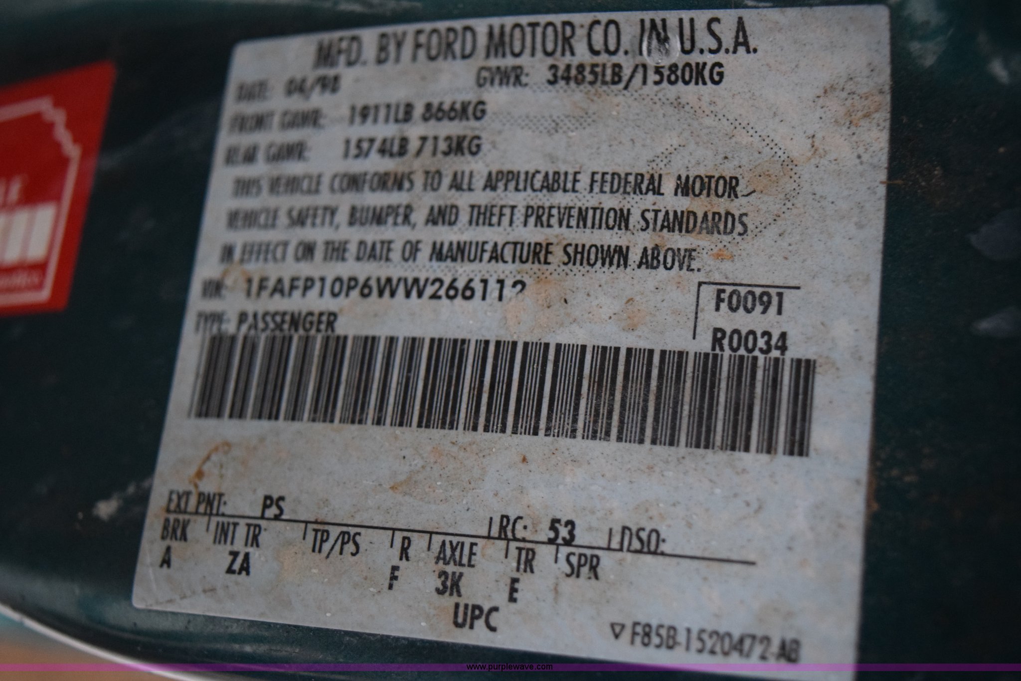 1998 Ford Escort LX. 165,987 miles on odometer, 2.0L L4 SOHC 8V gas engine, Automatic transmission, Heat, AM/FM/cassette, Manual windows and locks, Cloth interior, 185/65R14 tires, Interior/exterior cosmetic damage, Dents, Collision damage, Airbags deployed, Contents included, Case# 14C72028. Rebuilt Salvage title. Vehicle is abandoned. Condition and history are unknown. No additional information is available. Vehicle does not have keys unless notated otherwise in the item listing.. View City Of Wichita Terms for title acquisition and item removal requirements.. 1FAFP10P6WW266112. Arrow Wrecker. 531 E MacArthur. Wichita, KS 67216