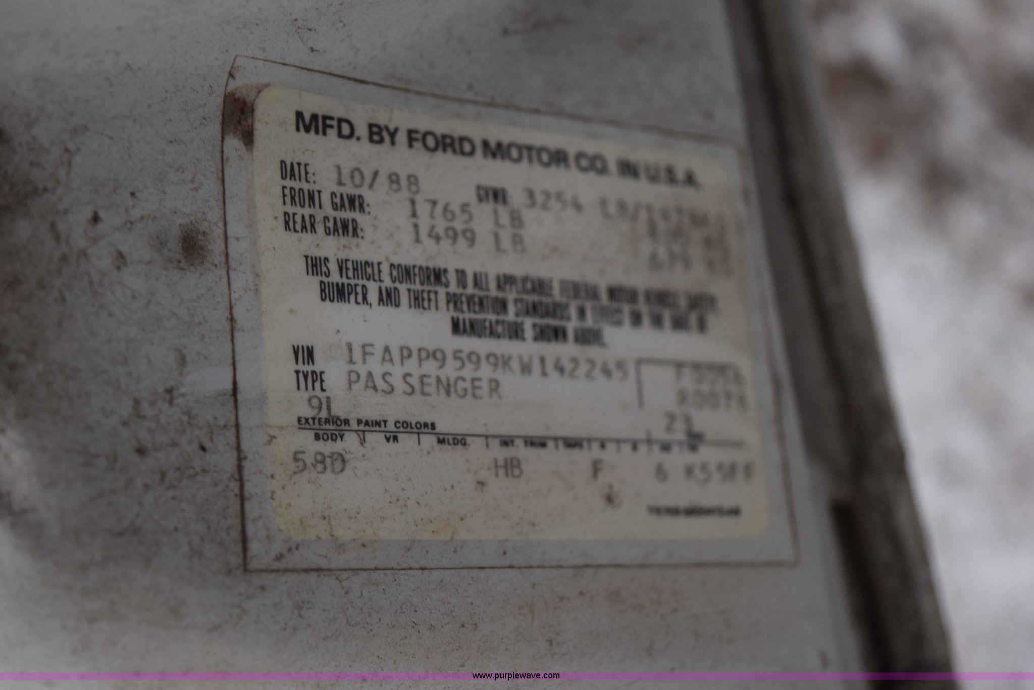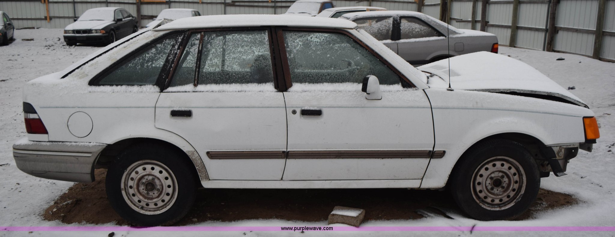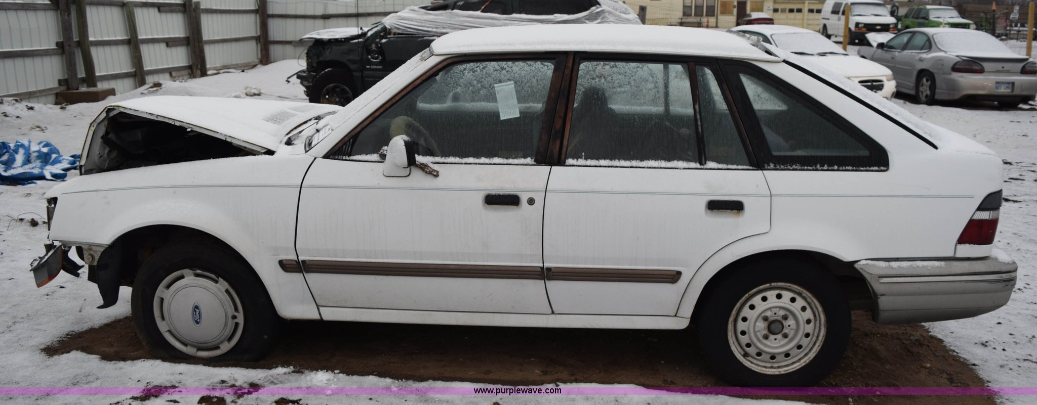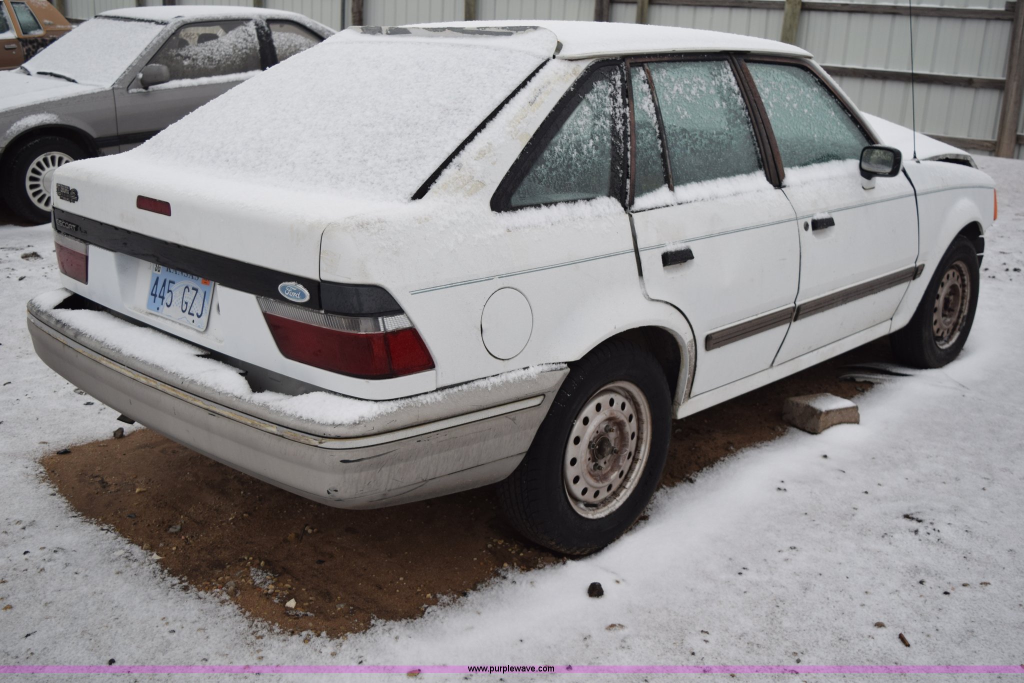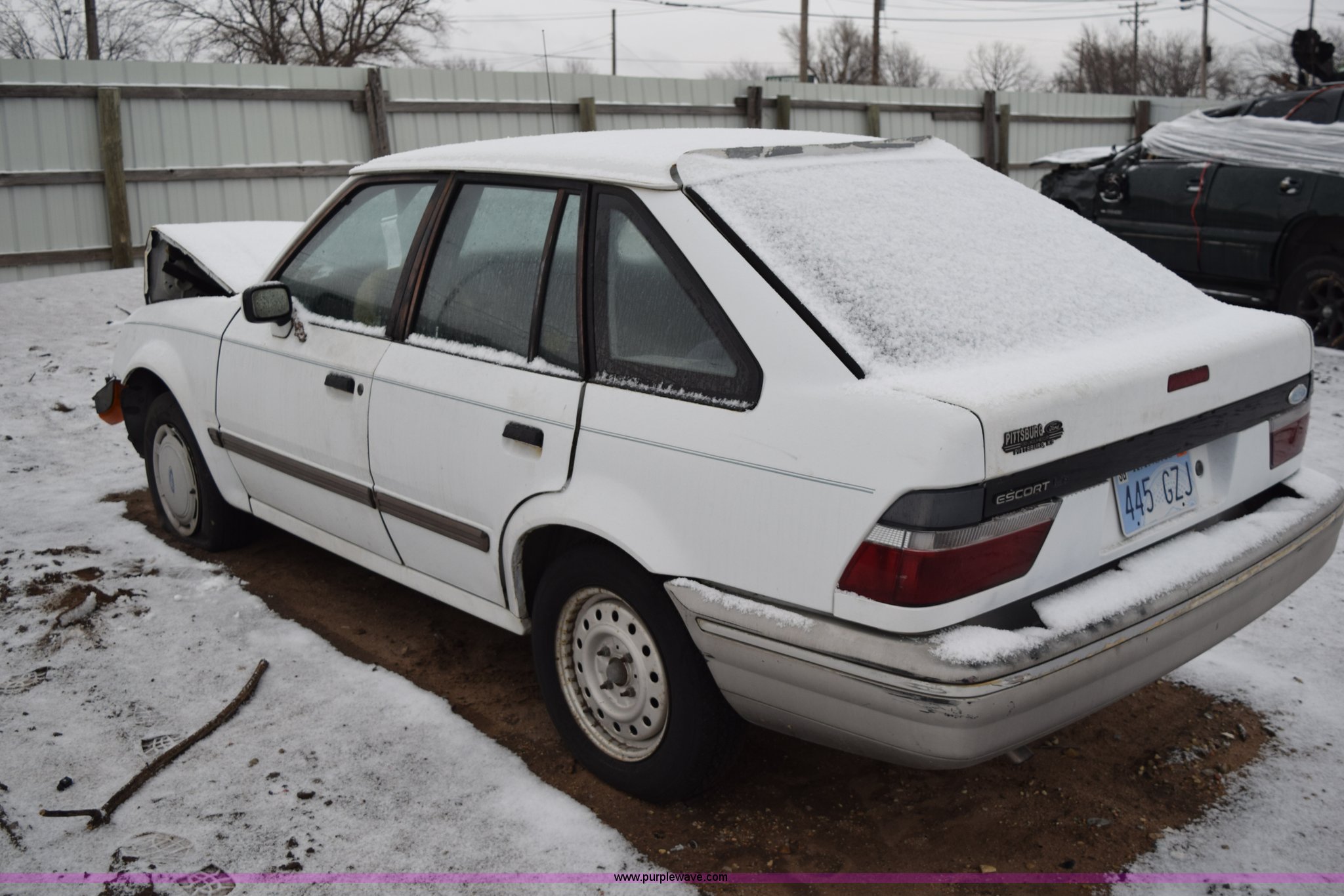 Purple Wave is selling a used Wrecked and Abandoned in Kansas. This item is a 1989 Ford Escort LX with the following: 71,893 miles on odometer, 1.9L L4 SOHC 8V gas engine, Automatic transmission, Heat, Tilt, AM/FM, Manual windows and locks, Cloth interior, Keys, 185/70R14 tires, Interior/exterior cosmetic damage, Front end collision damage, Dash cracked, Windshield cracked, Rear hatch bent, Headliner falling down, Case# 14C70059