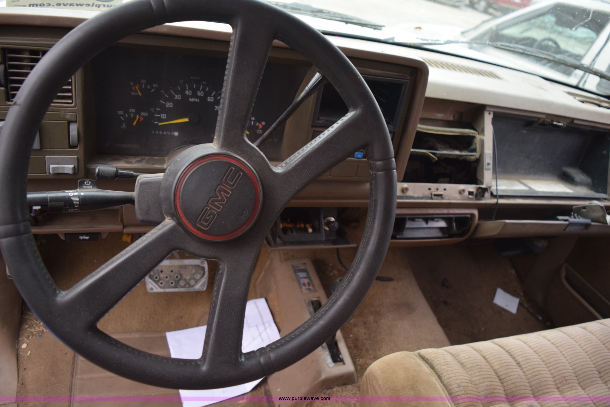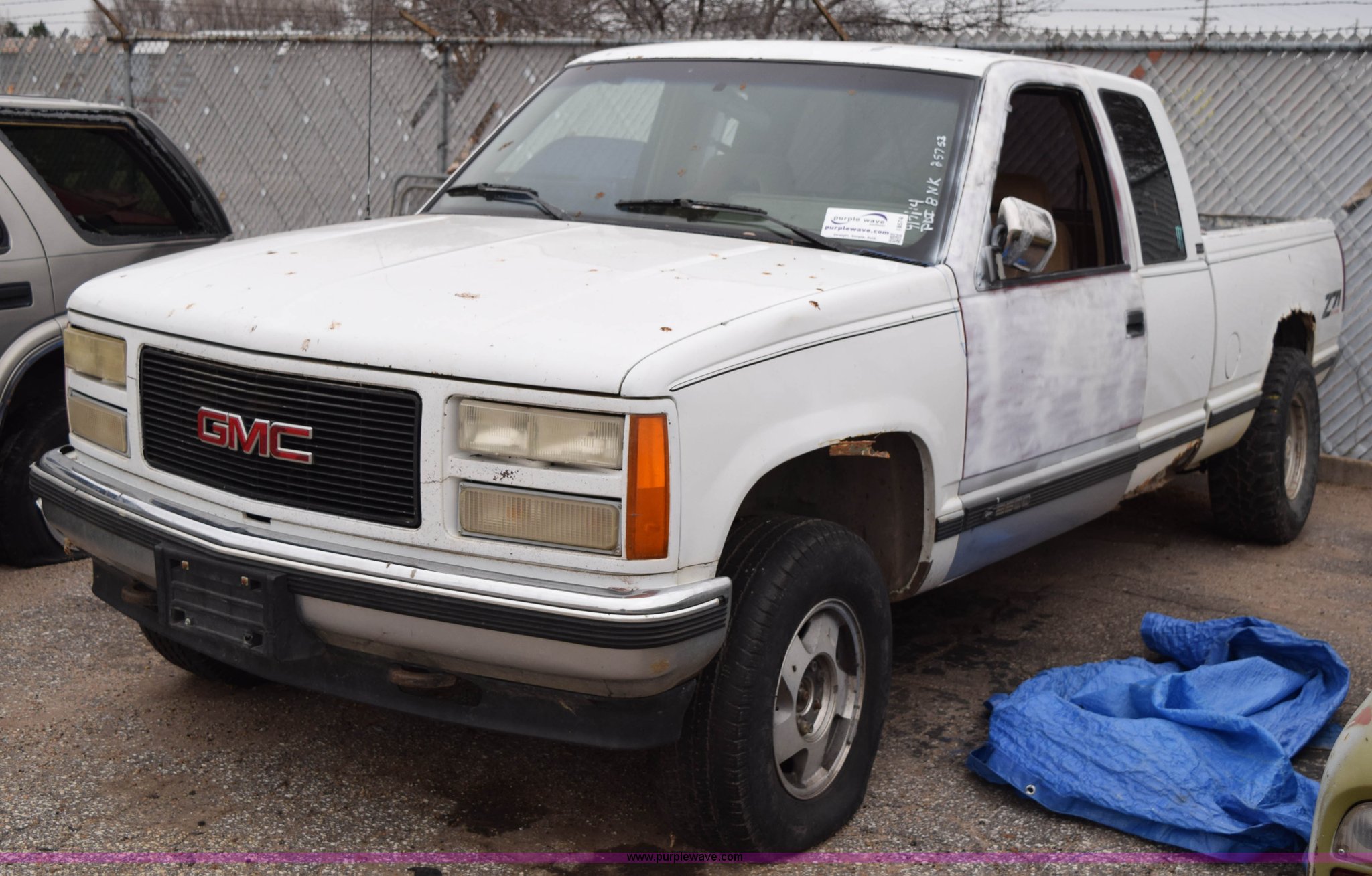 Purple Wave is selling a used Wrecked and Abandoned in Kansas. This item is a 1992 GMC Sierra 1500 pickup truck with the following: 135,452 miles on odometer, 5.7L V8 OHV 16V gas engine, Automatic transmission, Four wheel drive, Heat, Power windows and locks, Receiver hitch, 32 x 11.50R15 tires, Interior/exterior cosmetic damage, Rust, Paint peeling, Seats torn, Windows down, Mirrors cracked, Steering column broken, Radio missing, Headliner missing, Contents included, Case# 14C059569