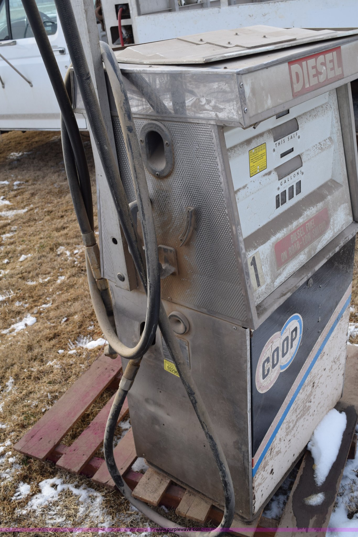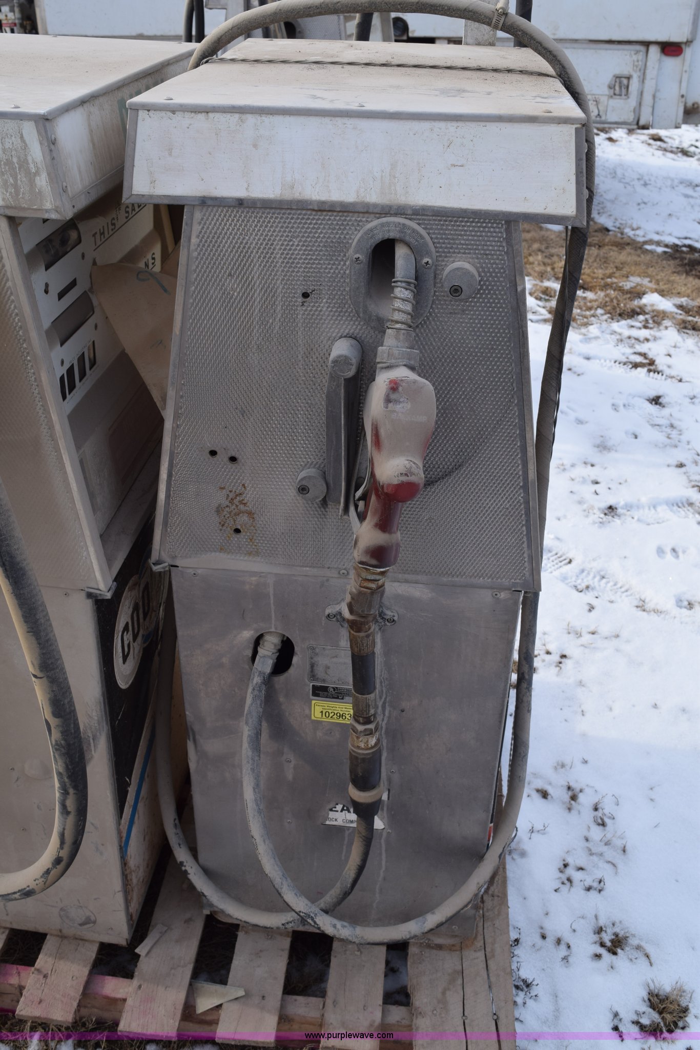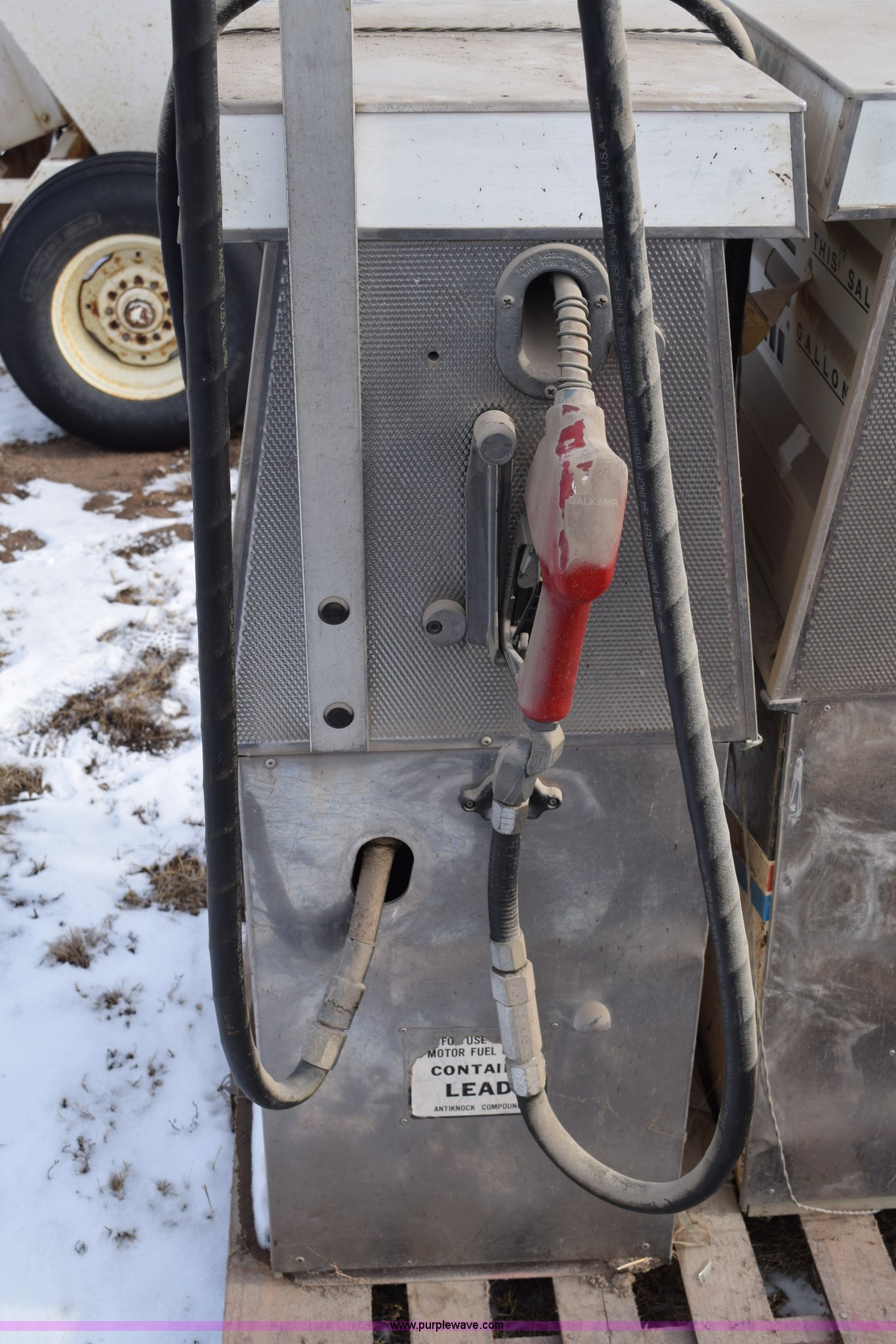 (3) gas pumps. 25"W x 50"H, Face has been removed on one side of one pump, One pump has two nozzles, One pump has one nozzles, One pump has no nozzles. Central Prairie Coop. 100 S Pioneer St. Alden, KS 67512