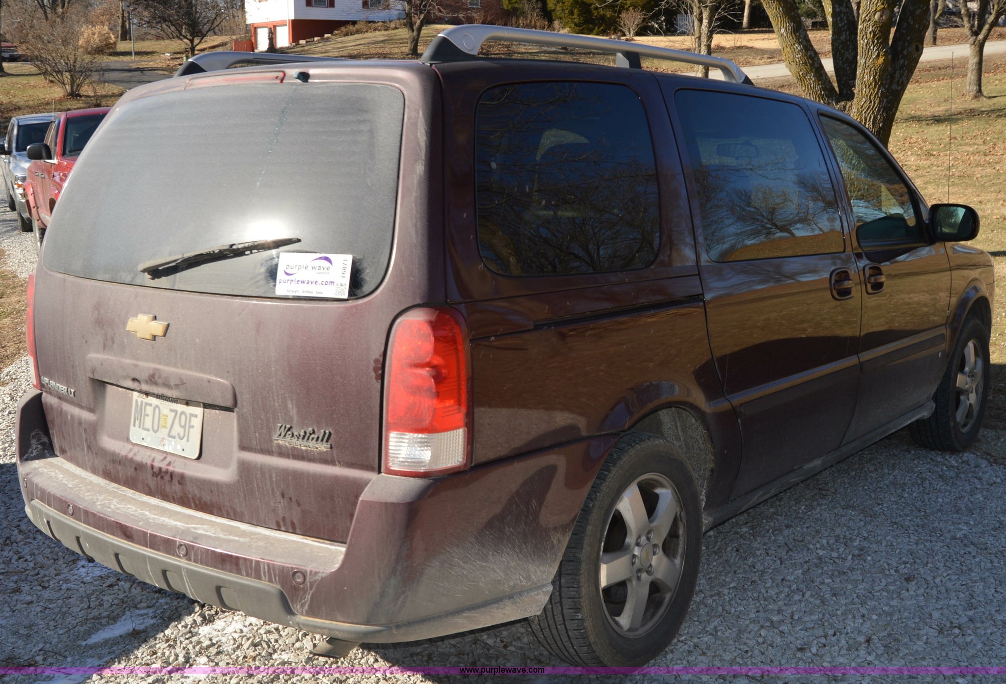 Purple Wave is selling a used Passenger Vehicle in Missouri. This item is a 2007 Chevrolet Uplander LT Extended van with the following: 183,435 miles on odometer, 3.9L V6 DOHC 24V gas engine, Automatic transmission, AC and heat, Tilt, Cruise, AM/FM/CD, Power windows, locks, and mirrors, Heated seats, Leather interior, Rear stow and go storage, 225/60R17 tires, Interior/exterior cosmetic damage