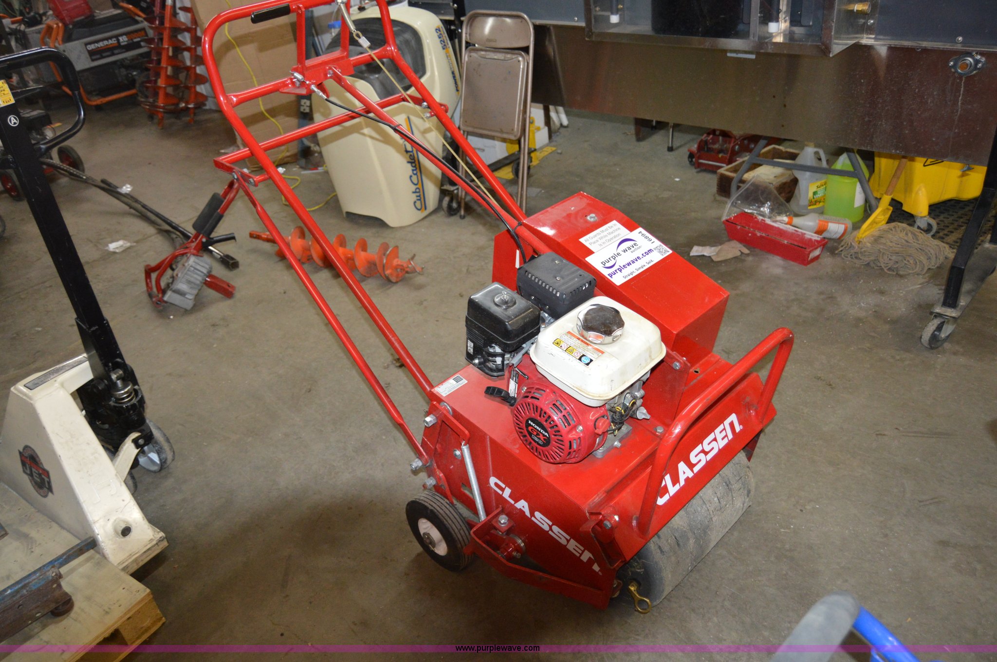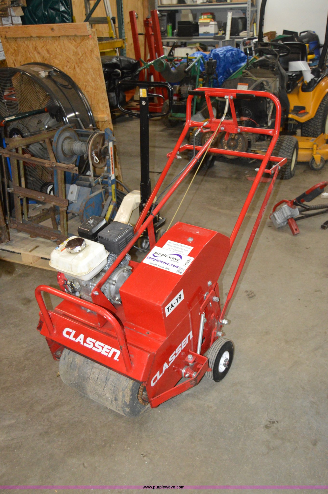 Purple Wave is selling a used Lawn and Garden in Missouri. This item is a Classen TA-19D turf aerator with the following: Honda GX120 gas engine, 16"W, Serial 001365