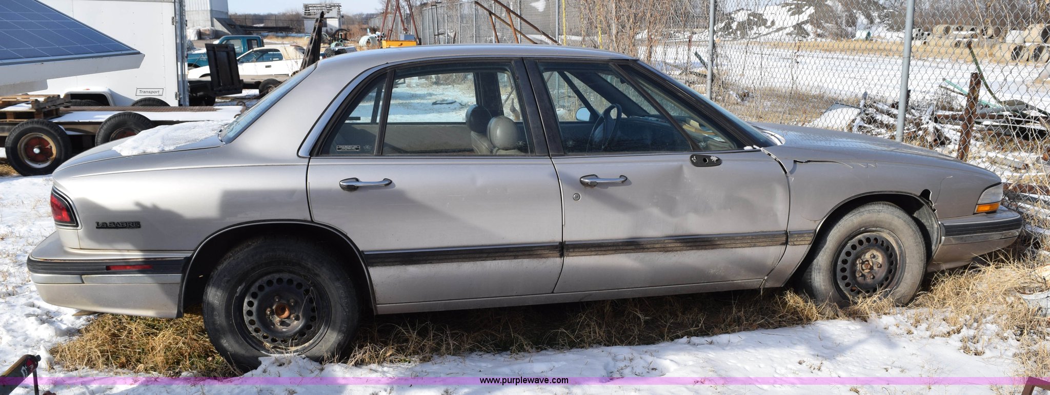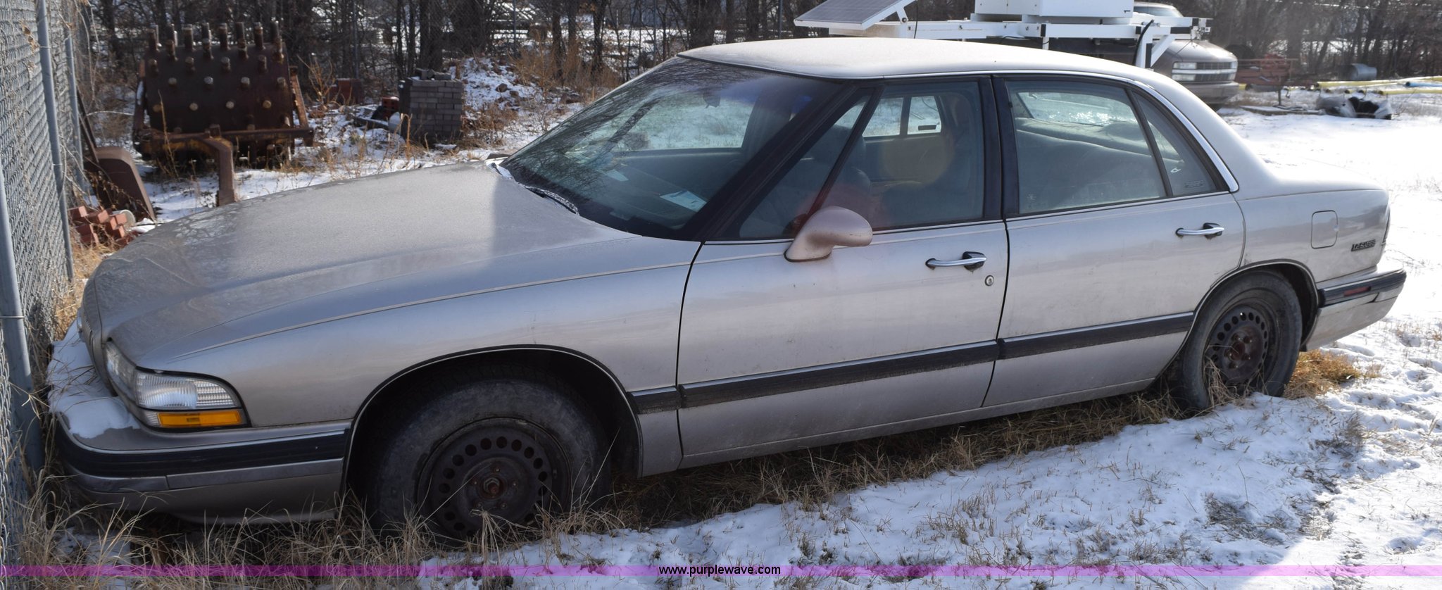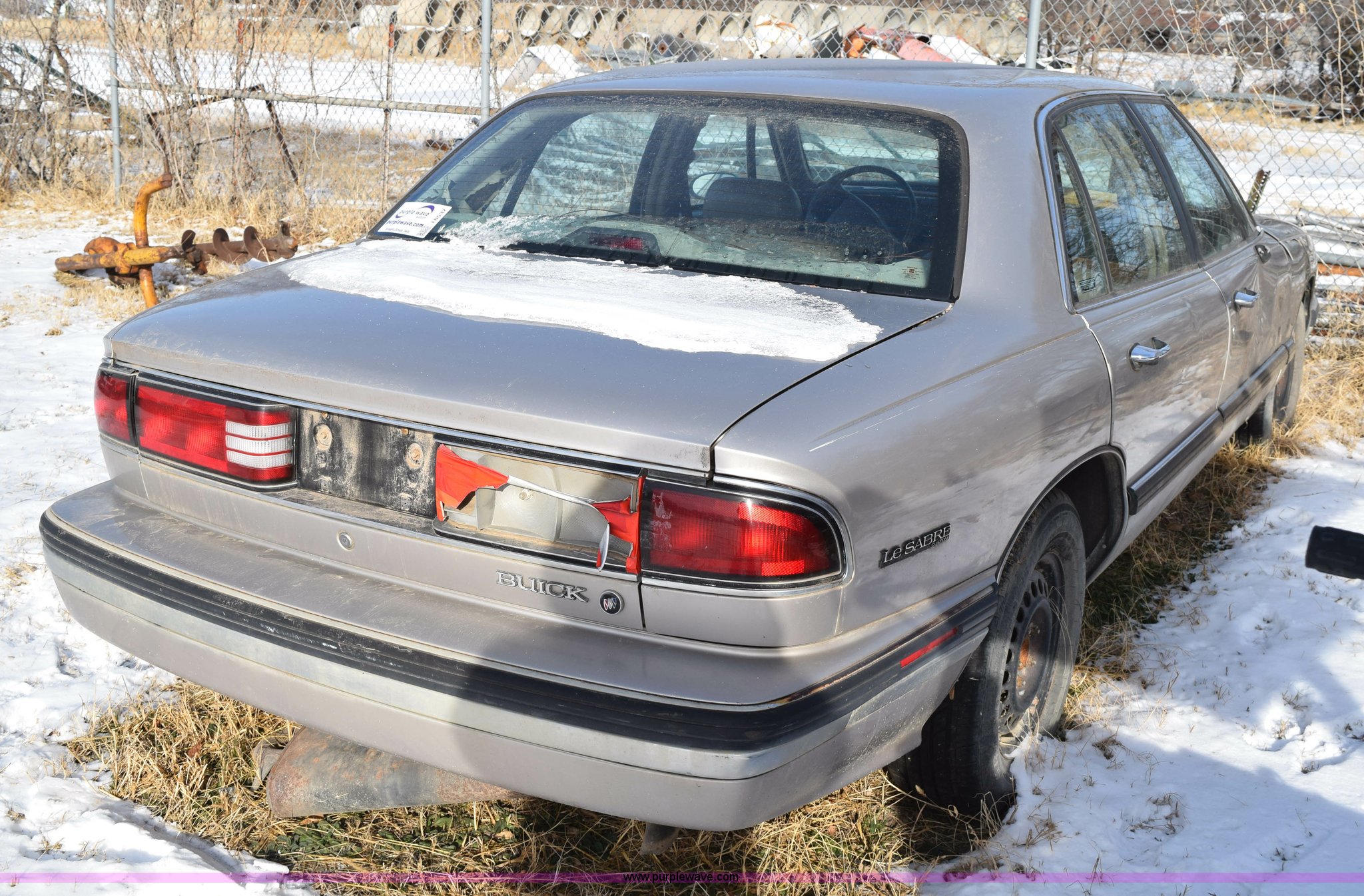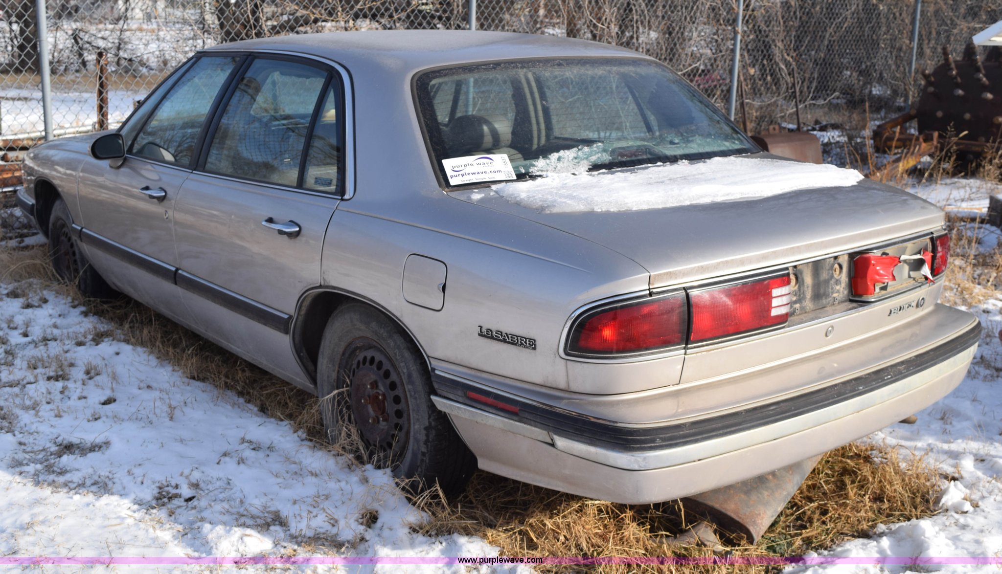 Purple Wave is selling a used Passenger Vehicle in Kansas. This item is a 1996 Buick LeSabre Custom with the following: 144,396 miles on odometer, 3.8L V6 OHV 12V gas engine, Automatic transmission, AC and heat, Tilt, Cruise, AM/FM/cassette, Power windows, locks, and mirrors, Leather interior, 215/70R15 tires, Interior/exterior cosmetic damage, Broken taillight, Dents, Cracked fender, Missing side mirror, Contents included