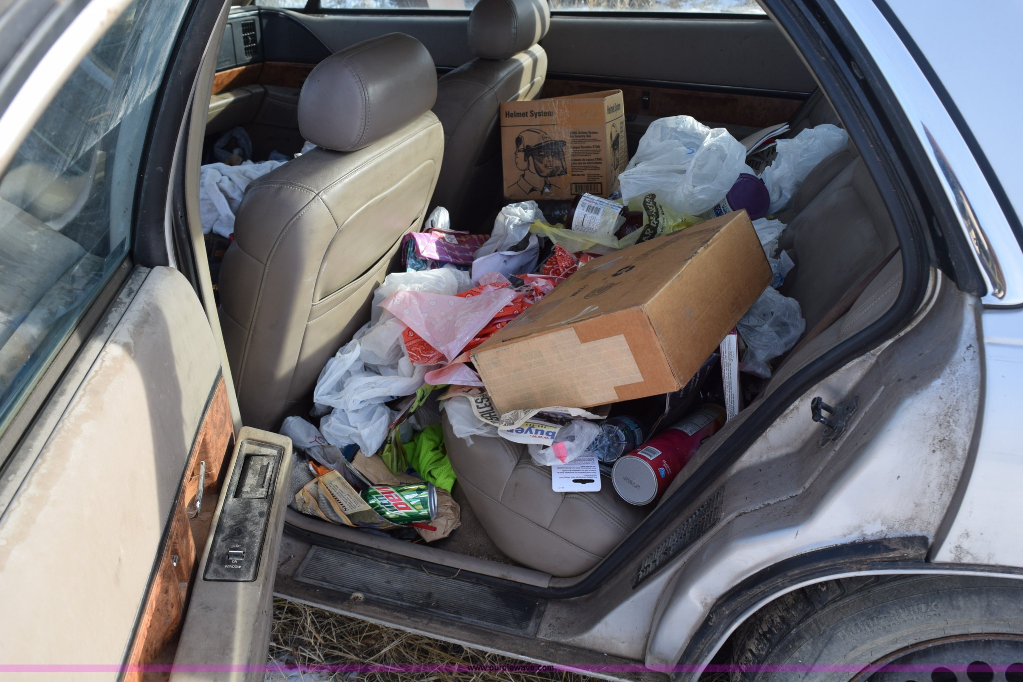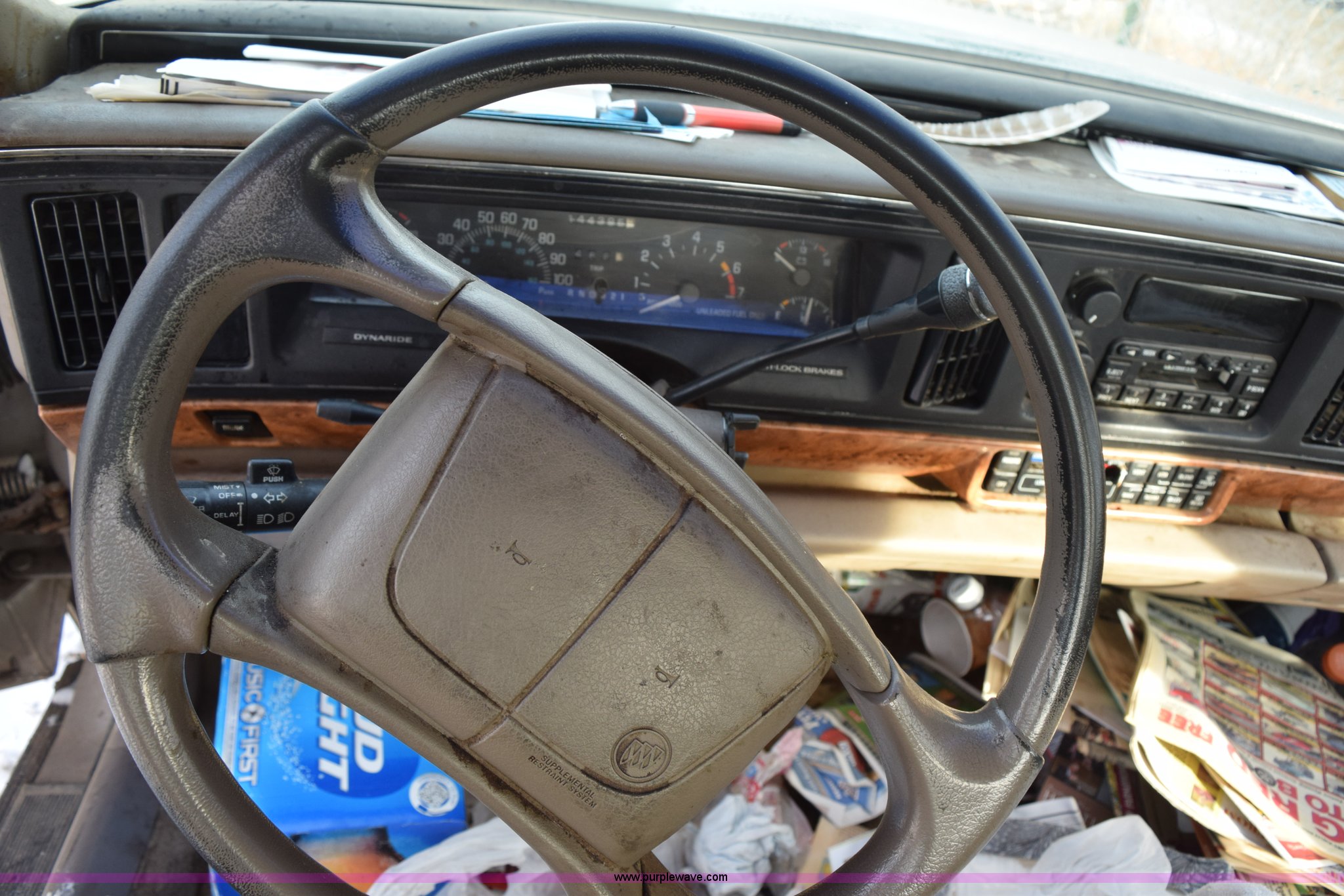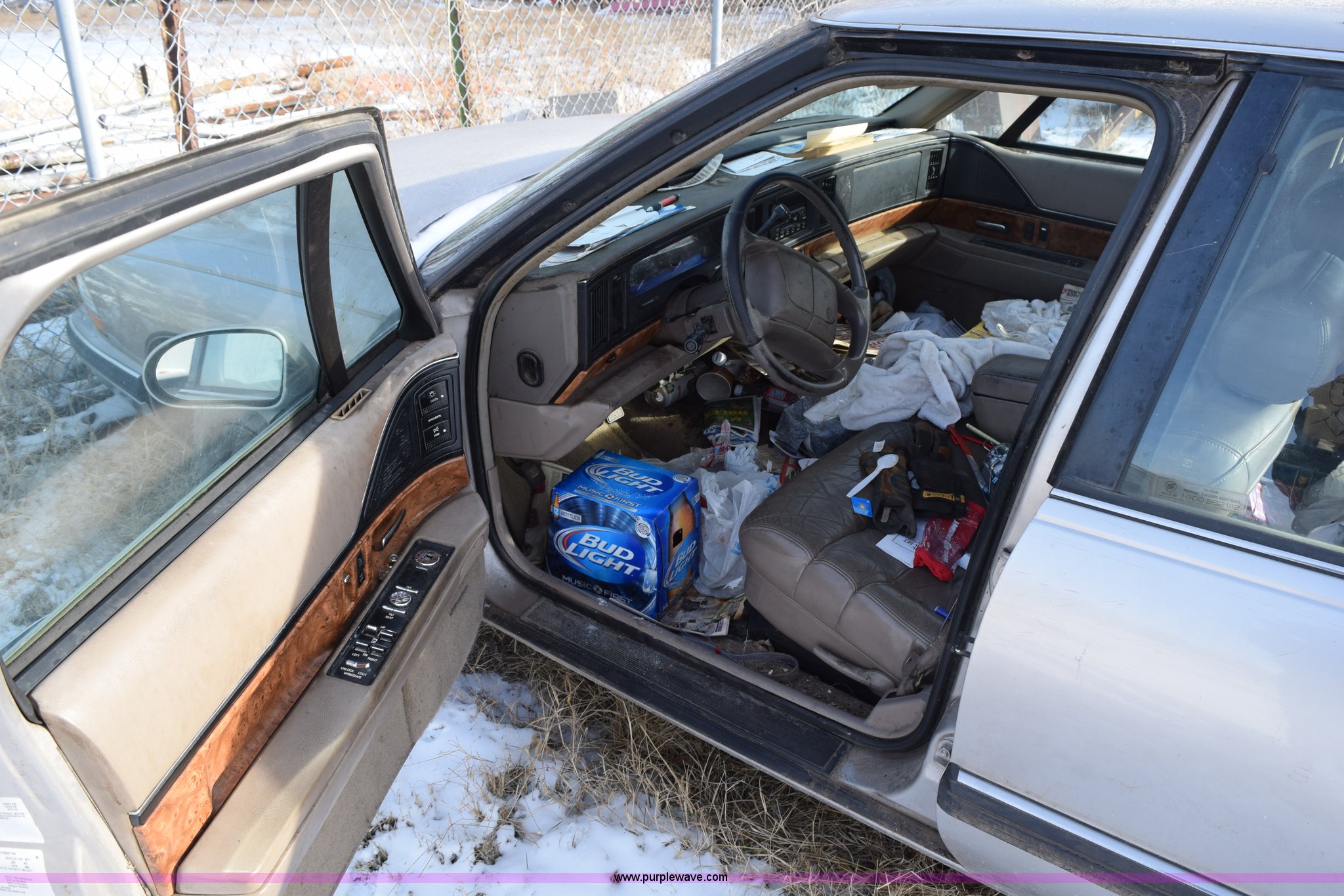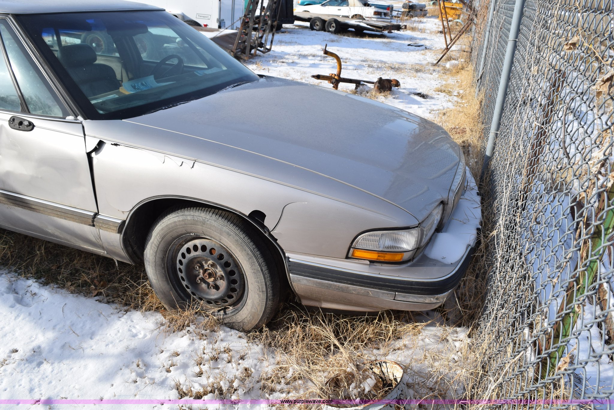 Purple Wave is selling a used Passenger Vehicle in Kansas. This item is a 1996 Buick LeSabre Custom with the following: 144,396 miles on odometer, 3.8L V6 OHV 12V gas engine, Automatic transmission, AC and heat, Tilt, Cruise, AM/FM/cassette, Power windows, locks, and mirrors, Leather interior, 215/70R15 tires, Interior/exterior cosmetic damage, Broken taillight, Dents, Cracked fender, Missing side mirror, Contents included