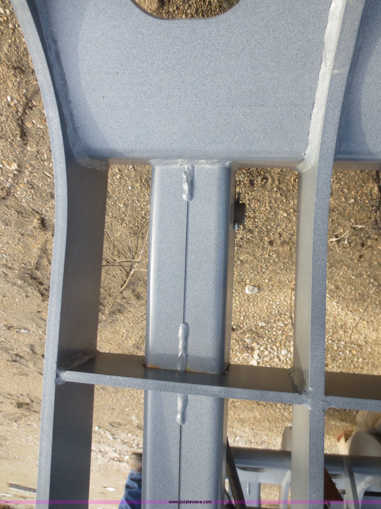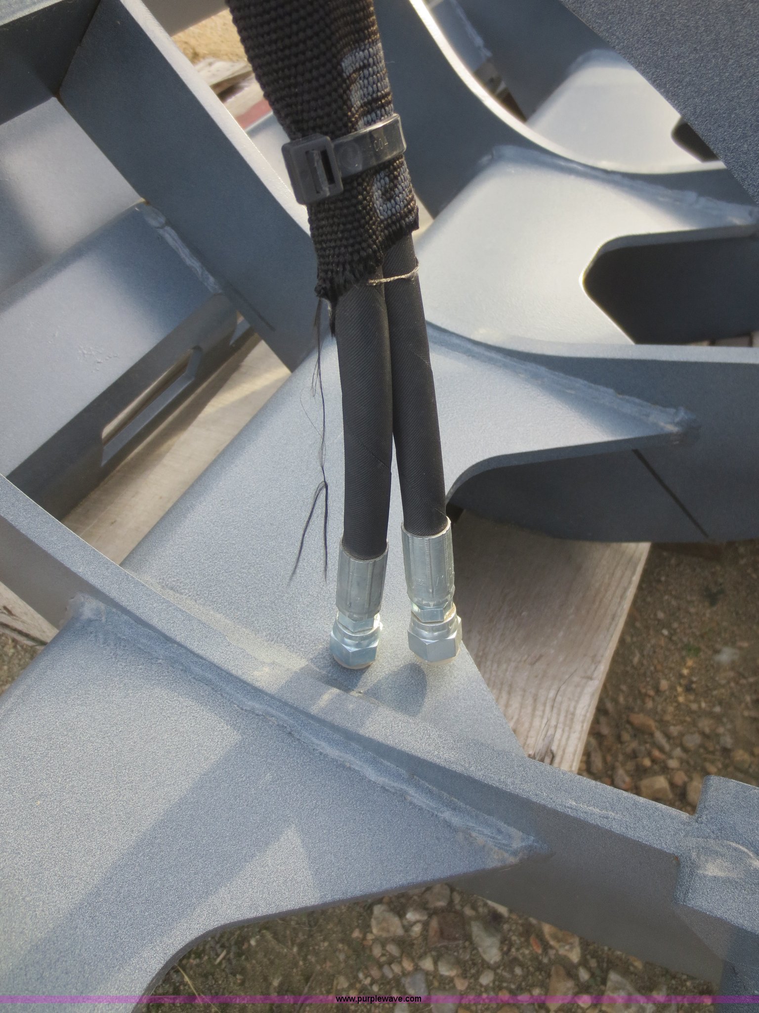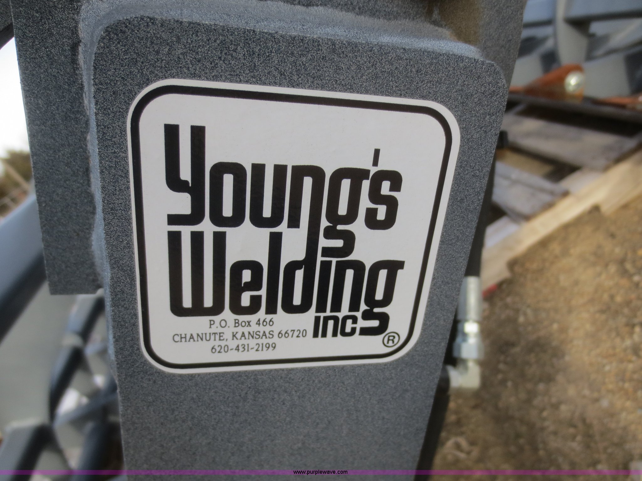 Purple Wave is selling a used Skid Steer Attach. in Kansas. This item is a Youngs Welding 84" root grapple with the following: Twin hydraulic cylinders, 10" stroke, 3,000 psi, 1/2" thick tines, Grade 50 steel construction, 9" tine spread, Bolt-on teeth, 55" opening, Horizontal pass through cross member, Powder coat, Hydraulic hoses, 8" dig ability