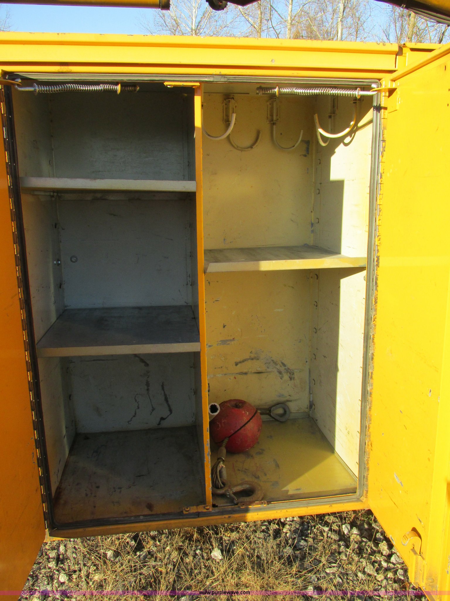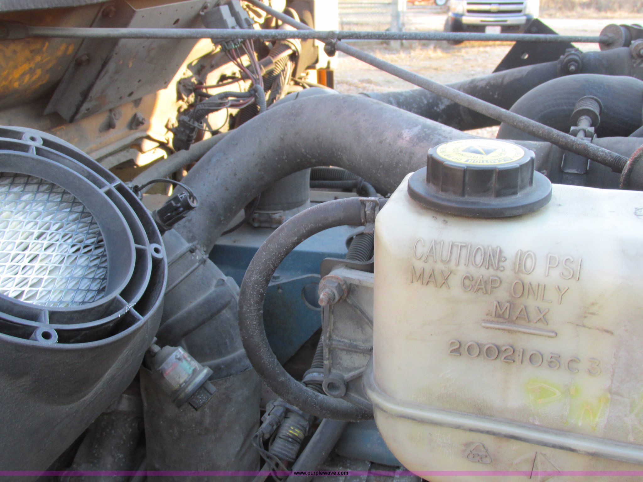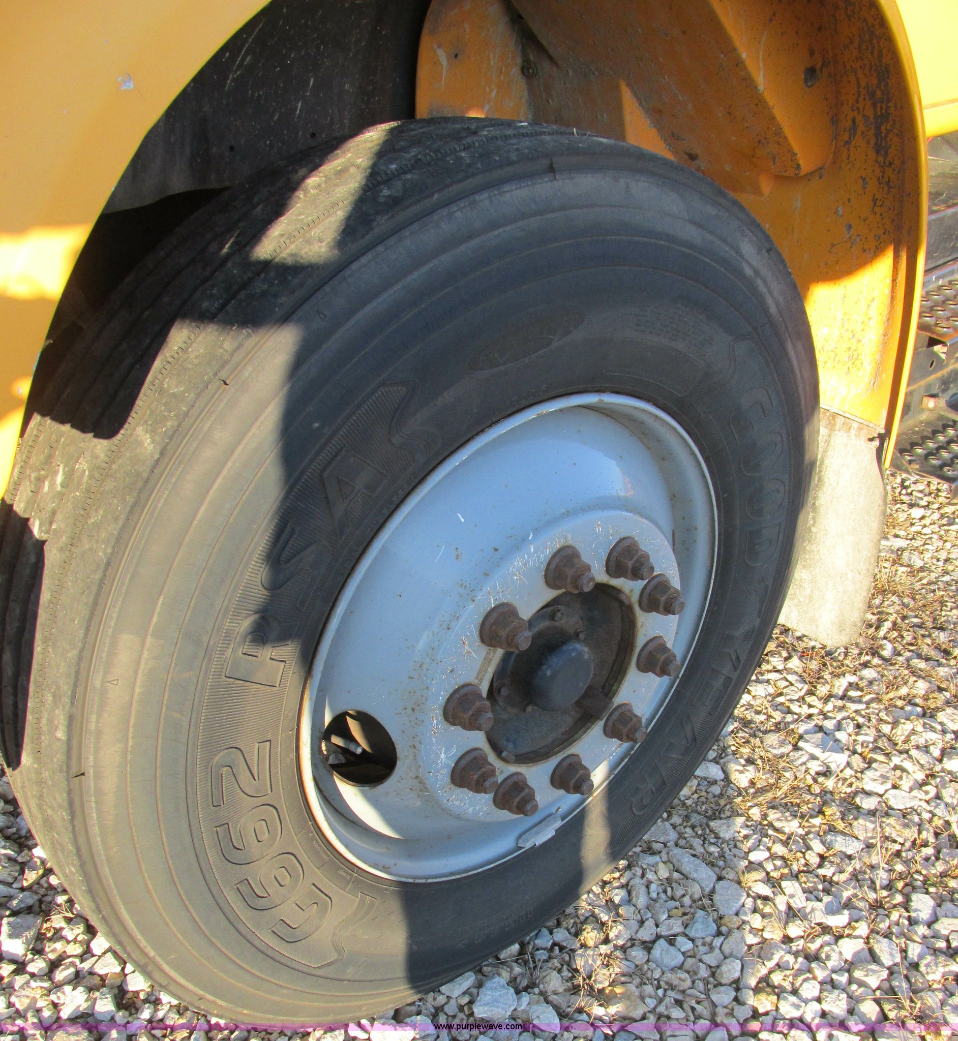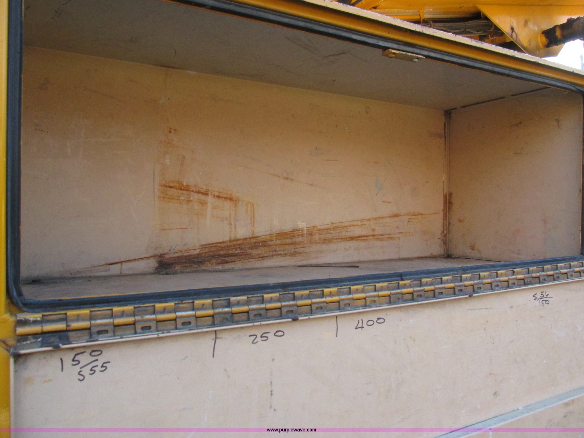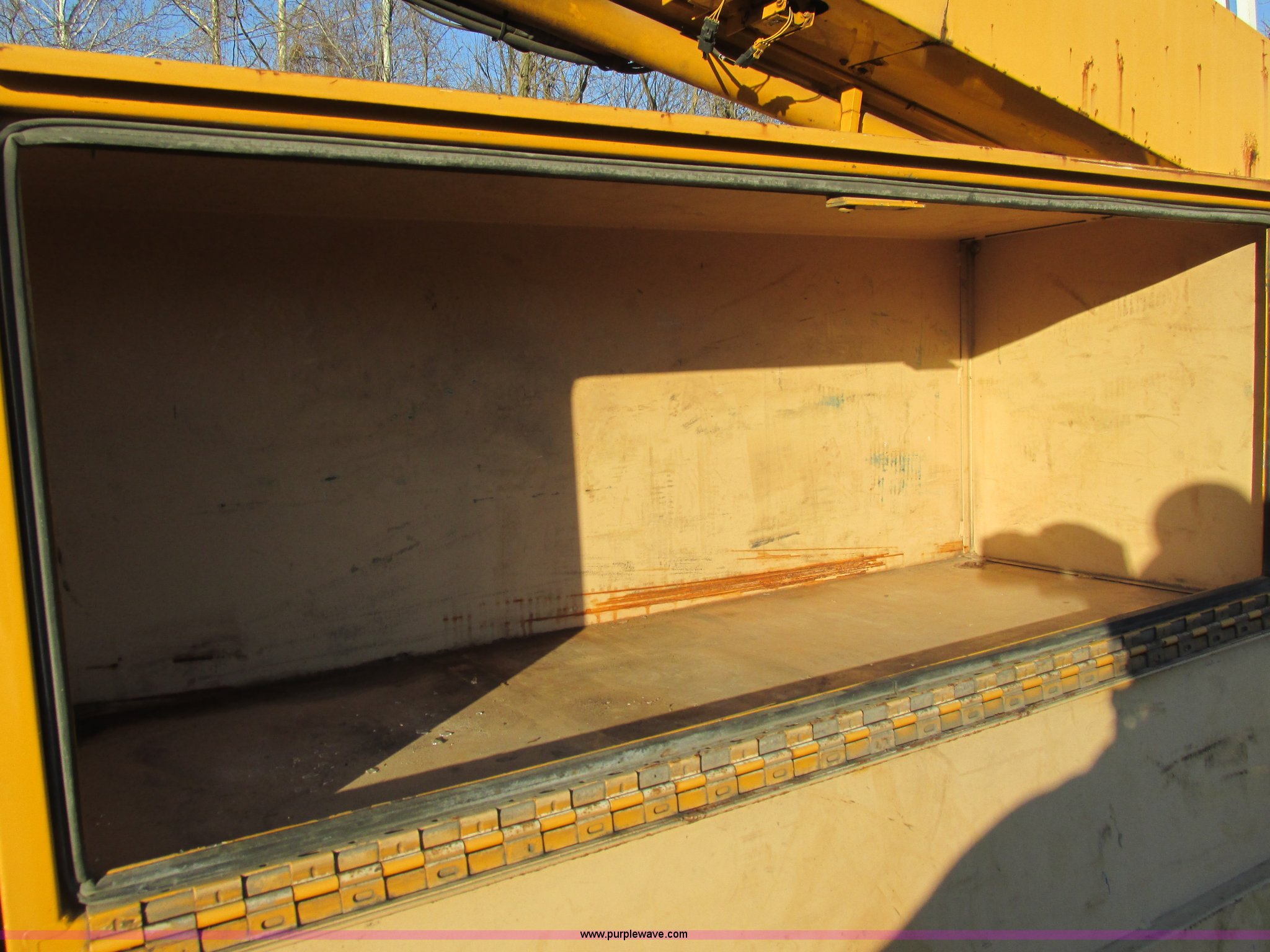 Purple Wave is selling a used Bucket Truck in Missouri. This item is a 2001 International 4900 bucket truck with the following: 160,060 actual miles, 5,803 hours on meter, International DT466E 7.6L L6 diesel engine, Nine speed manual transmission, Locking power divider, Heat, AM/FM, Air suspension seat, PTO, 24'4"L x 8'W bed, (5) toolboxes, 48" x 18" x 18", (4) outriggers, Front stabilizer, Elliot 185 boom lift, Man basket, Ground controls only, Tulsa winch, 45 gallon fuel tank, Spring over walking beam suspension, Air brakes, 224" wheelbase, 11R22.5 tires, Interior/exterior cosmetic damage, One toolbox damaged