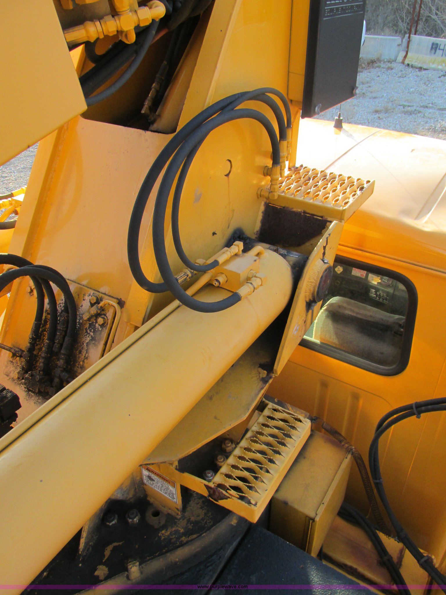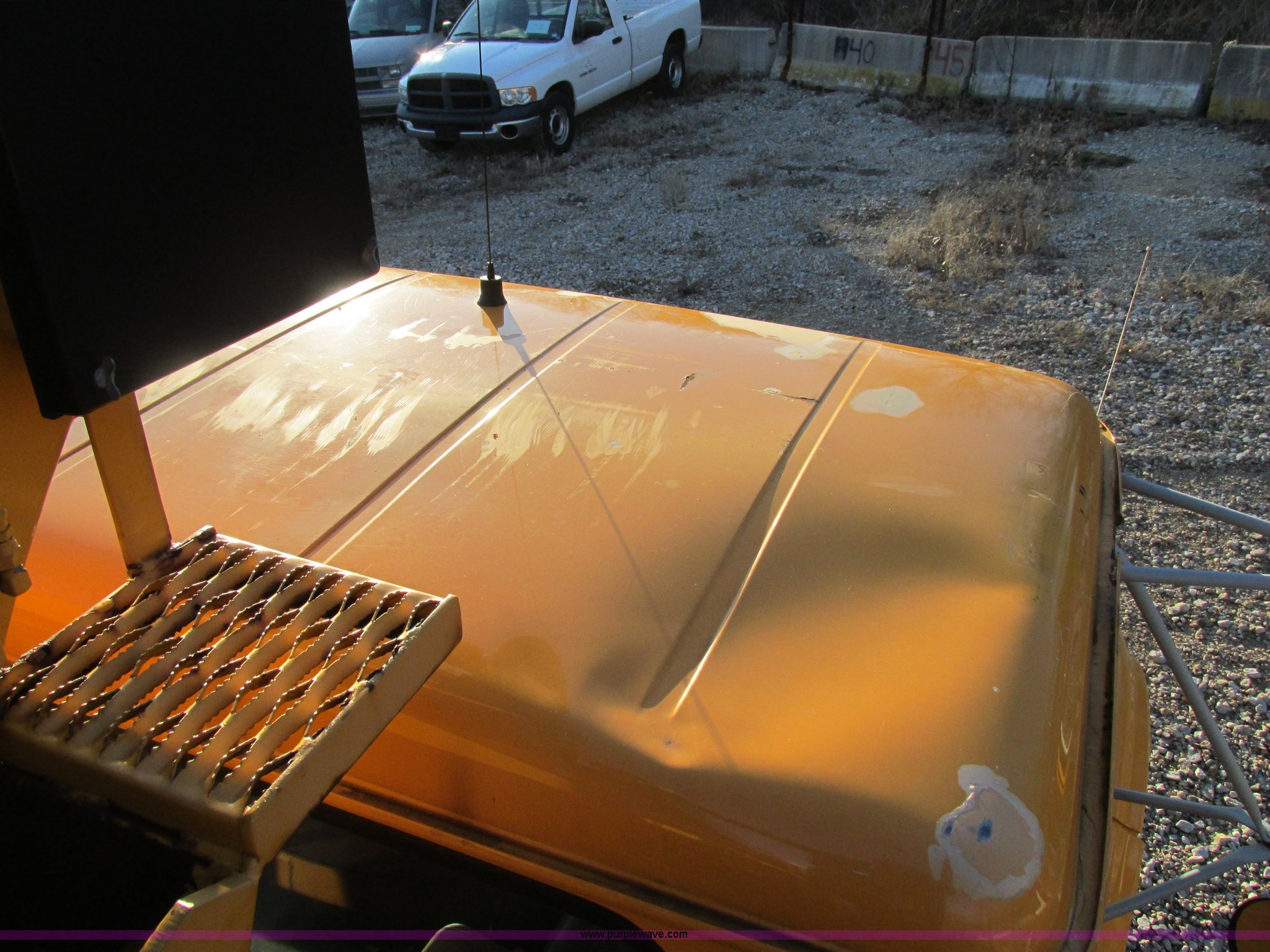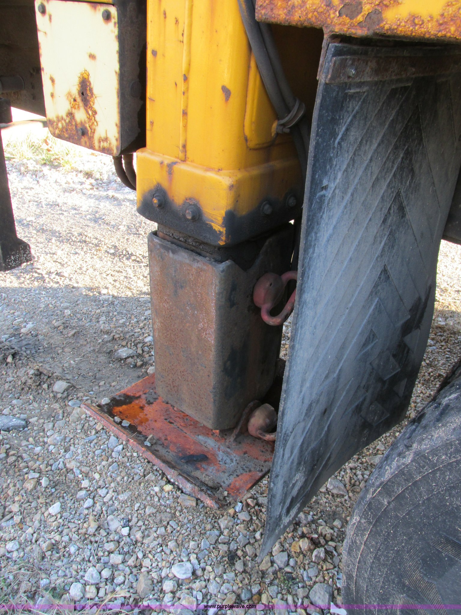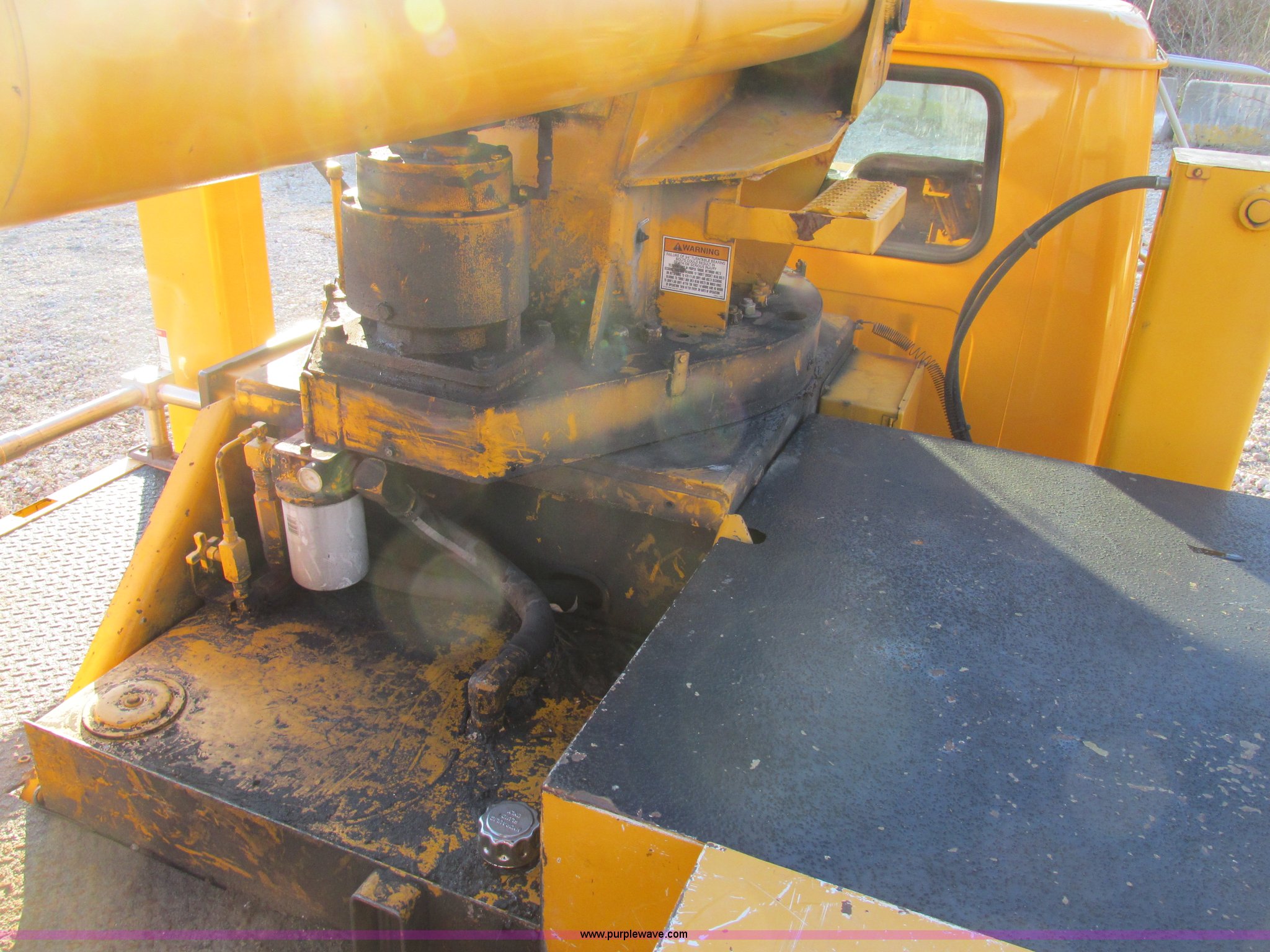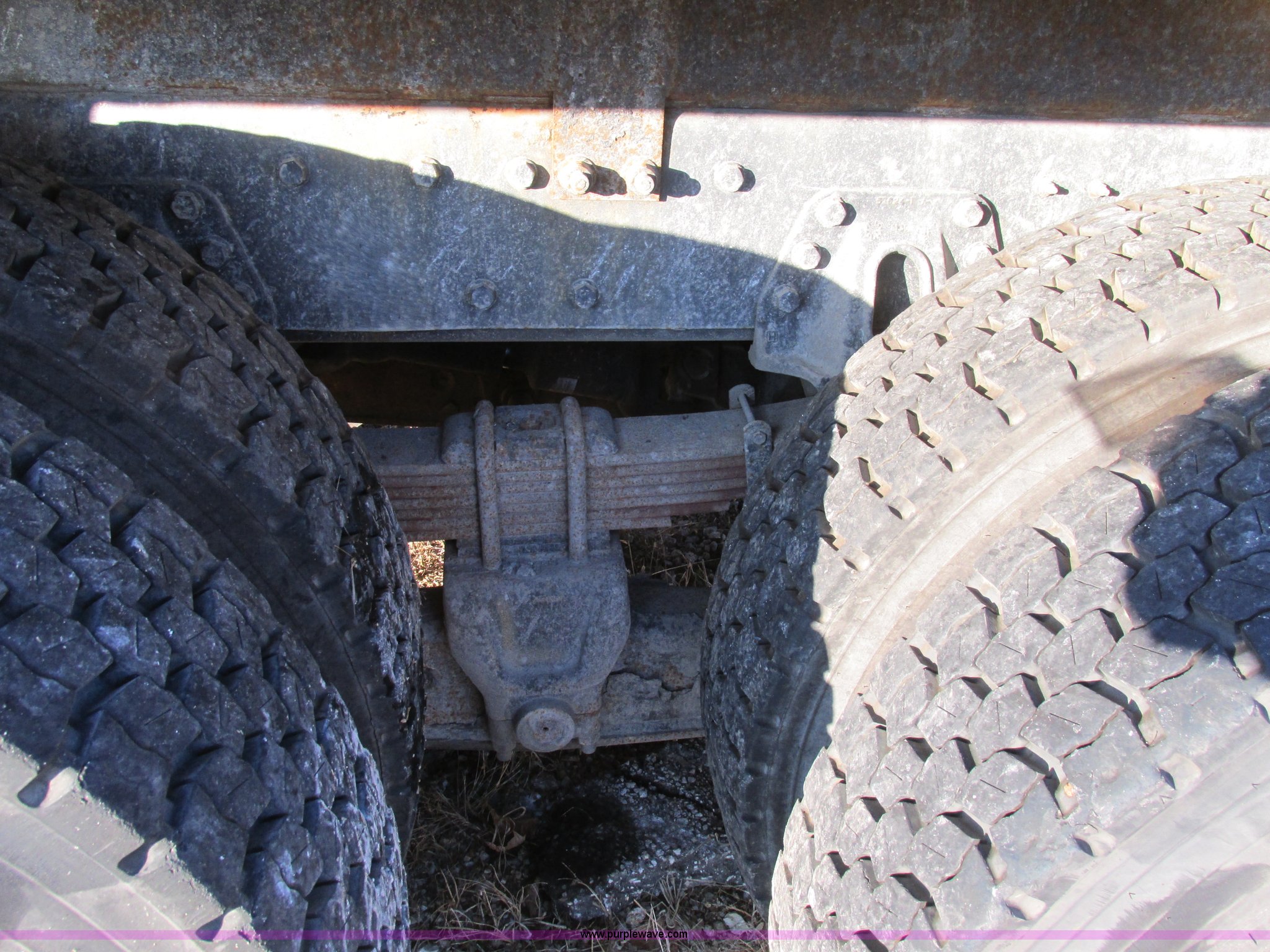 Purple Wave is selling a used Bucket Truck in Missouri. This item is a 2001 International 4900 bucket truck with the following: 160,060 actual miles, 5,803 hours on meter, International DT466E 7.6L L6 diesel engine, Nine speed manual transmission, Locking power divider, Heat, AM/FM, Air suspension seat, PTO, 24'4"L x 8'W bed, (5) toolboxes, 48" x 18" x 18", (4) outriggers, Front stabilizer, Elliot 185 boom lift, Man basket, Ground controls only, Tulsa winch, 45 gallon fuel tank, Spring over walking beam suspension, Air brakes, 224" wheelbase, 11R22.5 tires, Interior/exterior cosmetic damage, One toolbox damaged
