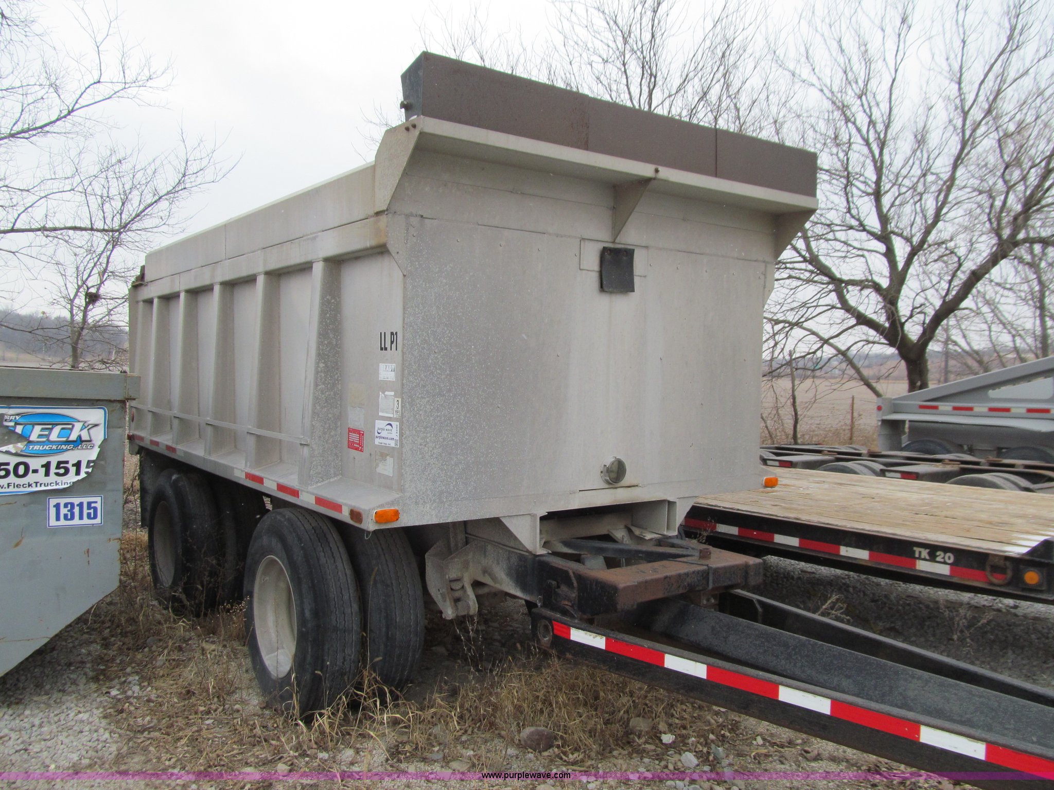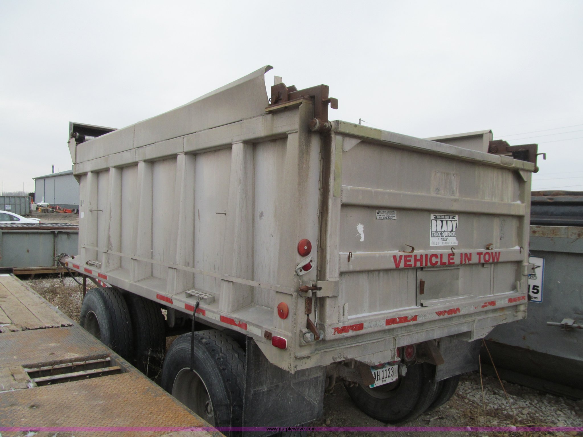 Purple Wave is selling a used End Dump Rock Trailer in Iowa. This item is a 1989 Brady end dump pup trailer with the following: 14'L x 96"W aluminum body, Air operated end gate, Abrasion resistant lining at front of box, Spring suspension, Air brakes, Pintle hitch, Safety chains, Budd wheels, 11R22.5 tires, Unit# LLP1