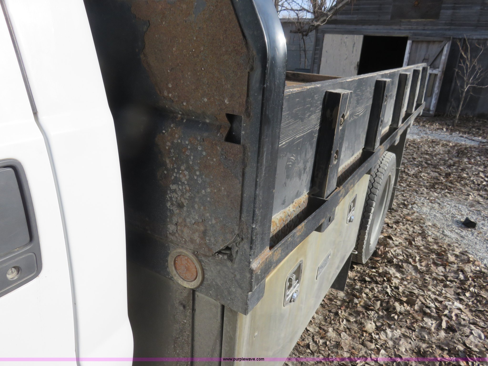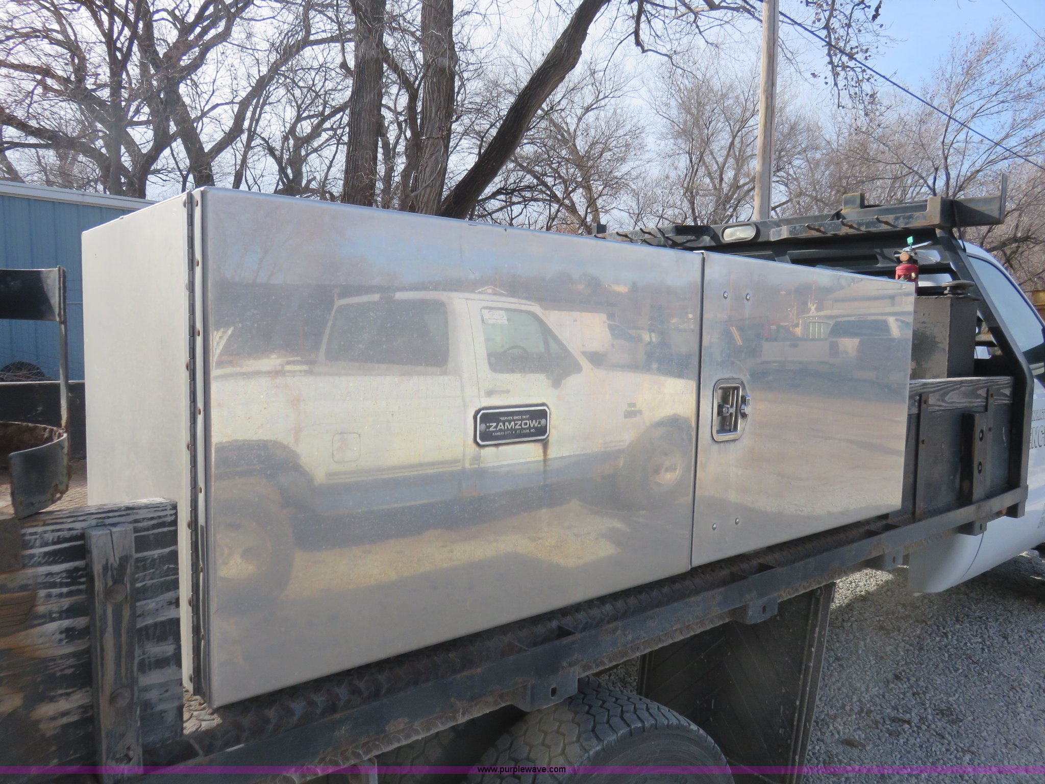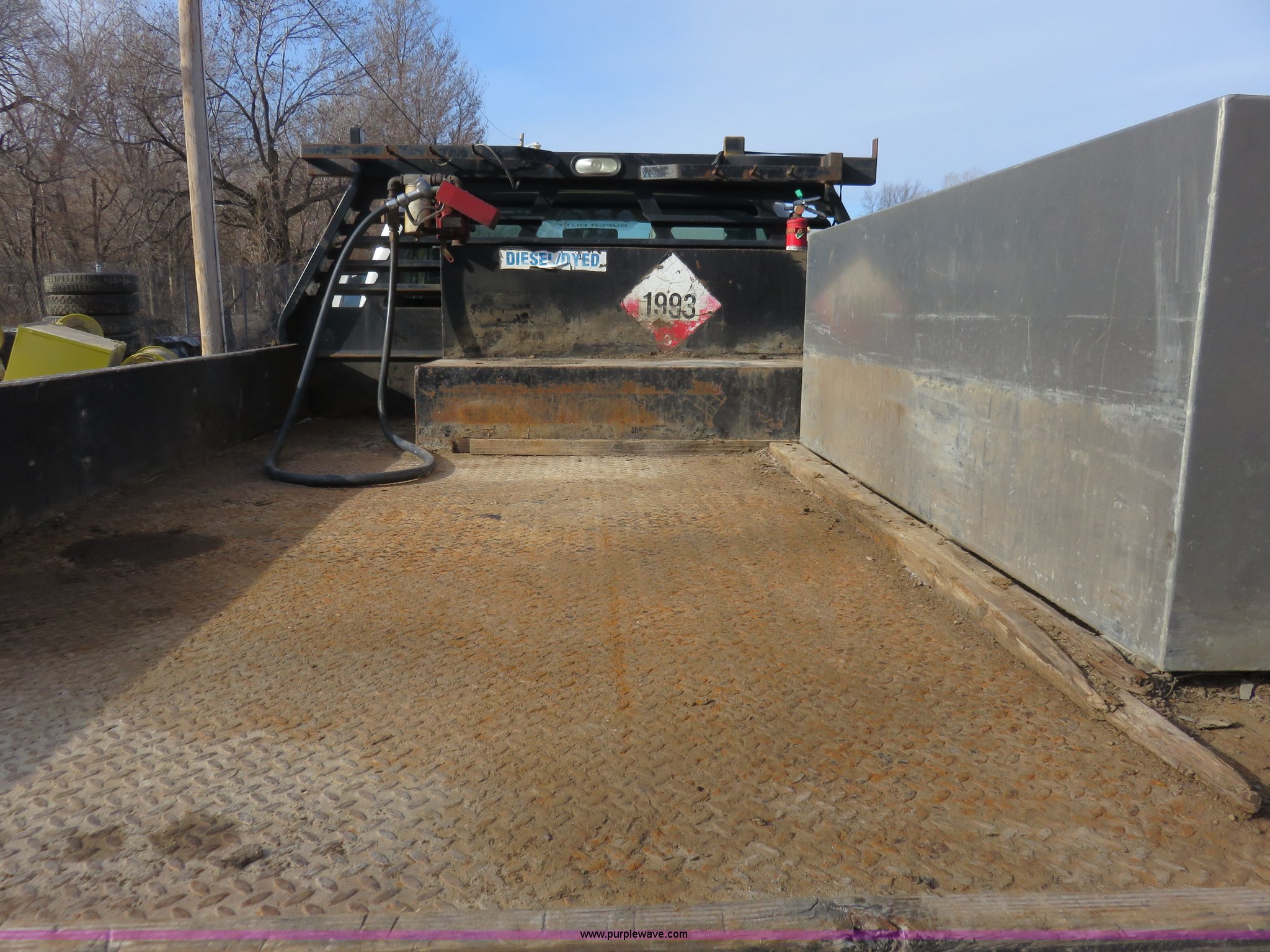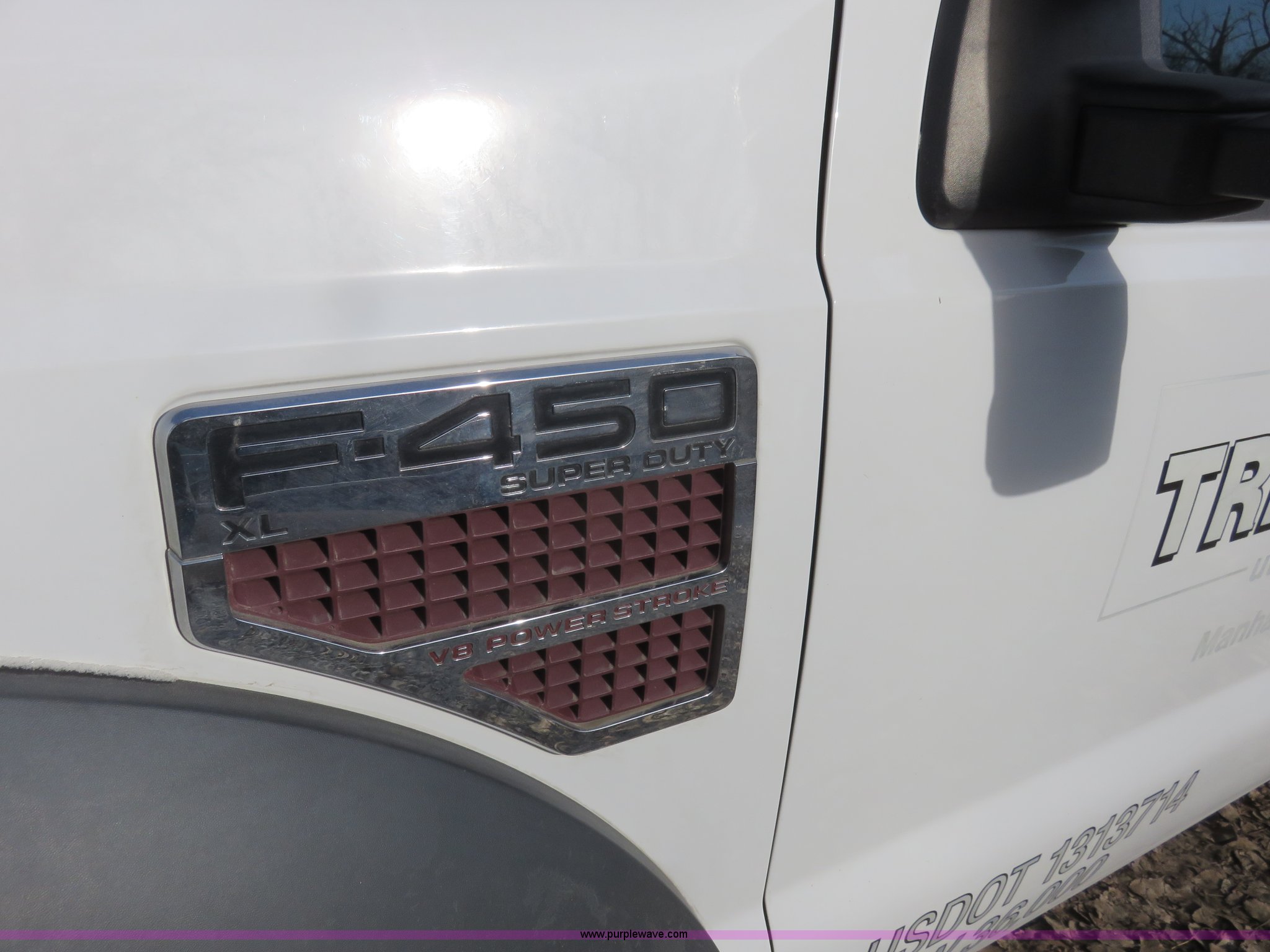 Purple Wave is selling a used Flat Bed Truck in Kansas. This item is a 2008 Ford F450 Super Duty XLT pickup truck with the following: 55,071 miles on odometer, 6.4L V8 diesel engine, Six speed manual transmission, AC and heat, Tilt, Cruise, AM/FM/CD, Manual windows and locks, Vinyl interior, Trailer brake controller, 11'L x 7.5'W flatbed, 100 gallon fuel tank, 12V pump, 4' toolbox, 6'toolbox, Receiver hitch, 225/70R19.5 tires, GVWR 16,000 lbs