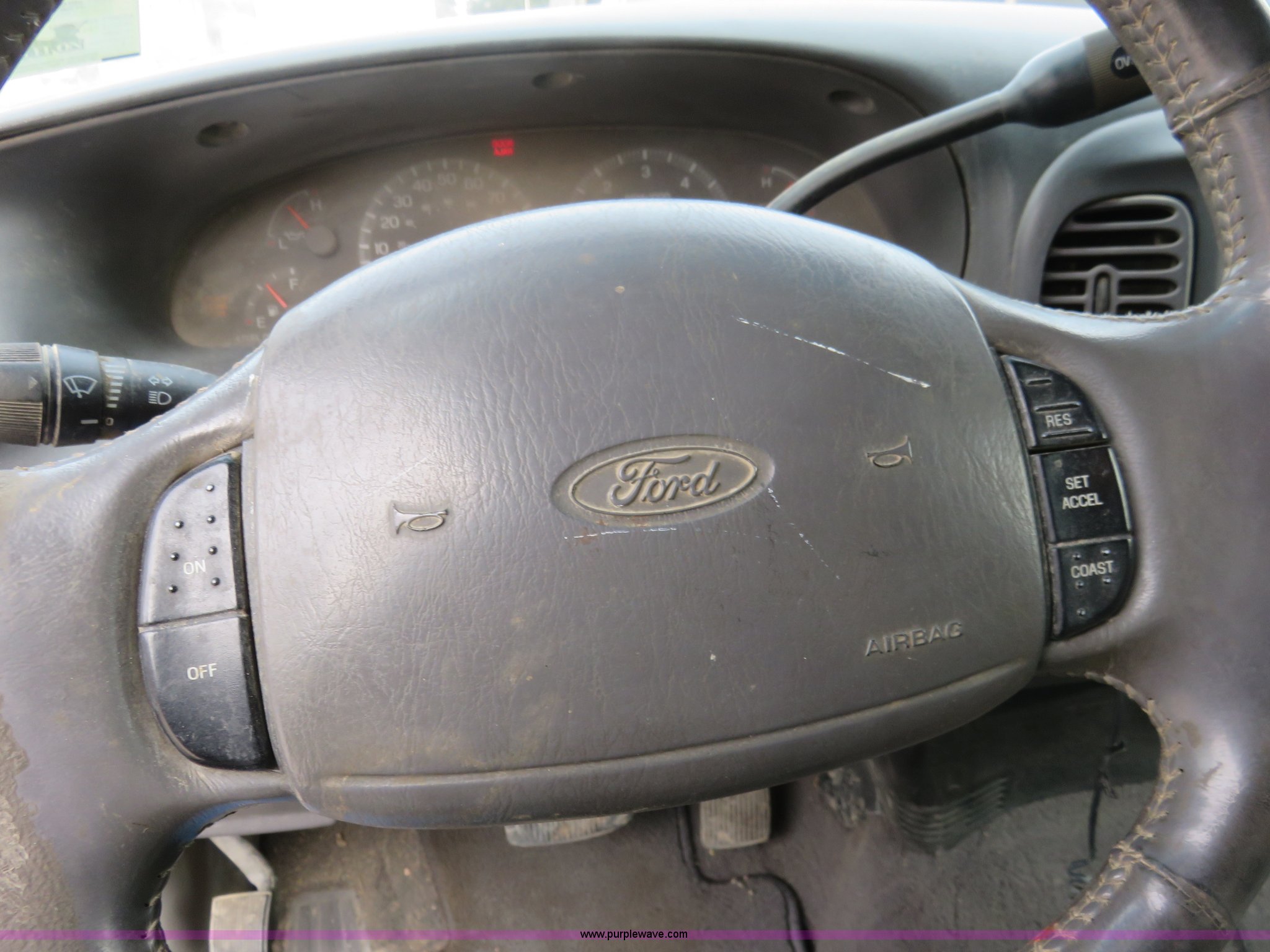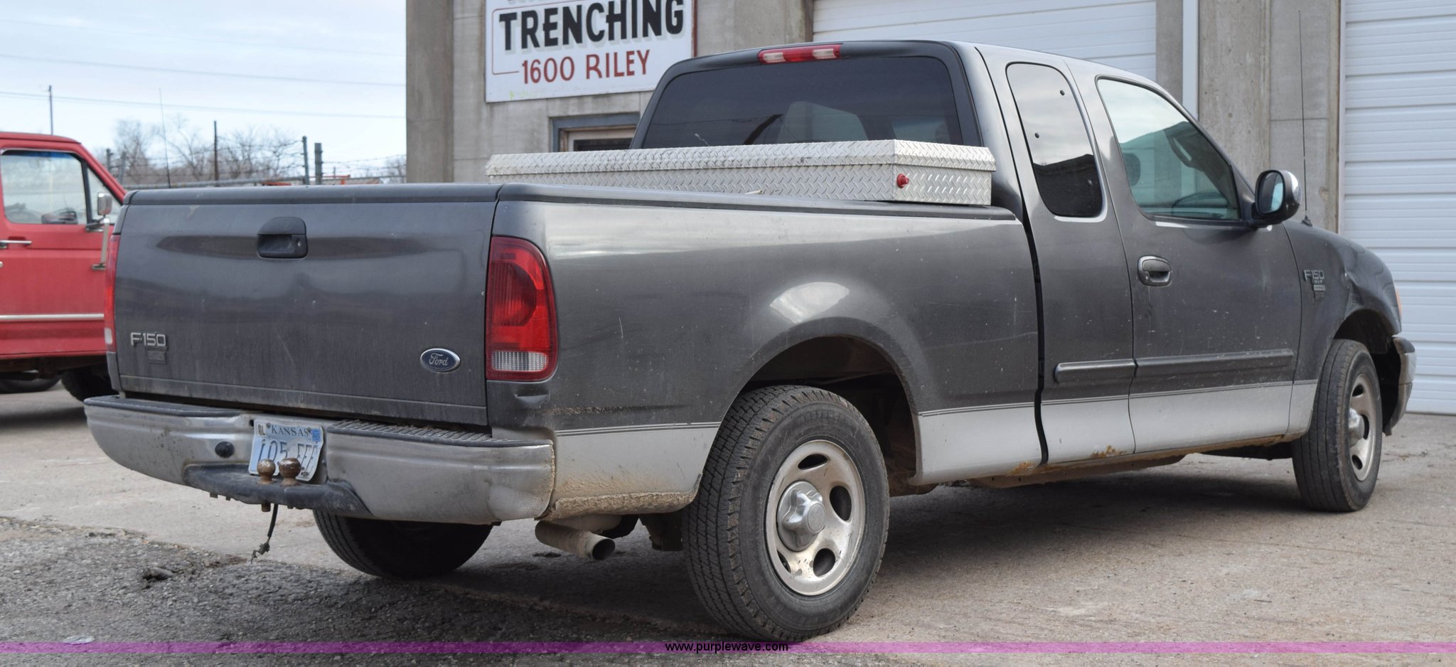 Purple Wave is selling a used 1/2 Ton Pickup or Van in Kansas. This item is a 2002 Ford F150 XLT SuperCab pickup truck with the following: 170,905 miles on odometer, Miles may vary, vehicle is still in use, 5.4L V8 gas engine, Automatic transmission, AC and heat, Tilt, Cruise, AM/FM/CD, Power windows, locks, mirrors, and seats, Cloth interior, Toolbox, Bed mat, 225/75R16 tires, Service engine soon light is on, Seat torn, Right front fender damaged