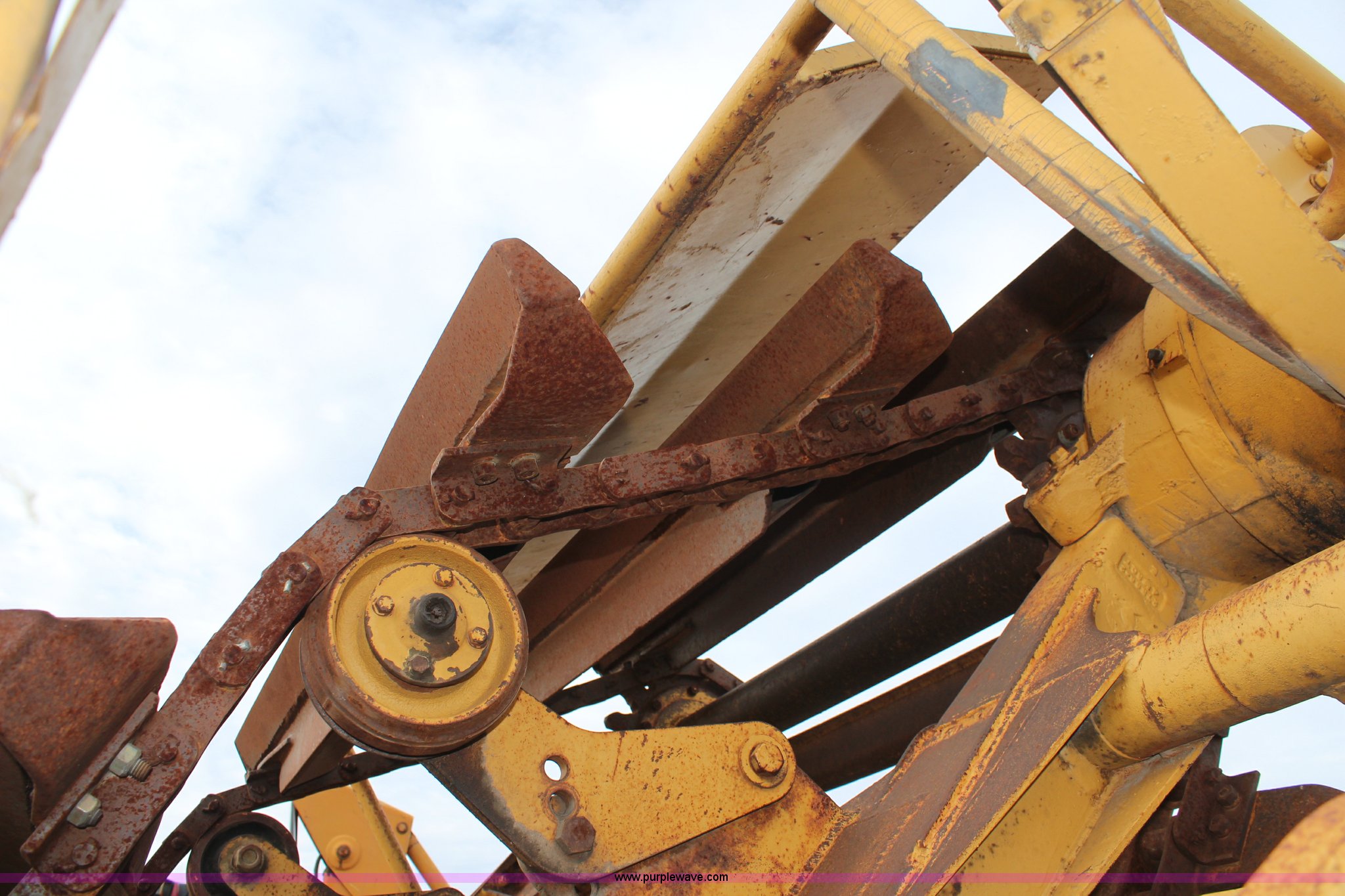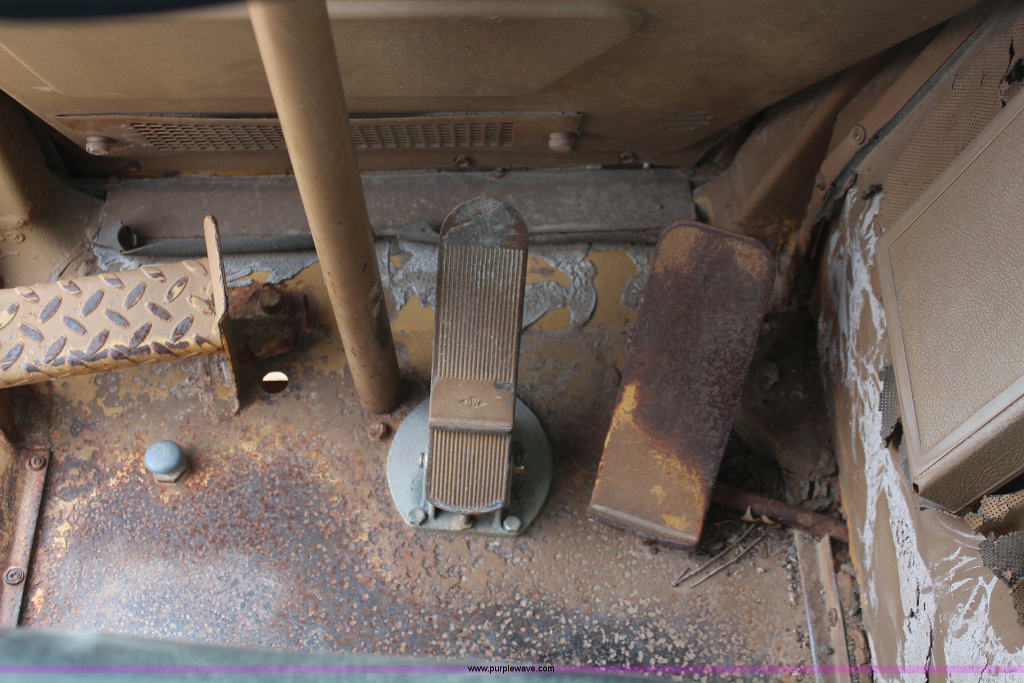 Purple Wave is selling a used Elevating Scraper in Kansas. This item is a 1984 Caterpillar 613B paddle scraper with the following: 4,892 hours on meter, 1,384 hours on second meter, Caterpillar 3208 diesel engine, Powershift transmission, 4F-4R gears, Enclosed cab, Heat, Air suspension seat, 13 cubic yard paddle scraper, Serial 72M07262, 23.5-25 tires, 31,120 lbs. base operating weight, No door, Serial 38W07501