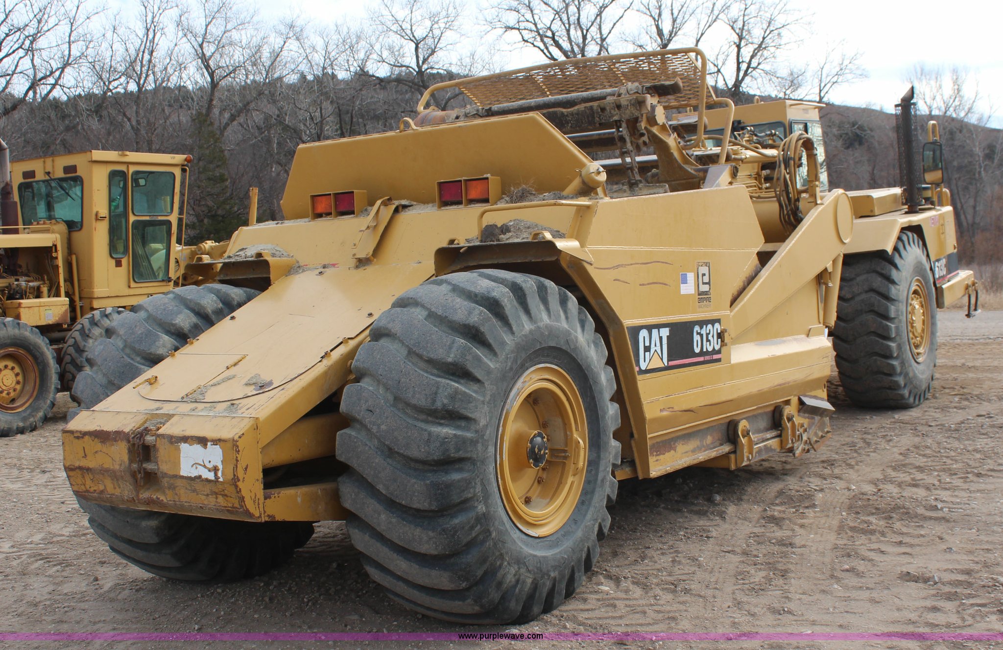 Purple Wave is selling a used Elevating Scraper in Kansas. This item is a 2006 Caterpillar 613C Series II scraper with the following: 3,840 hours on meter, Caterpillar 3116 six cylinder diesel engine, 210 HP, Powershift transmission, 6F-6R gears, Enclosed cab, AC and heat, Air suspension seat, 13 cubic yard paddle scraper, Serial CAT0613CJ93X05405, 23.5-25 tires, 32,426 lbs. base operating weight, Serial CAT0613CH8LJ02962