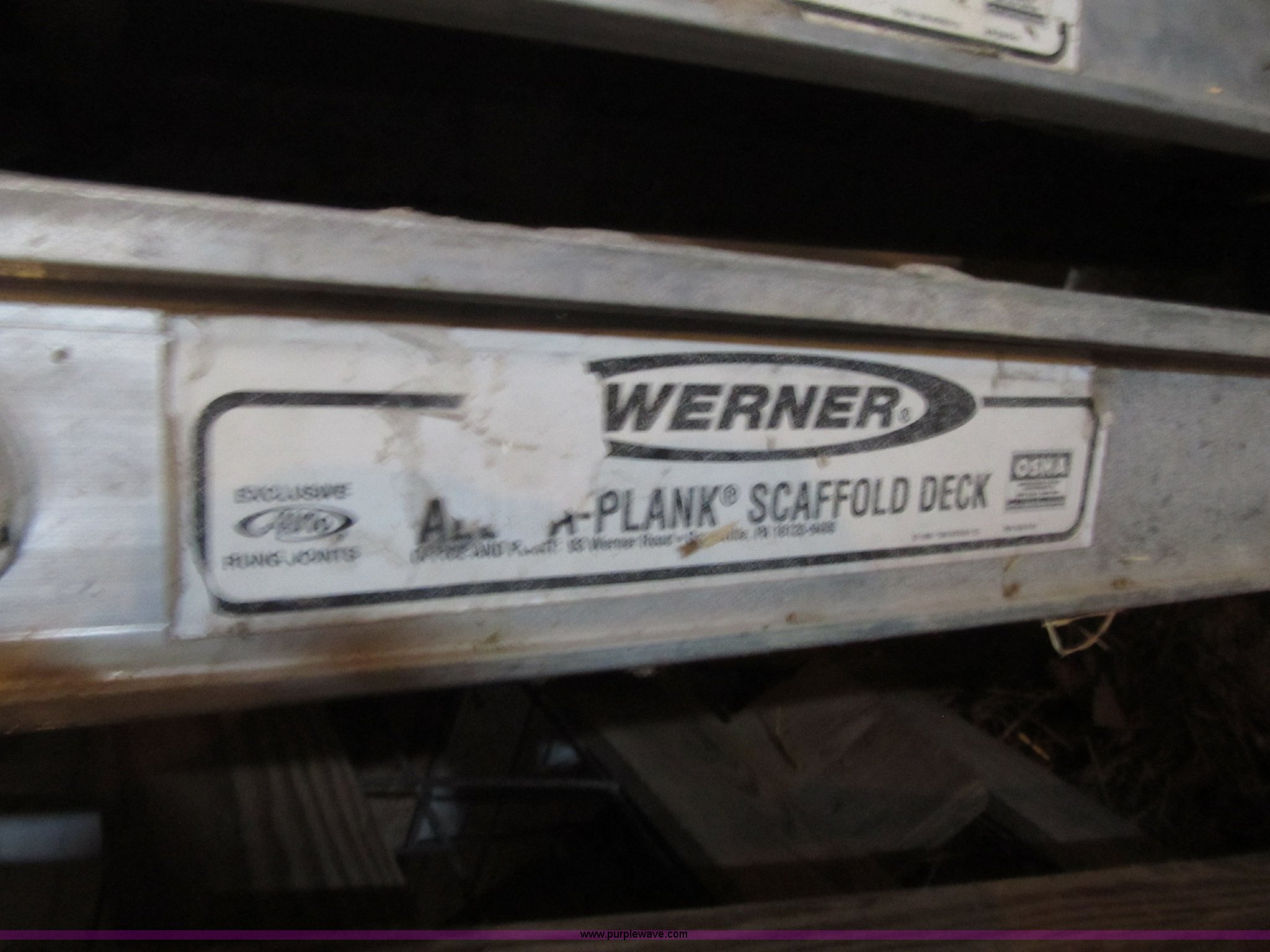 Purple Wave is selling a used Tools in Missouri. This item is a (3) sections of scaffolding with the following: (2) 5'W x 5'H, 5'W x 6'H, Cross-members, (2) aluminum walk boards, (4) casters