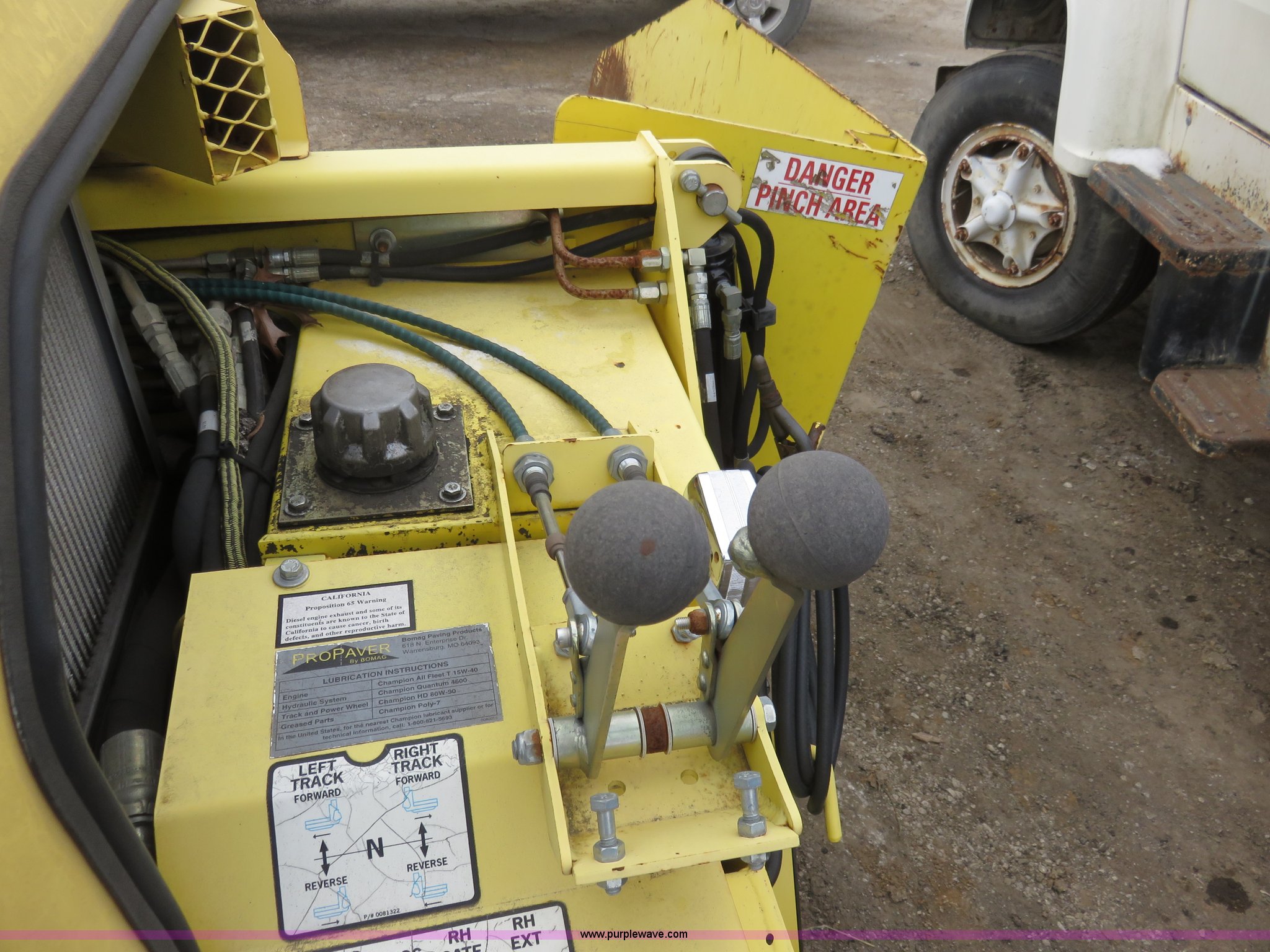 Purple Wave is selling a used Paver or Screed in Kansas. This item is a 2006 Bomag 815-2 asphalt paver with the following: 665 hours on meter, Cummins four cylinder diesel engine, 80 HP, 8' to 15' paving width, 15,700 lbs. base operating weight, Serial 91183512-1023