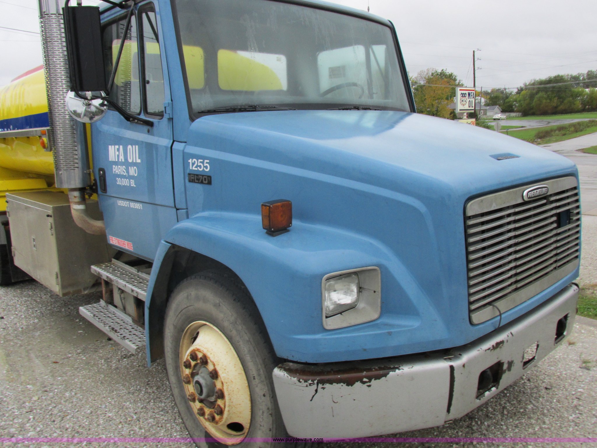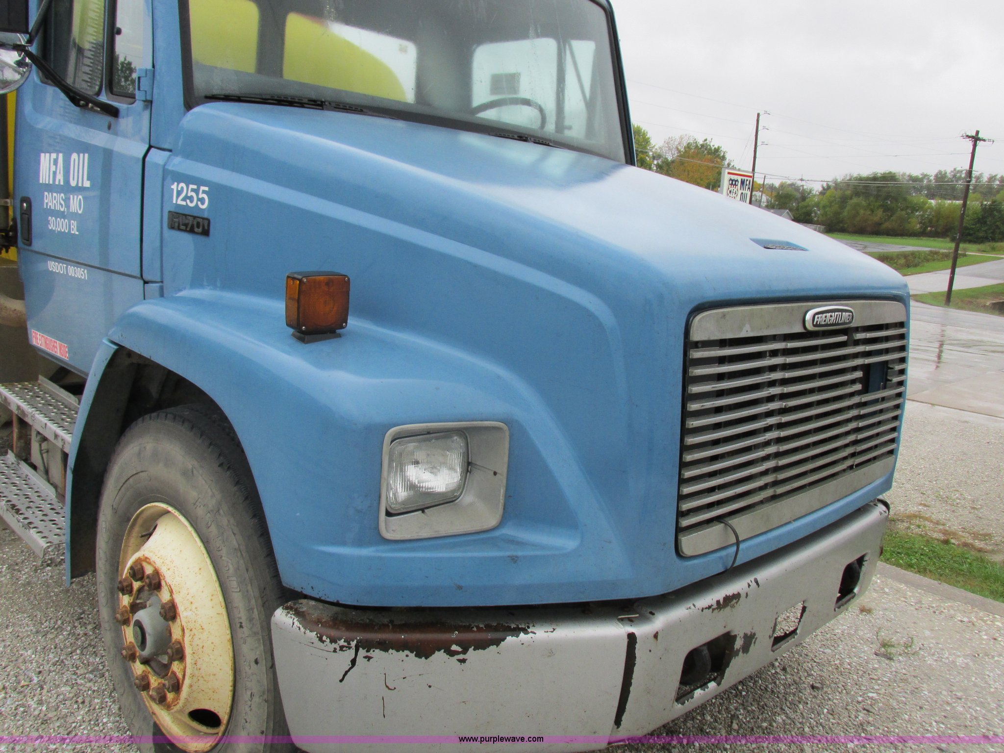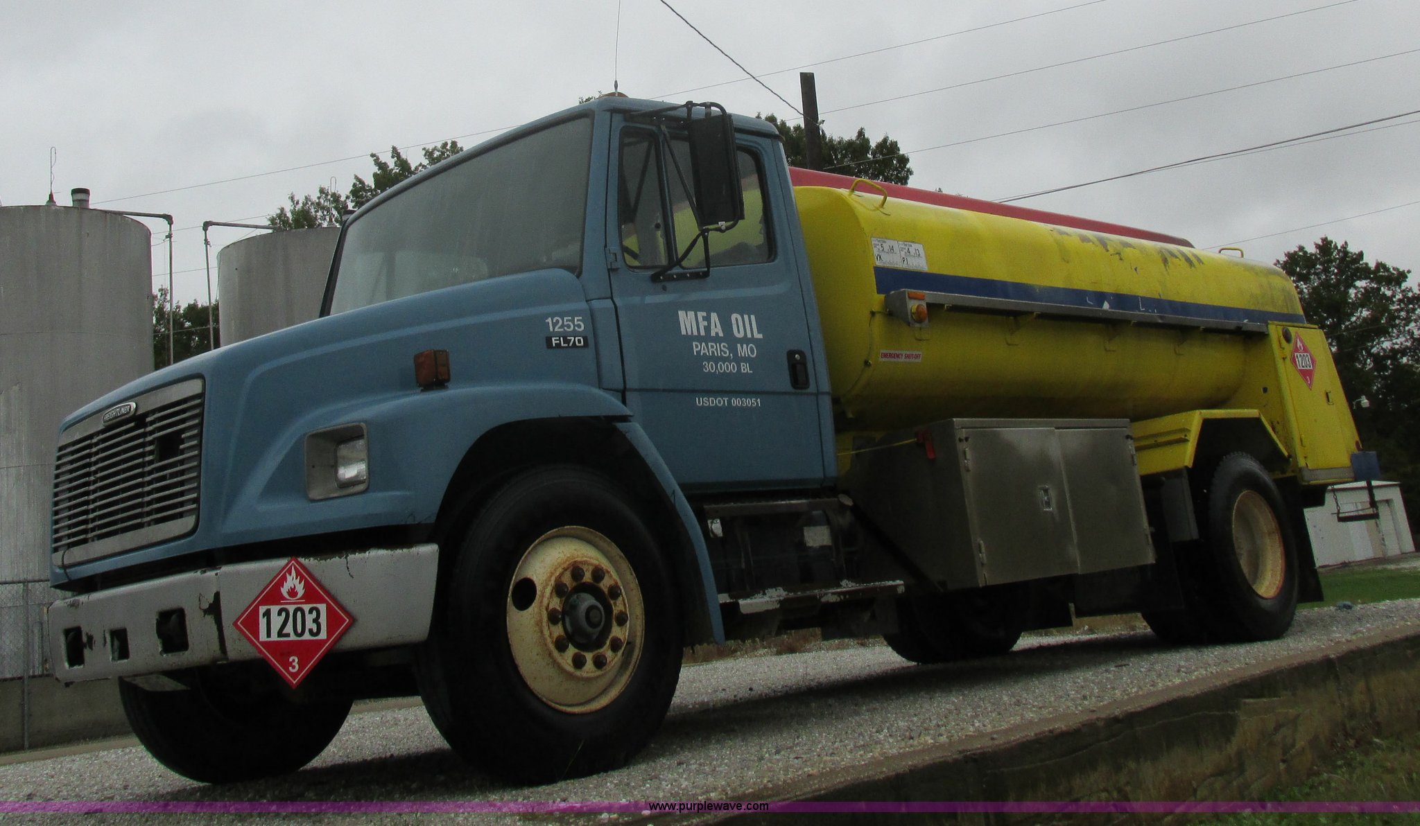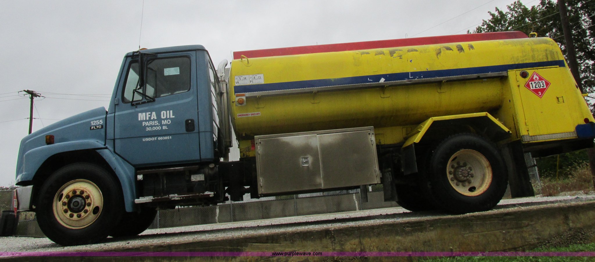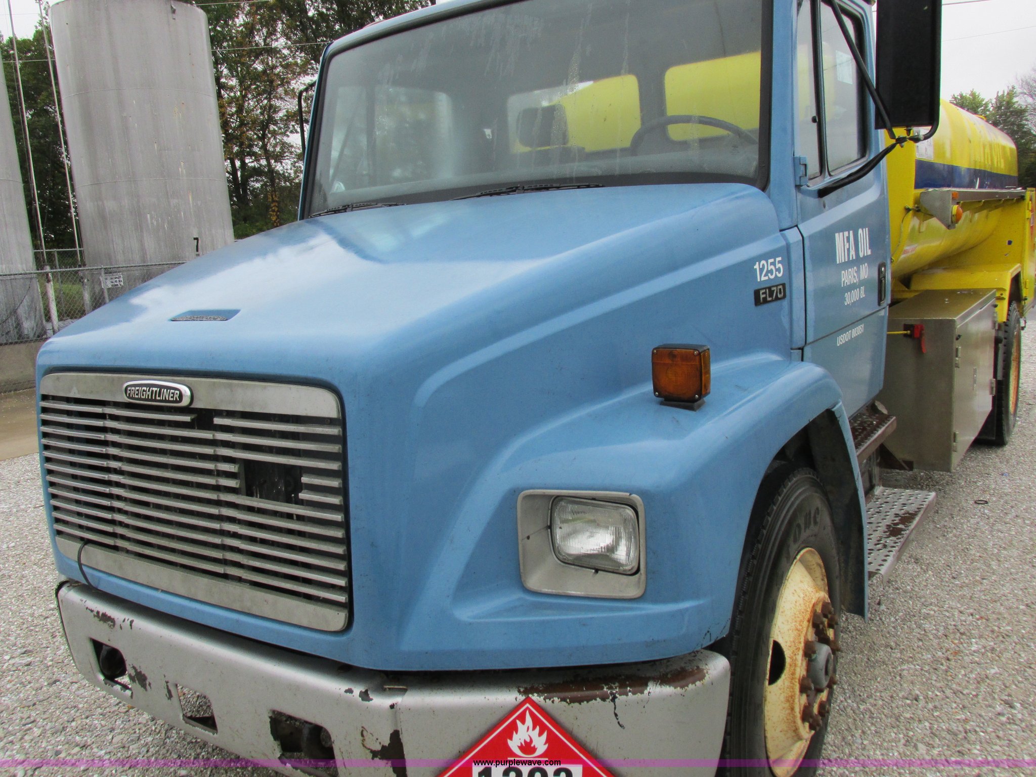 Purple Wave is selling a used Fuel Truck in Kansas. This item is a 1999 Freightliner FL70 fuel truck with the following: 230,519 miles on odometer, Cummins 5.9L L6 diesel engine, Six speed manual transmission, PTO, AC and heat, Spring suspension seat, Tri State Tank, 2,000 gallon capacity, (2) side boxes, Rear ladder, Serial 30308, Hannay P565X001 pumps, Fuel tank, (5) quick connect outlets, (2) dispenser guns, Dual side door access, Rear access, Rear ladder, Block heater, Spring suspension, 11R22.5 tires, GVWR 28,000 lbs, Unit# 1255