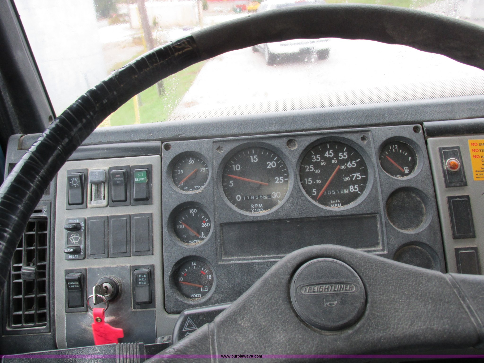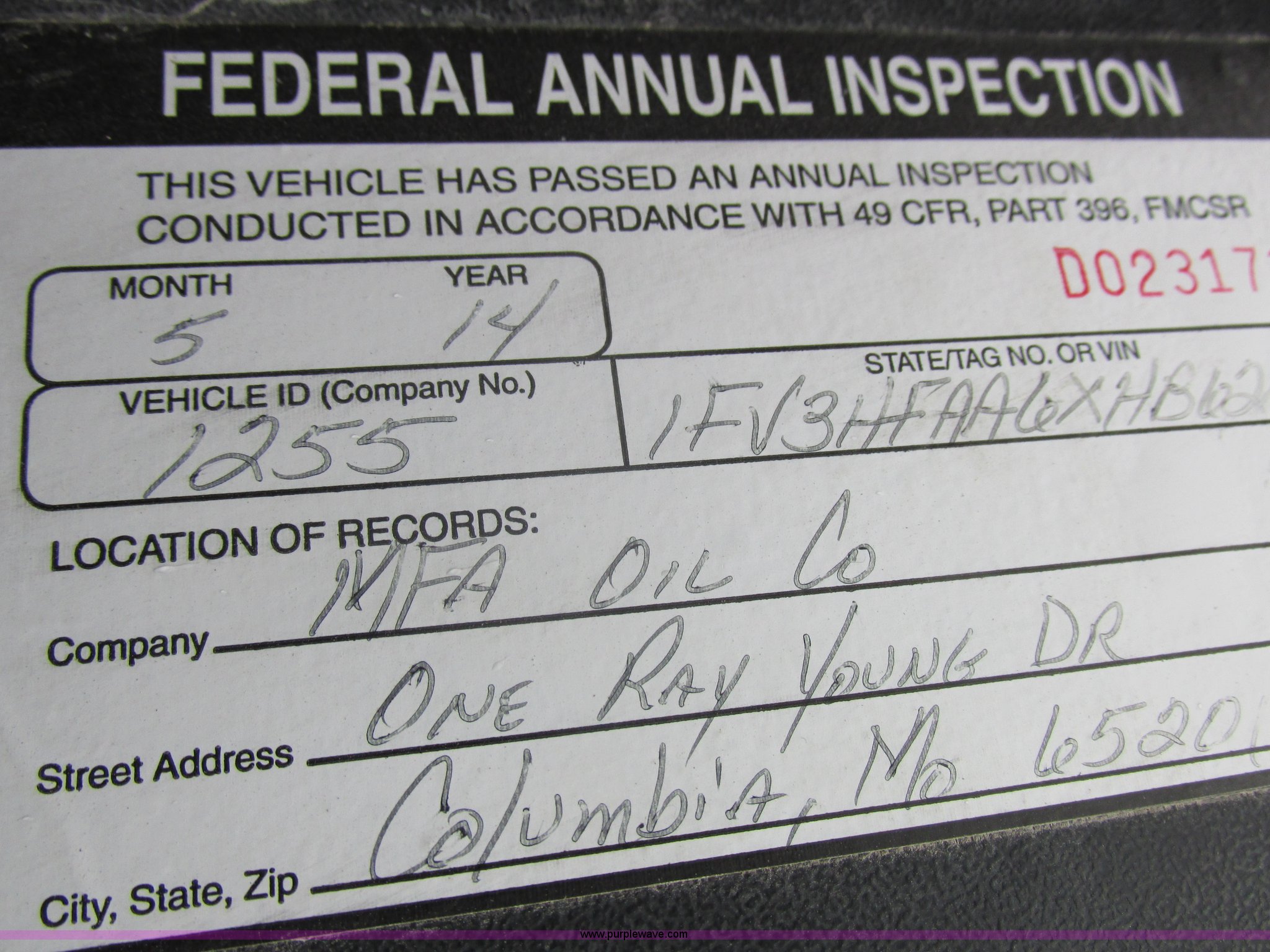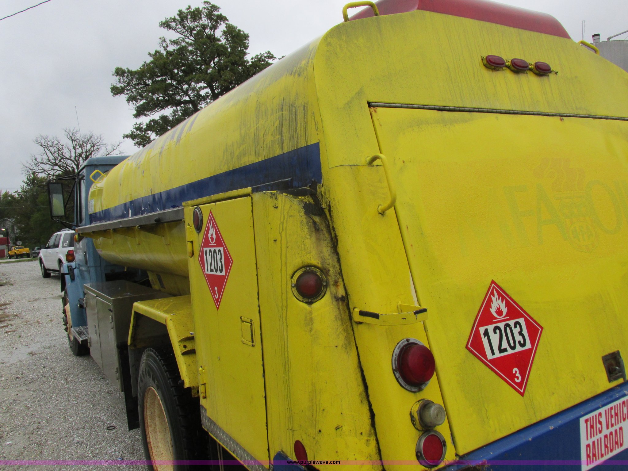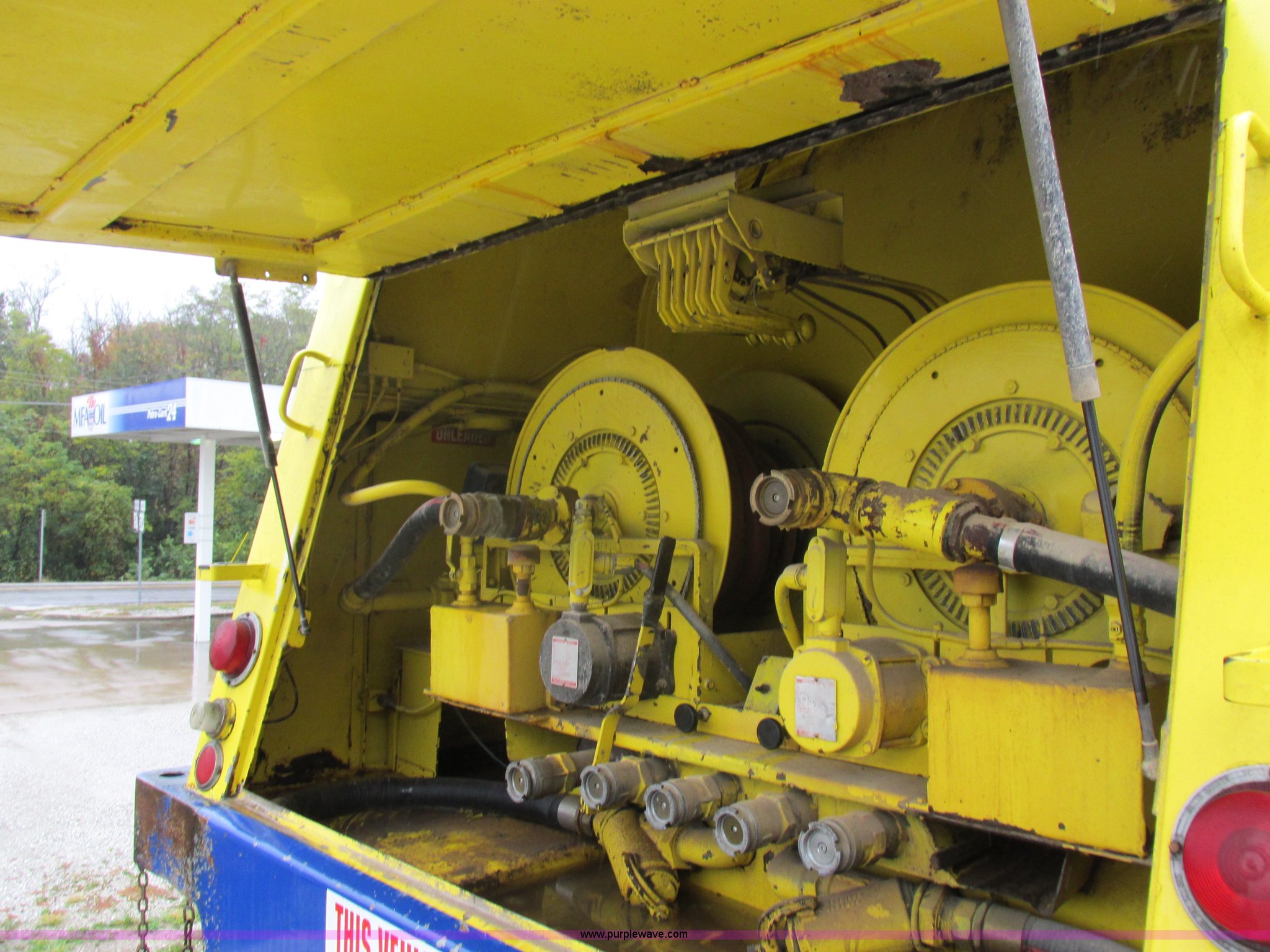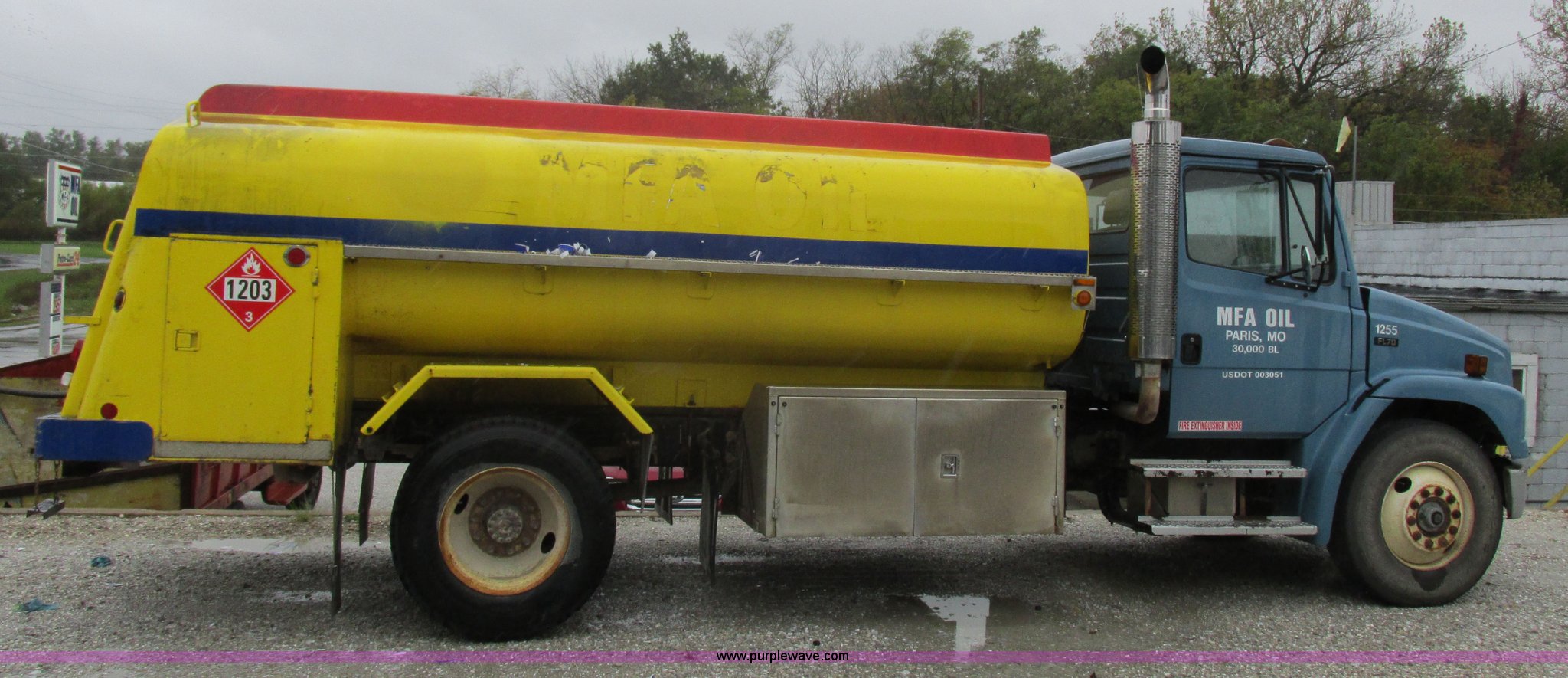 Purple Wave is selling a used Fuel Truck in Kansas. This item is a 1999 Freightliner FL70 fuel truck with the following: 230,519 miles on odometer, Cummins 5.9L L6 diesel engine, Six speed manual transmission, PTO, AC and heat, Spring suspension seat, Tri State Tank, 2,000 gallon capacity, (2) side boxes, Rear ladder, Serial 30308, Hannay P565X001 pumps, Fuel tank, (5) quick connect outlets, (2) dispenser guns, Dual side door access, Rear access, Rear ladder, Block heater, Spring suspension, 11R22.5 tires, GVWR 28,000 lbs, Unit# 1255